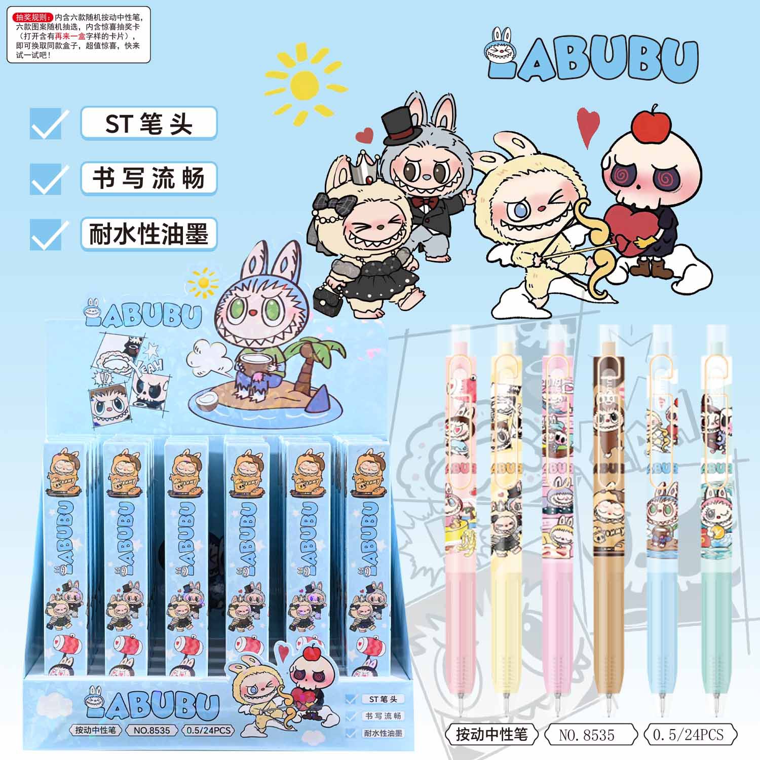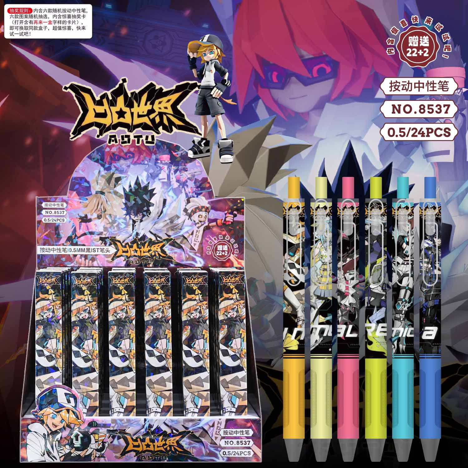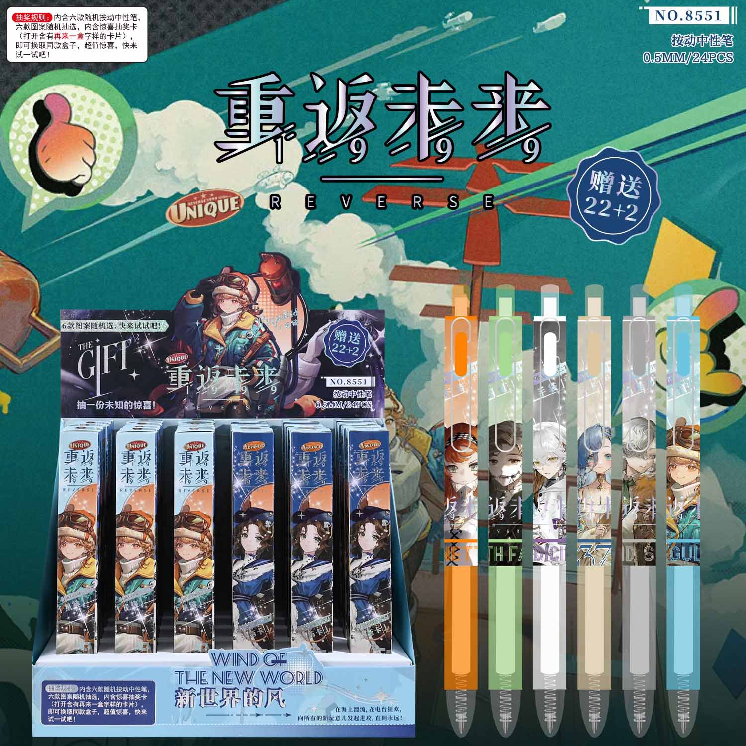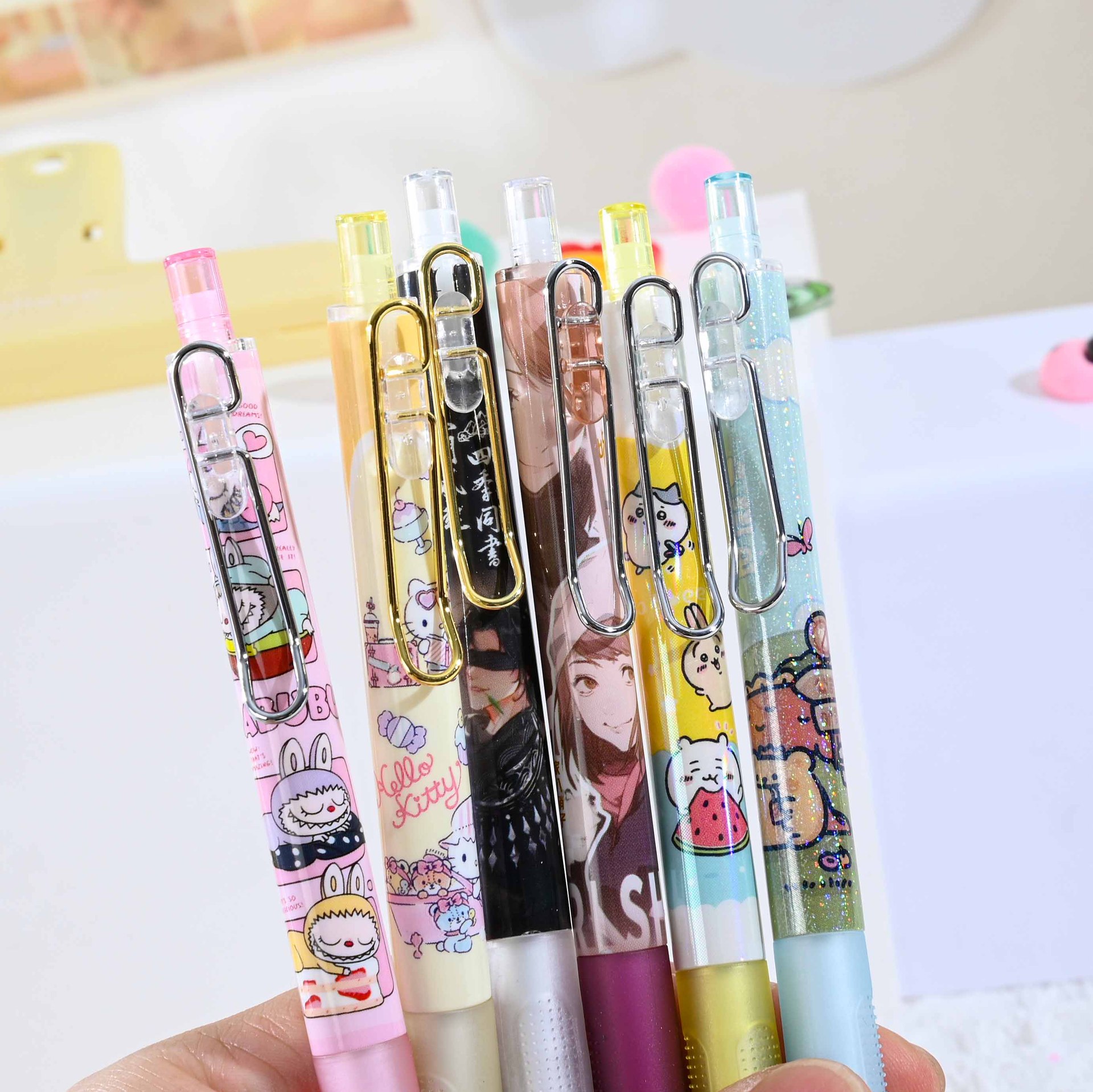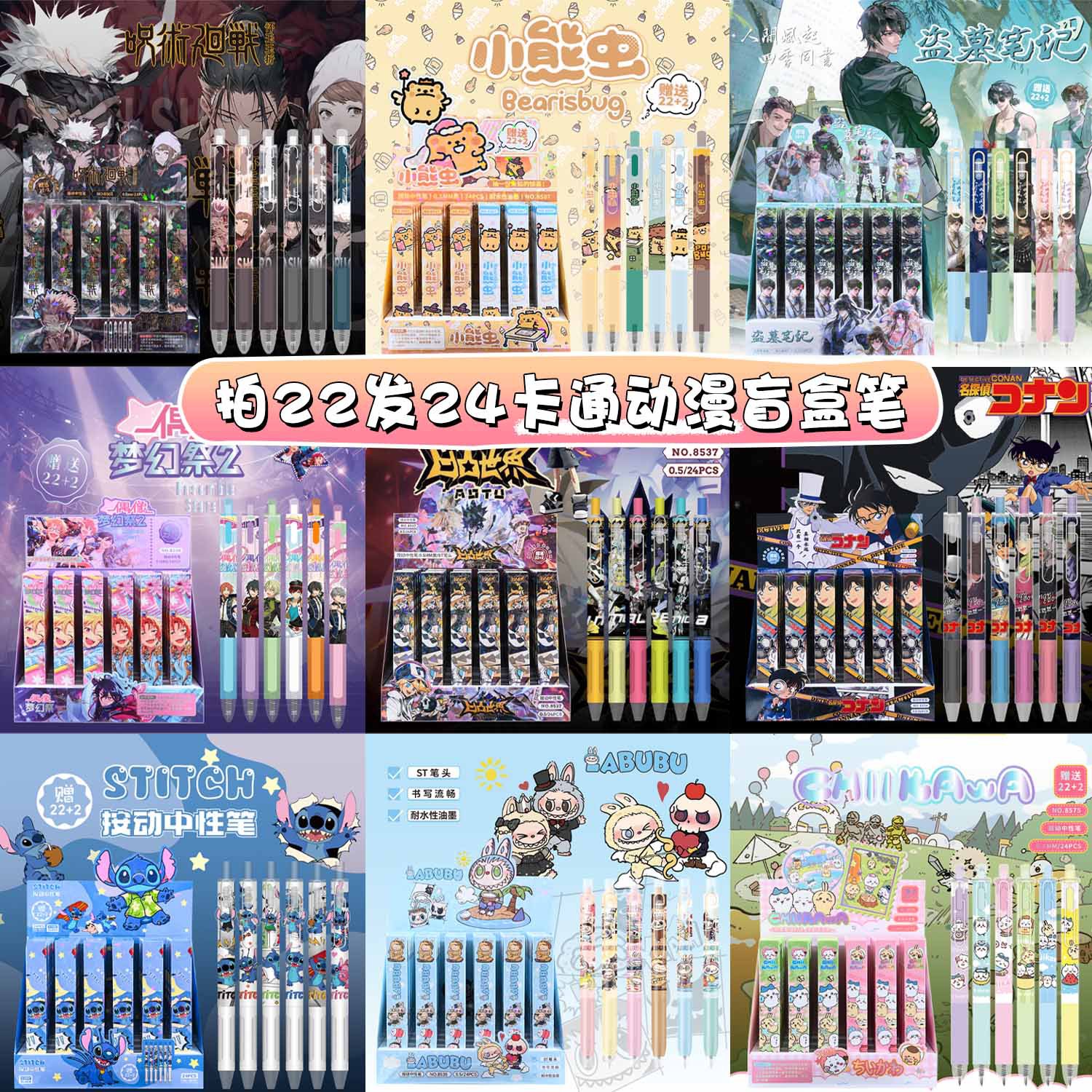 새로운 귀여운 만화 애니메이션 블라인드 박스 펜, 예쁜 디자인의 젤펜, 초등학생 상품 문구 도매