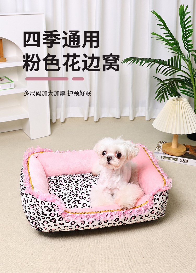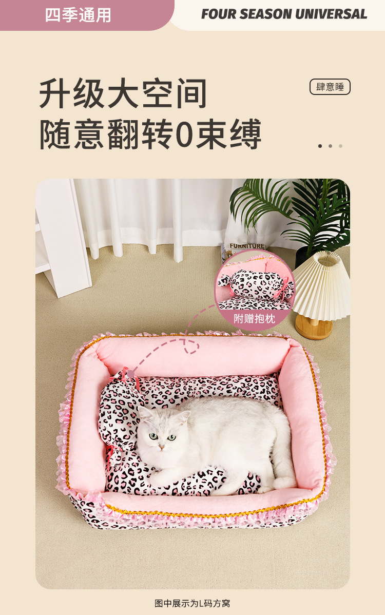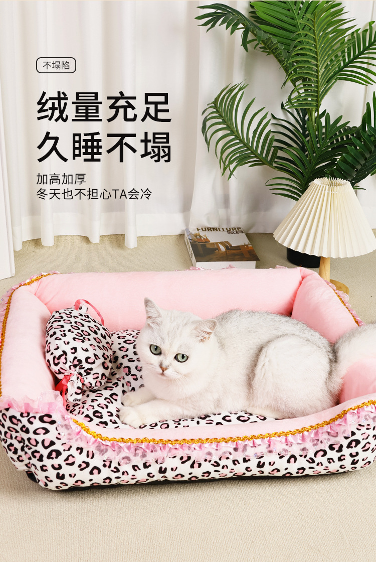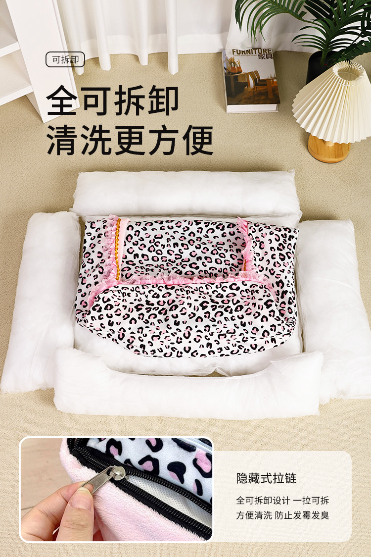 애완동물 침대 제조업체 도매 고양이 침대, 강아지 침대, 수면 매트, 탈부착 및 세탁 가능, 소형견 침대, 고양이 침대, 배송 가능, 고양이 핑크 레오파드