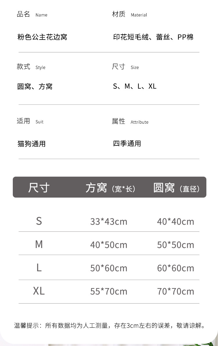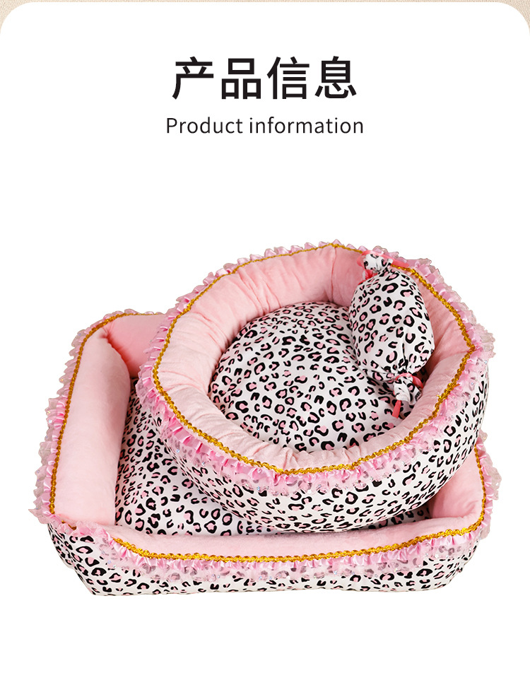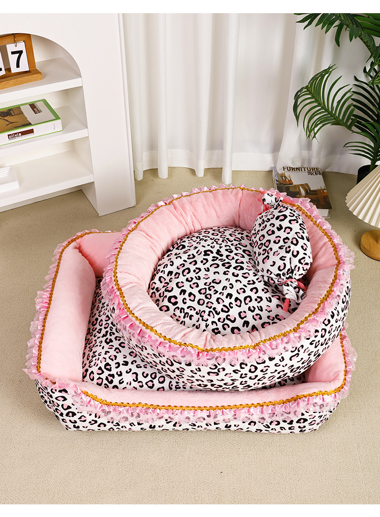 핑크 레오파드 프린트 레이스 둥근 둥지丨완전히 분리 가능하고 세탁 가능
