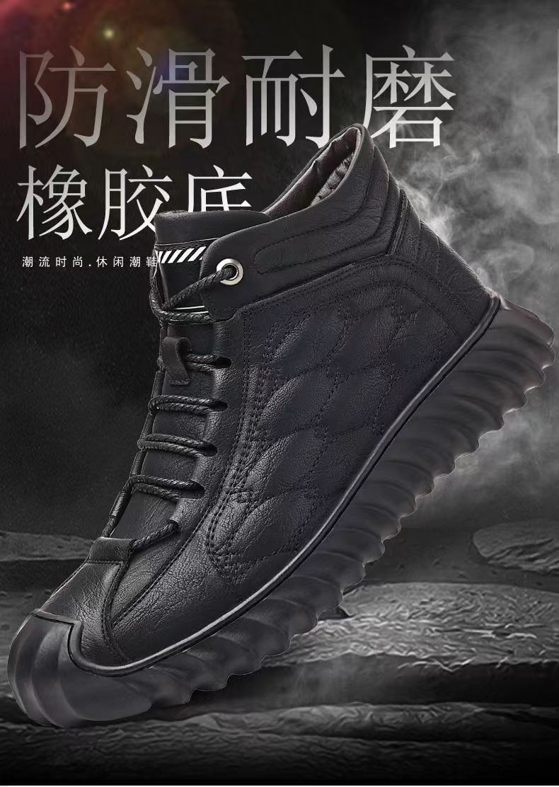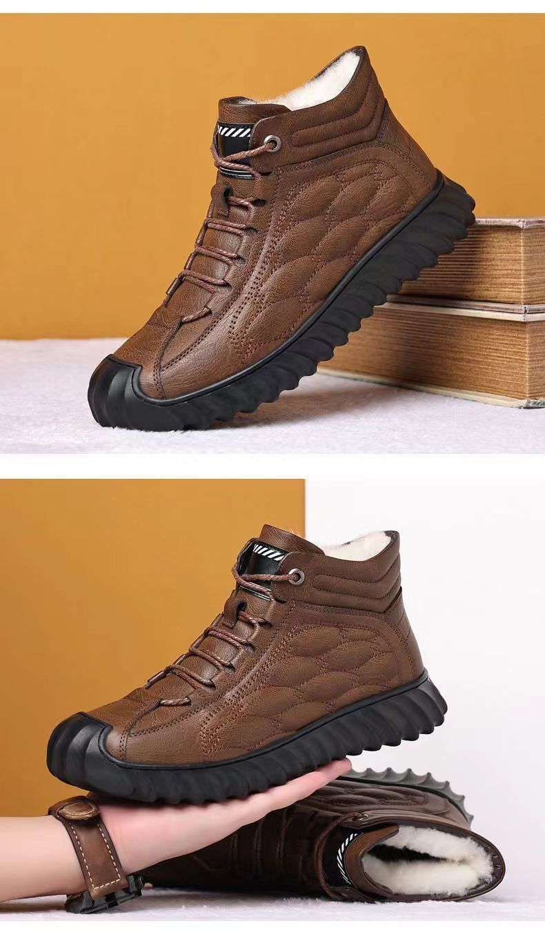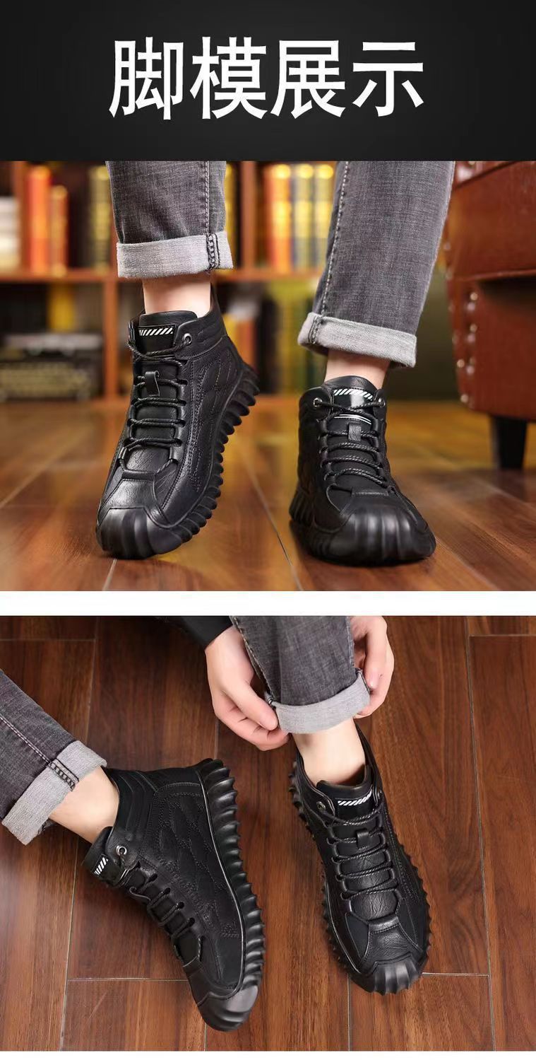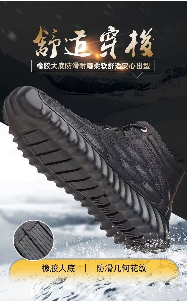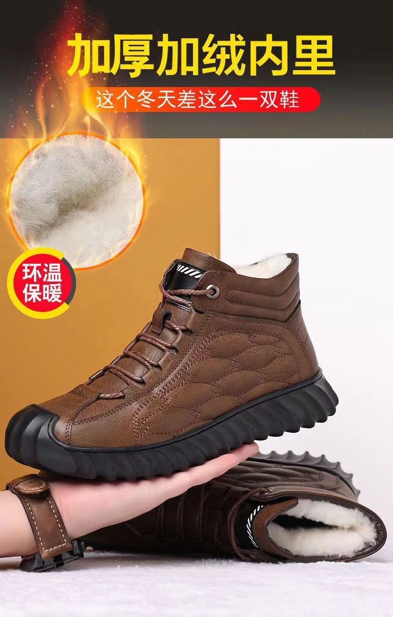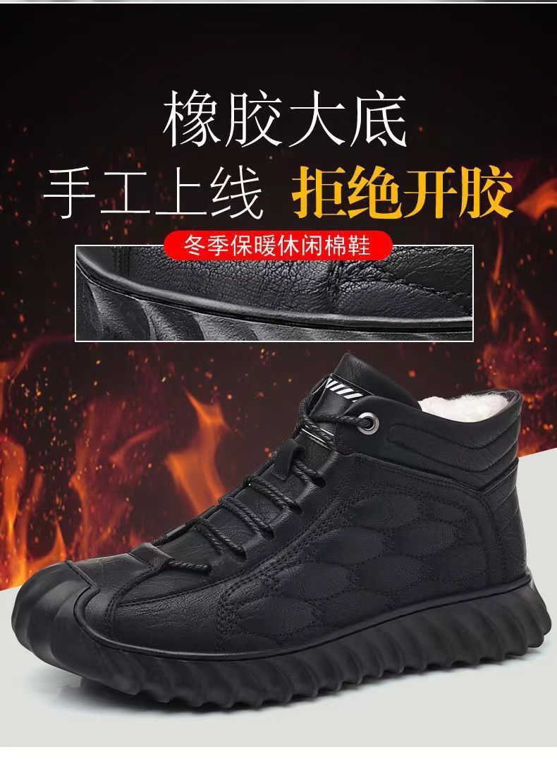 겨울 코튼 신발 하이탑 코튼 가죽 신발 남성용 새로운 두꺼운 따뜻한 신발 캐주얼 코튼 신발 남성용 냉장 스노우 부츠