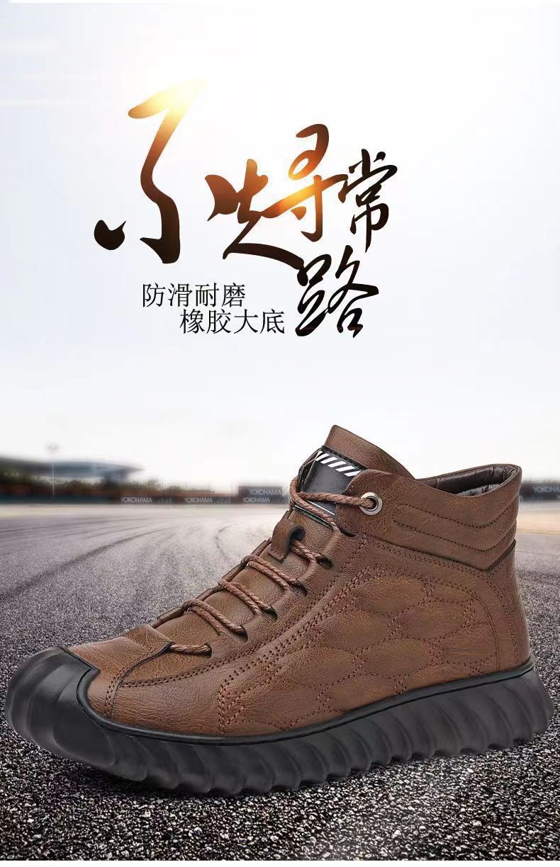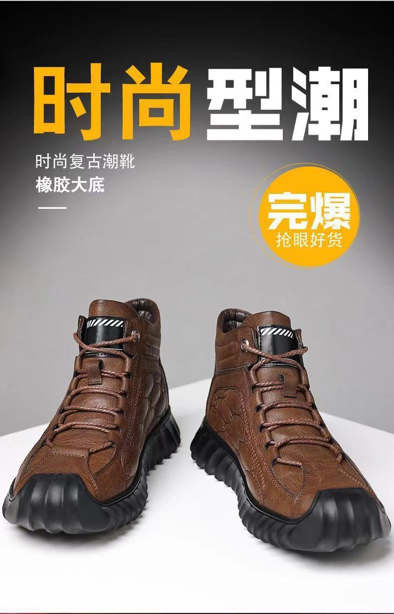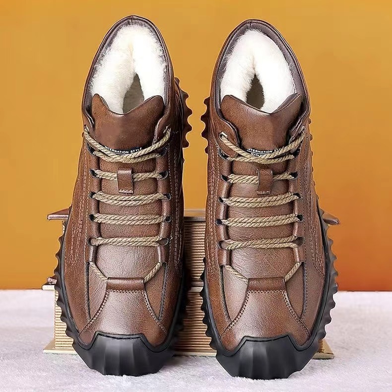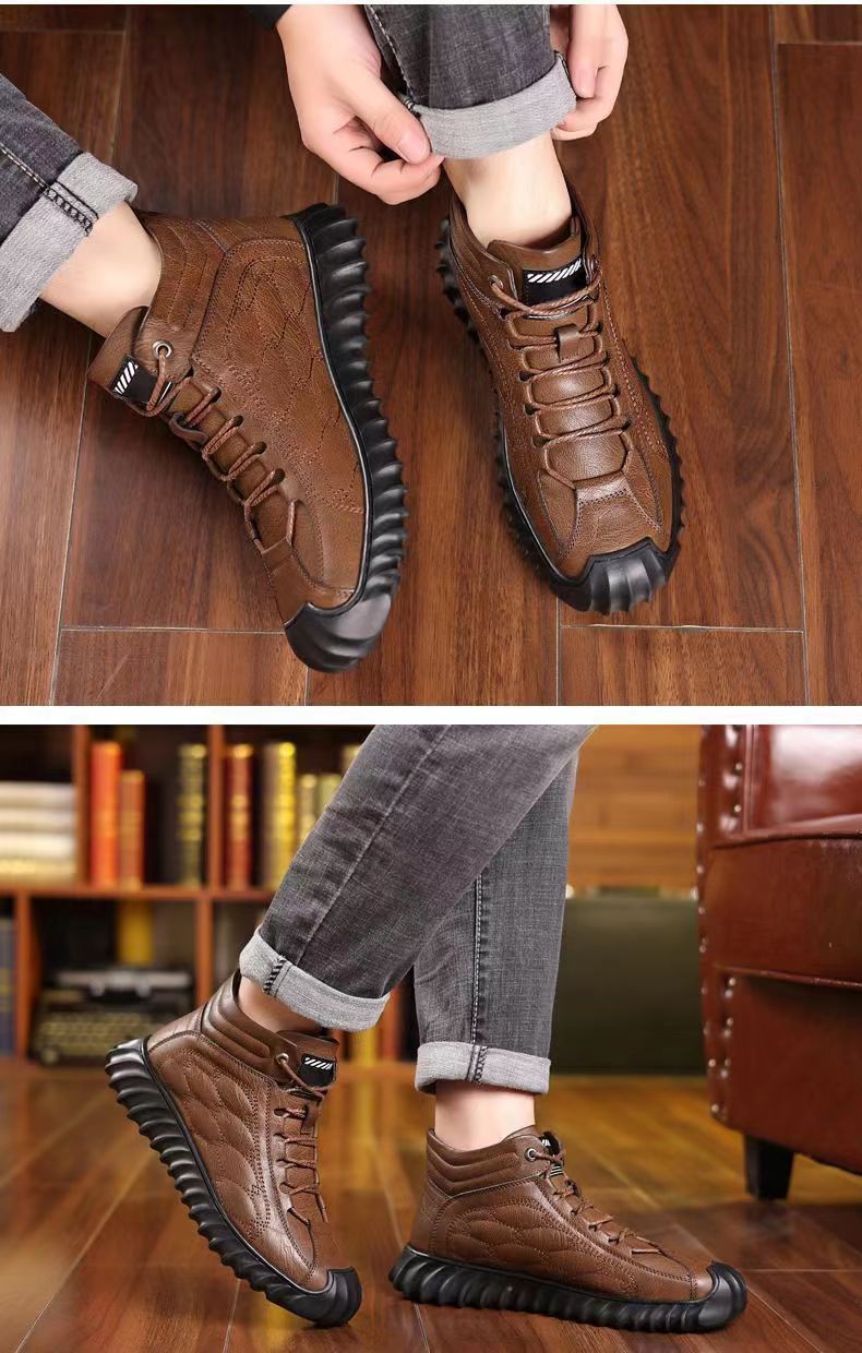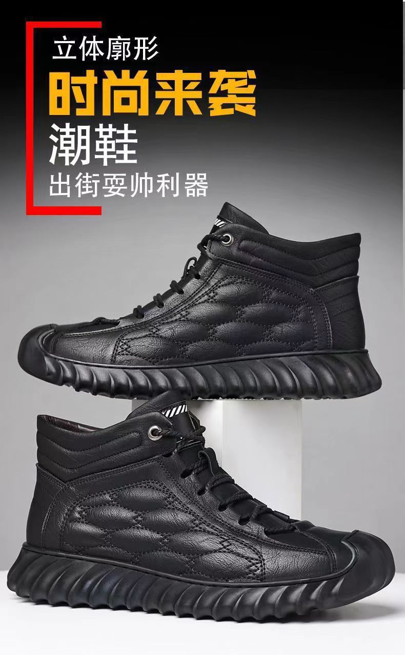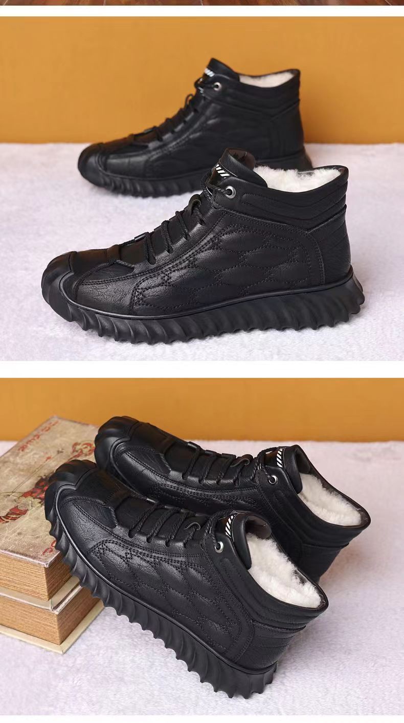 겨울 코튼 신발 하이탑 코튼 가죽 신발 남성용 새로운 두꺼운 따뜻한 신발 캐주얼 코튼 신발 남성용 냉장 스노우 부츠