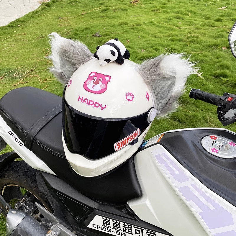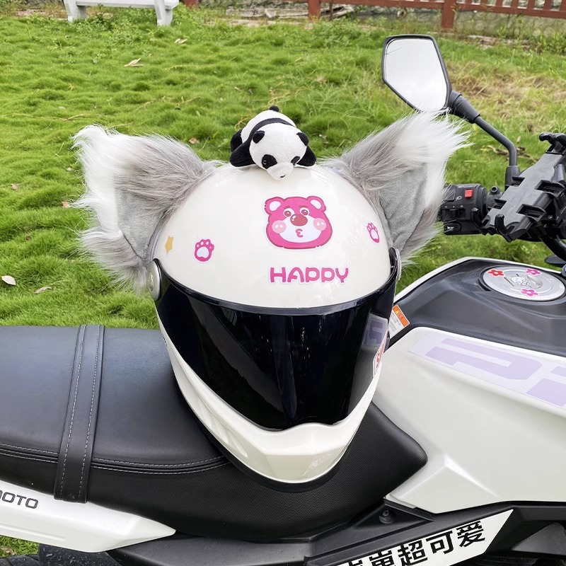 대형 수제 헬멧 장식 유니버설 액세서리 스키 헬멧 오토바이 헬멧 자이언트 그레이 폭스 이어 액세서리 분리 가능