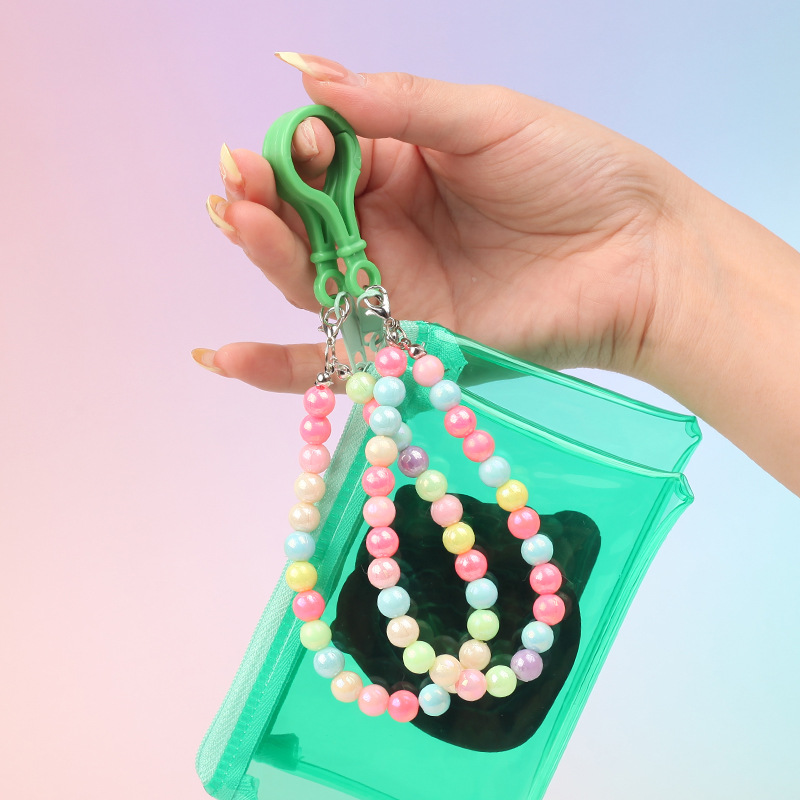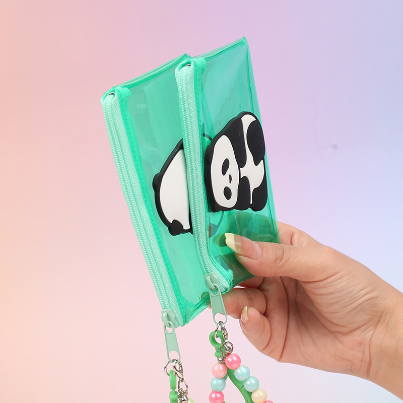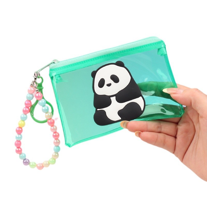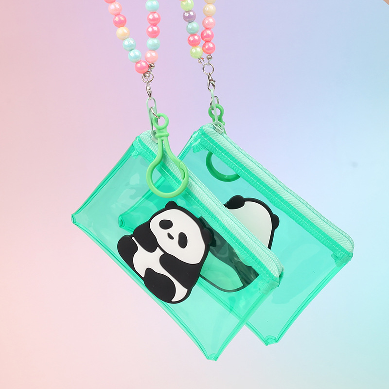 귀여운 만화 팬더 투명 스퀘어 코인 지갑 구슬 체인 카드 가방 미니 스토리지 가방 휴대용 방수 인증서 카드 케이스