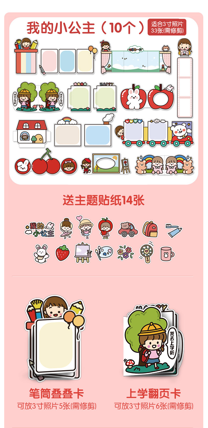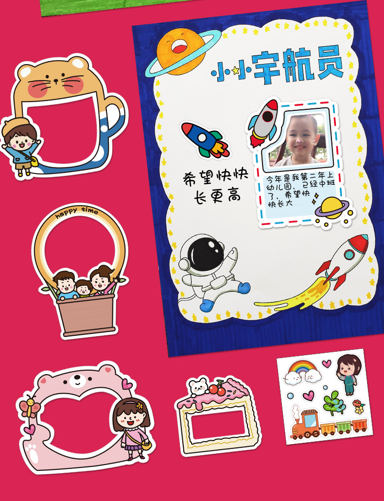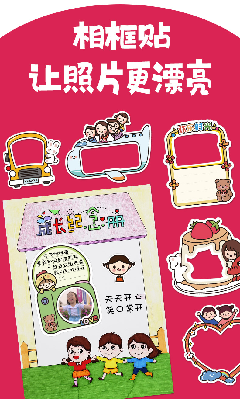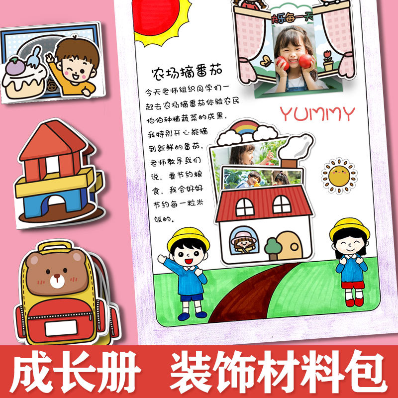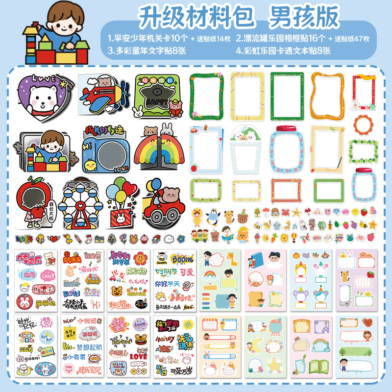 성장 수동 기념 도서 장기 카드 장식 재료 패키지 유치원 레코드 북 파일 사진 앨범 스티커 종종