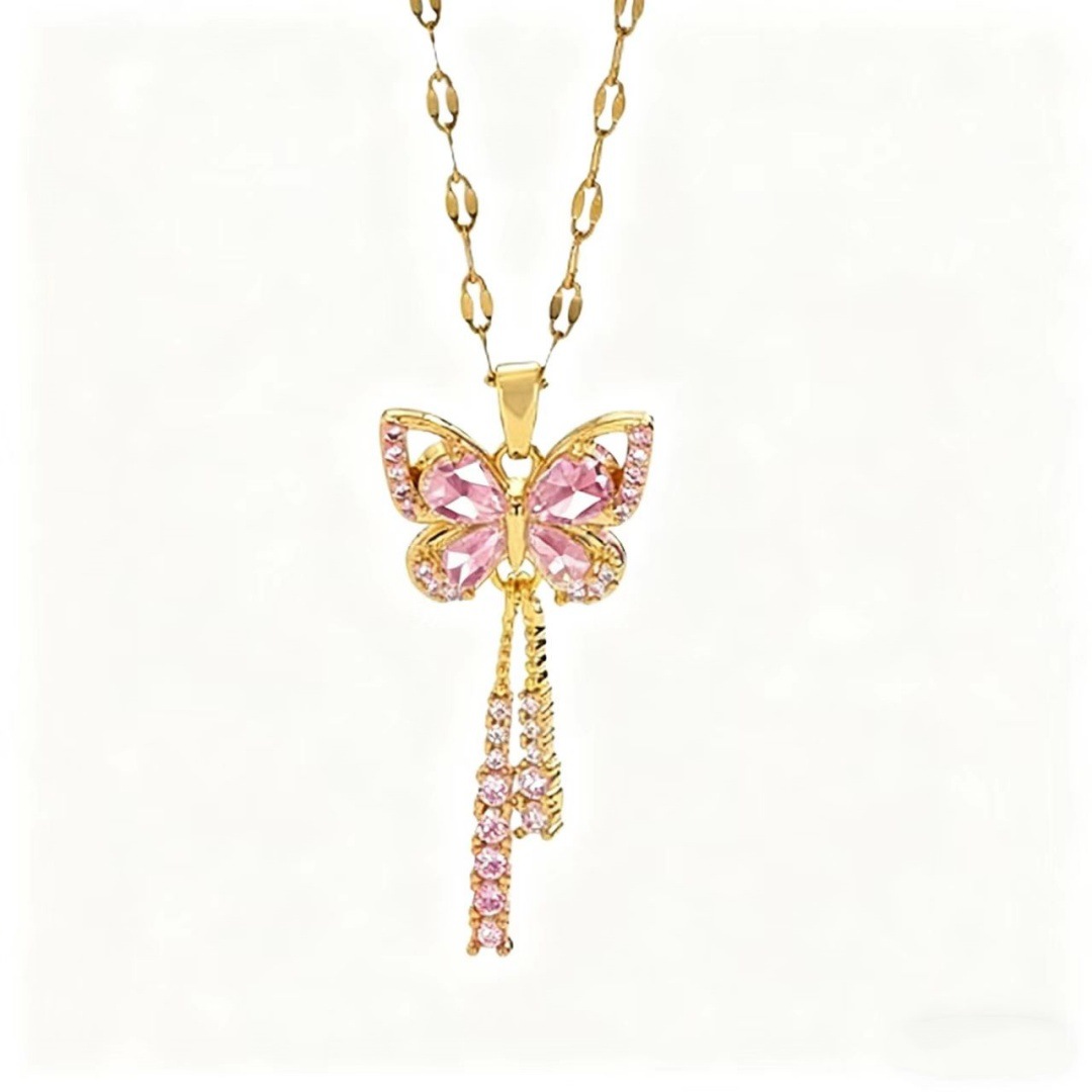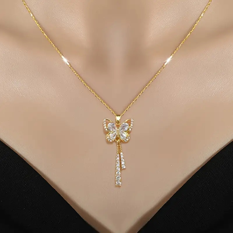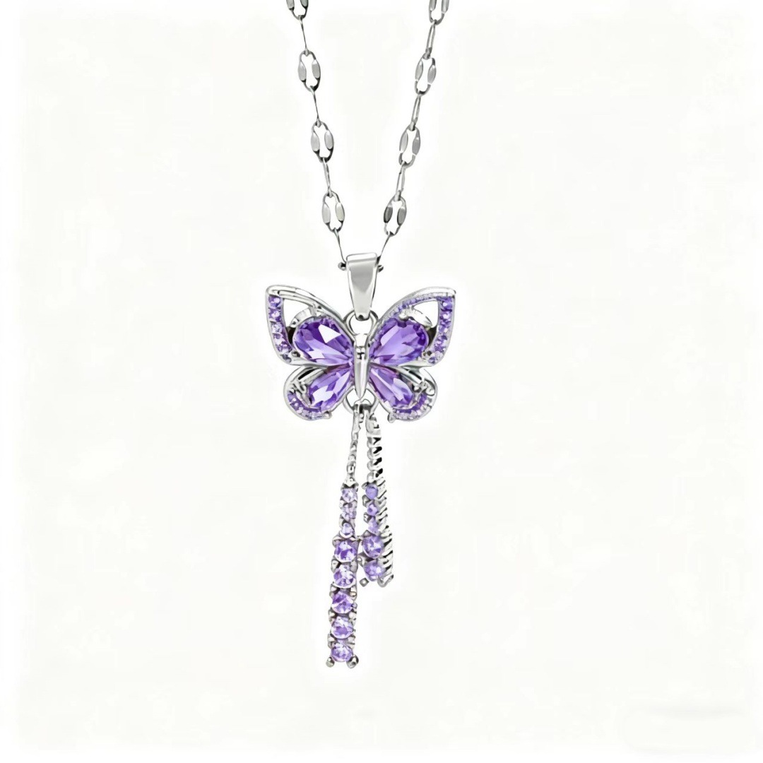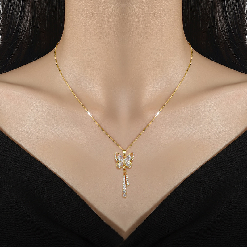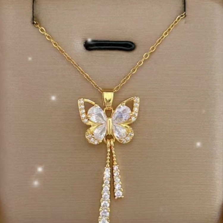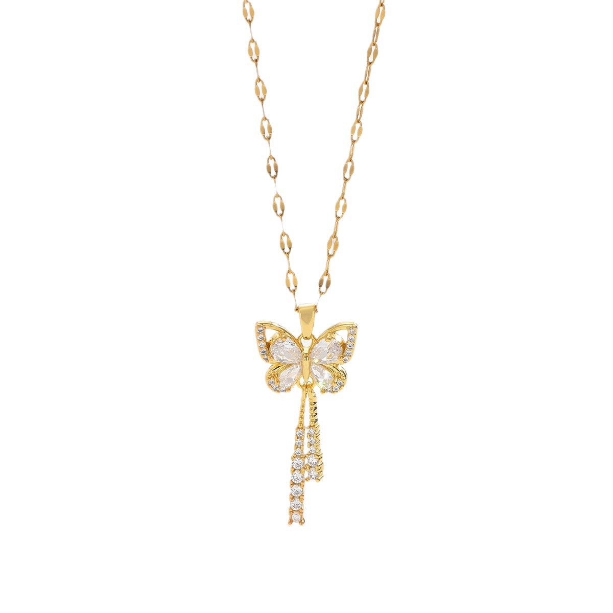 [티타늄강] 술 나비 빛 럭셔리 패션 심플 할로우 절묘한 목걸이 여성용 올매치 콜라본 체인 펜던트
