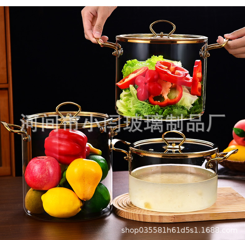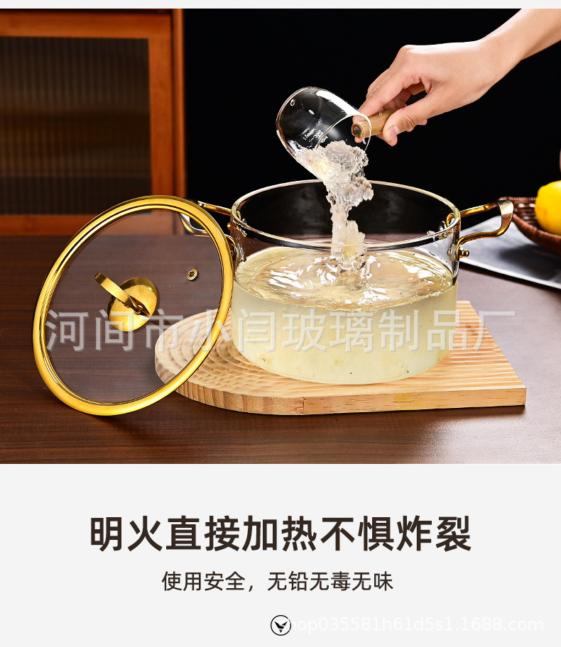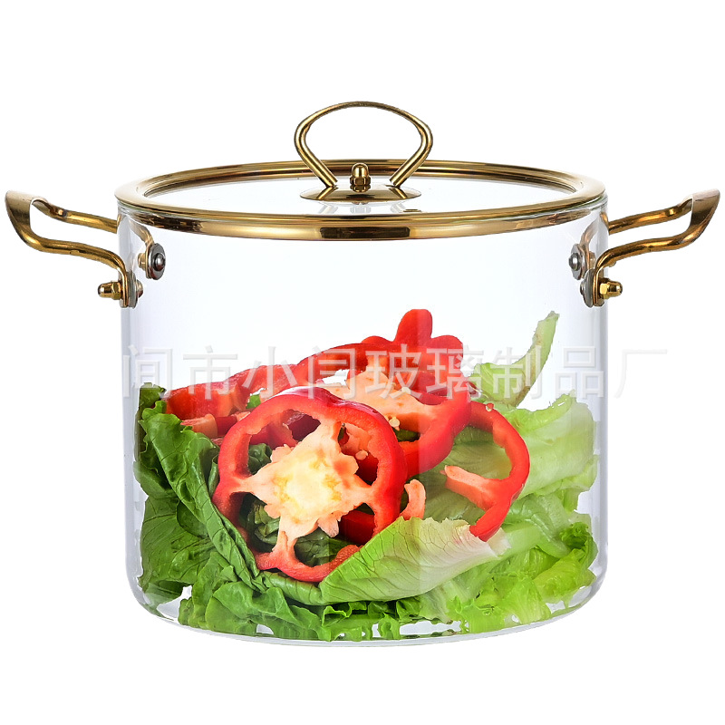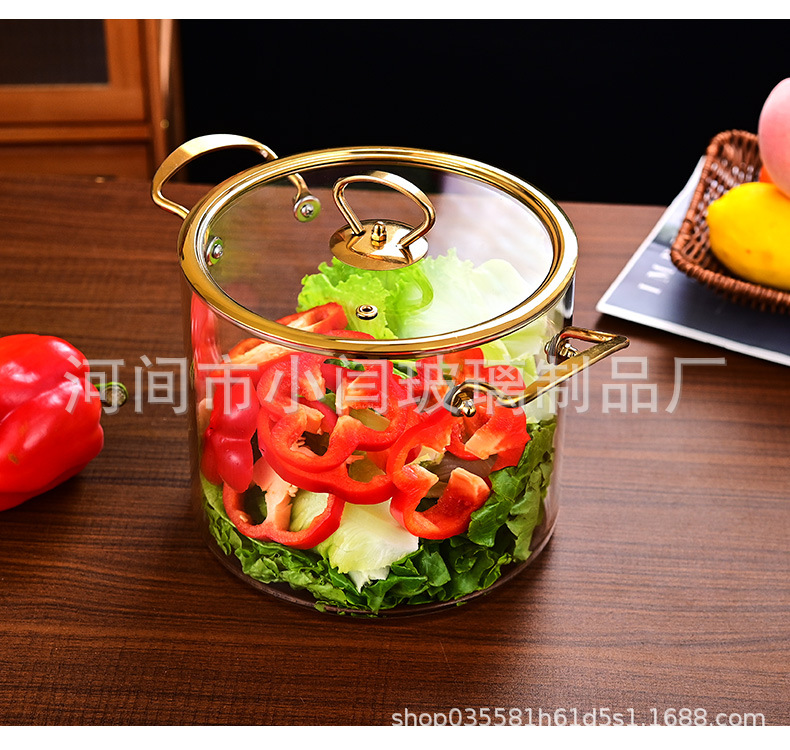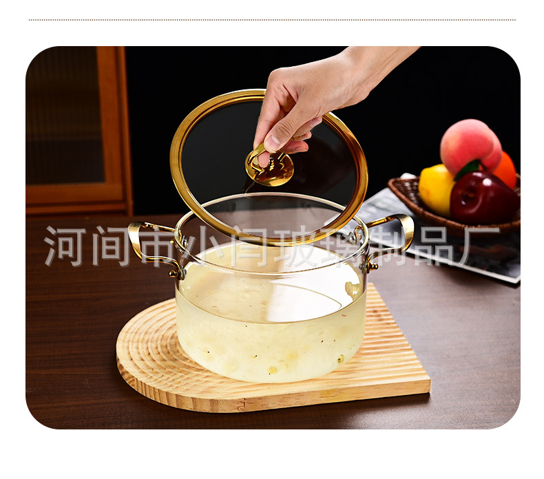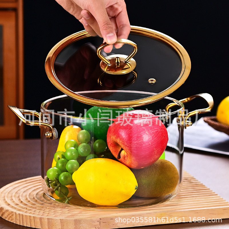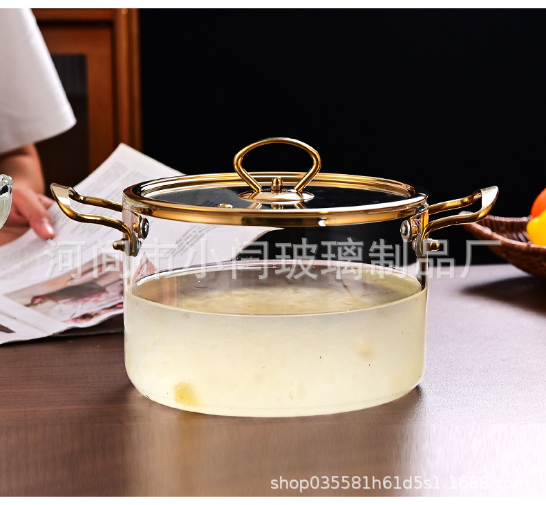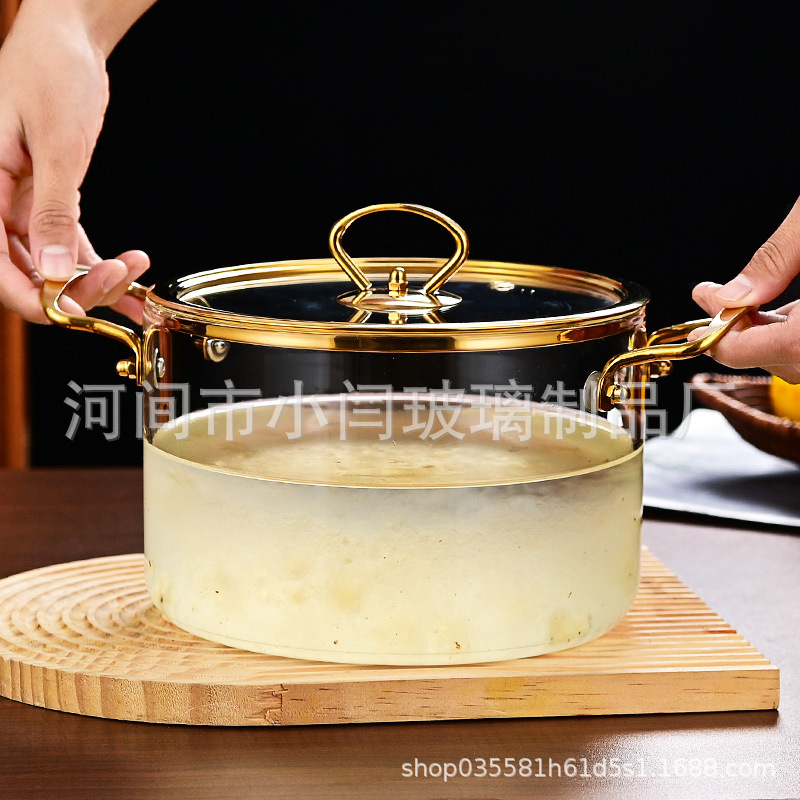 뚜껑 스튜 냄비 유리 우유 냄비를 가진 황금 강철 손잡이 수프 냄비 내열성 유리 냄비