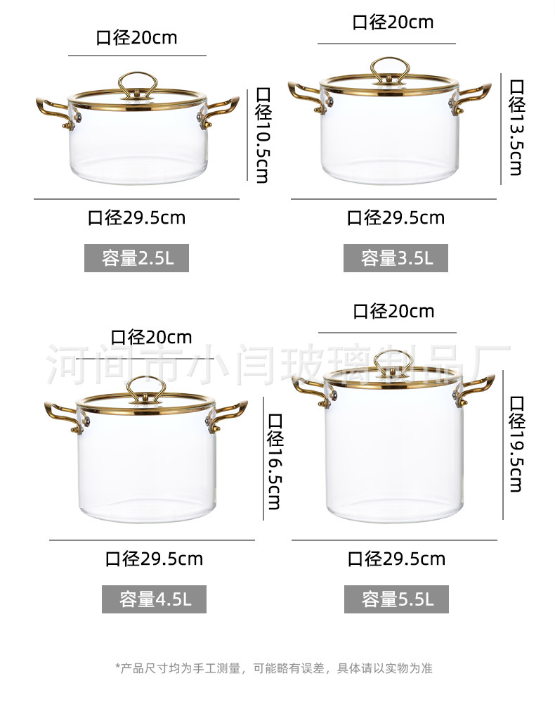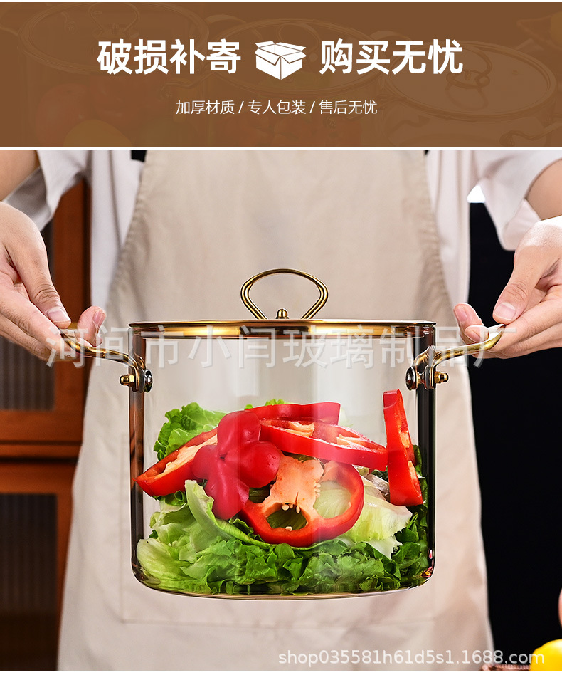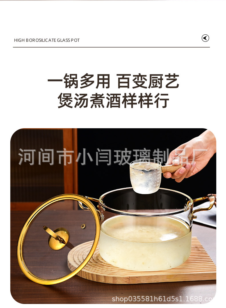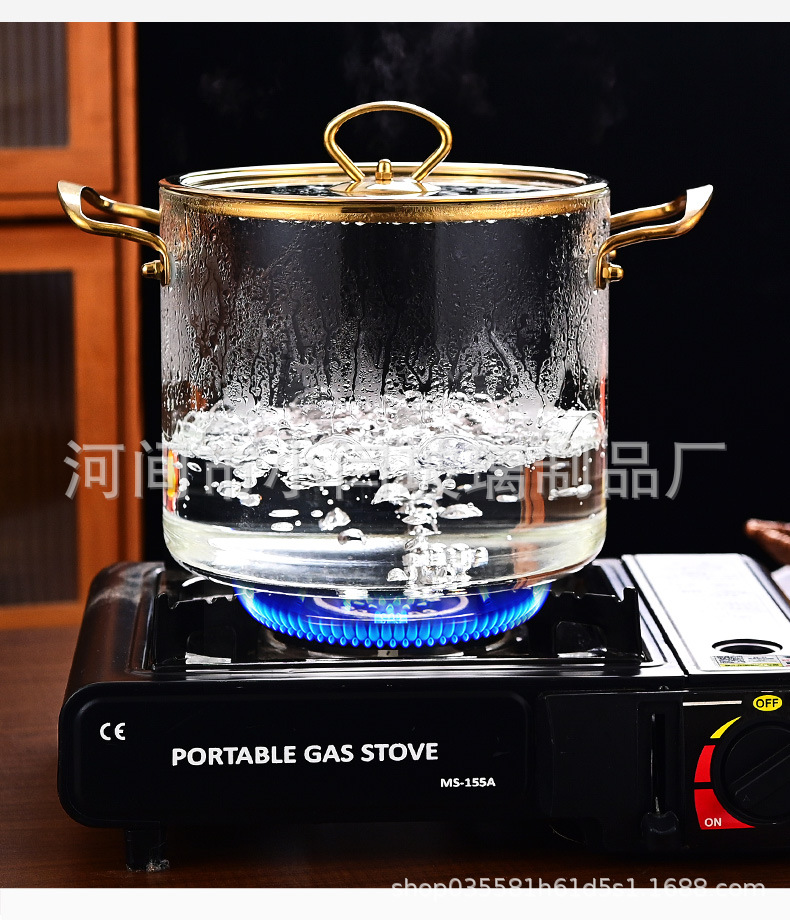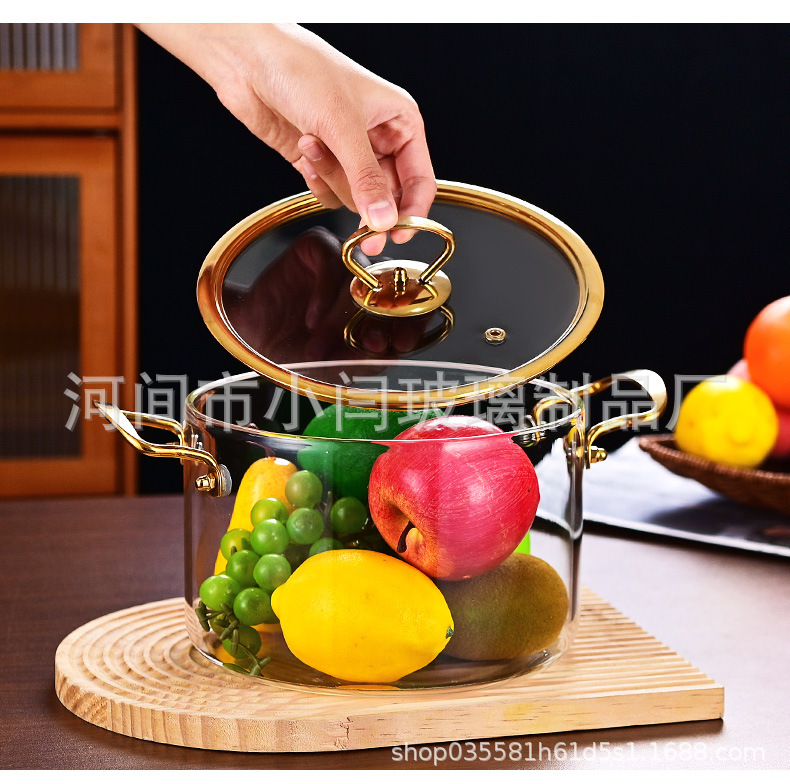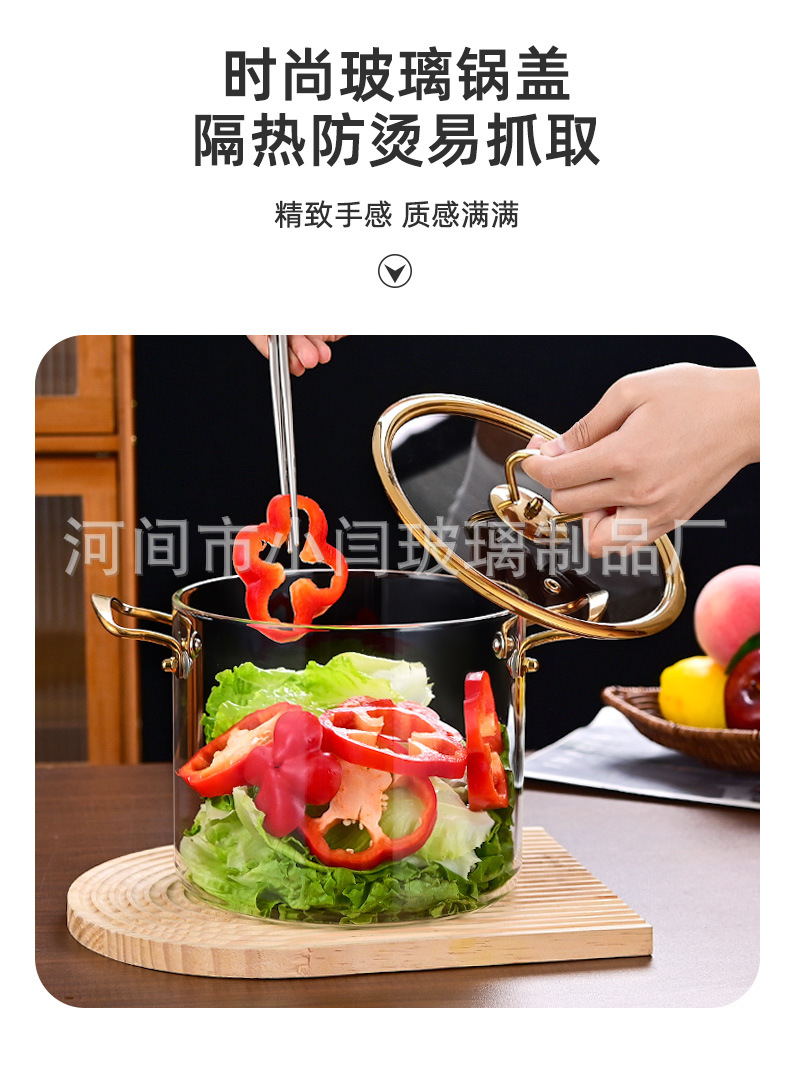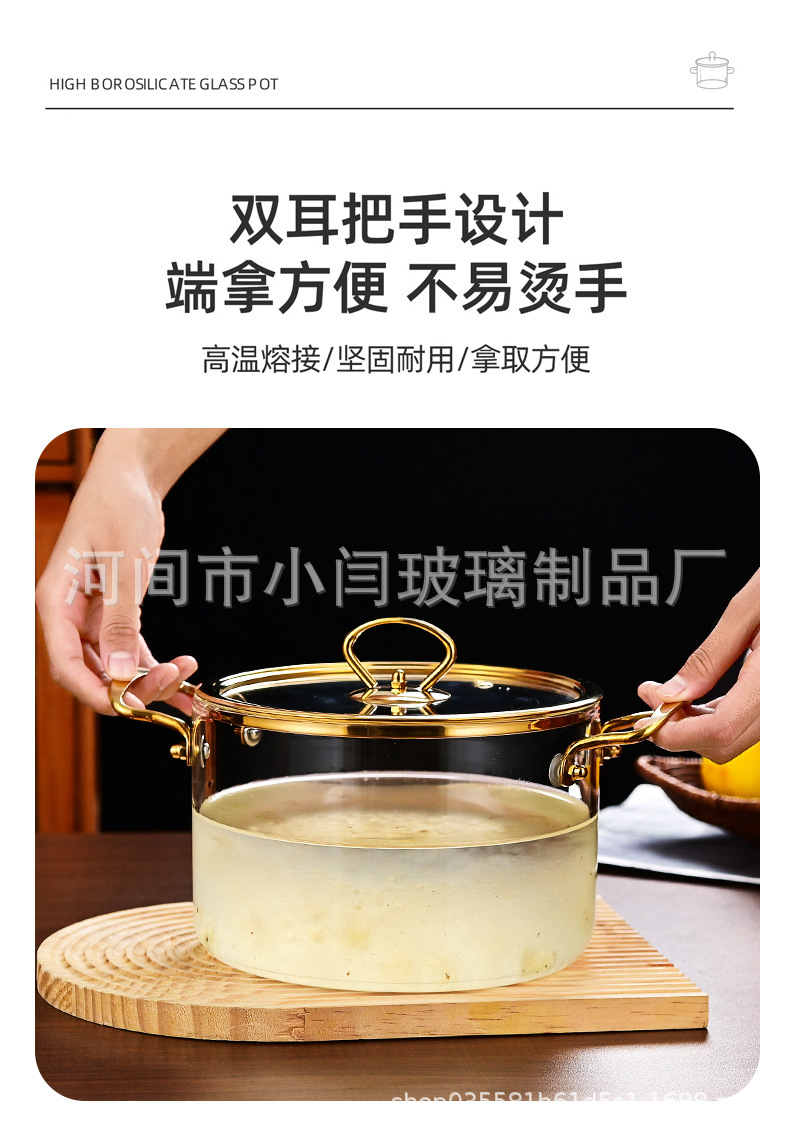 뚜껑 스튜 냄비 유리 우유 냄비를 가진 황금 강철 손잡이 수프 냄비 내열성 유리 냄비