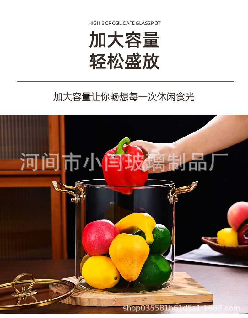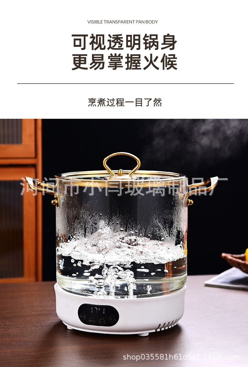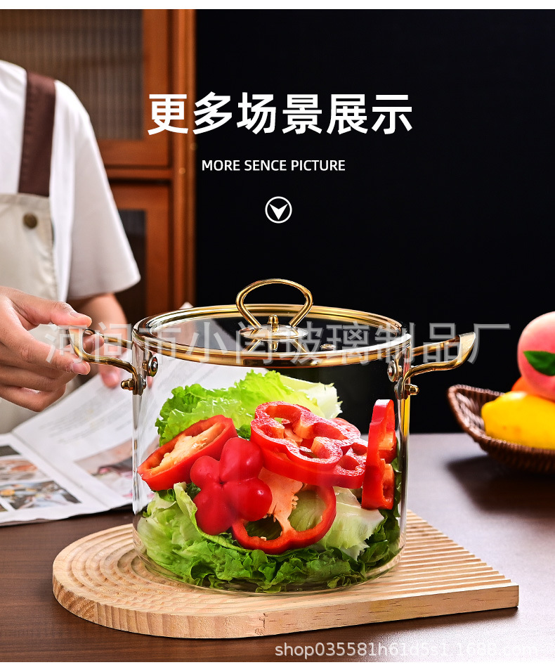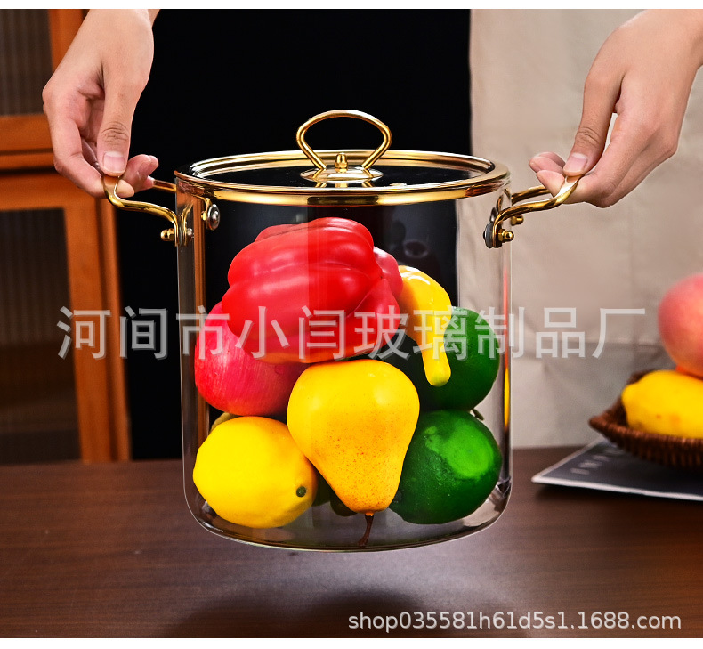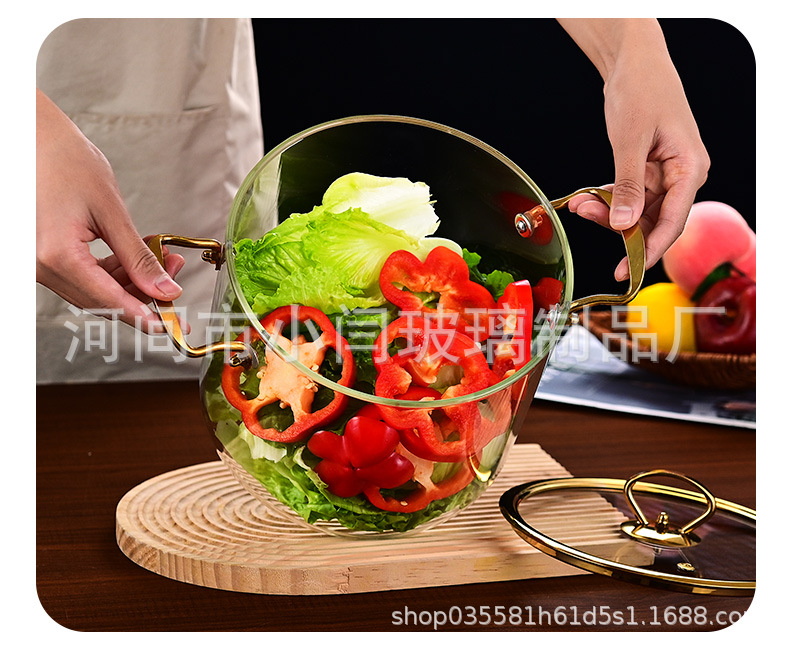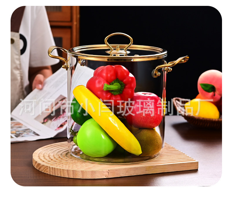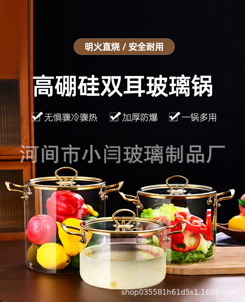 뚜껑 스튜 냄비 유리 우유 냄비를 가진 황금 강철 손잡이 수프 냄비 내열성 유리 냄비