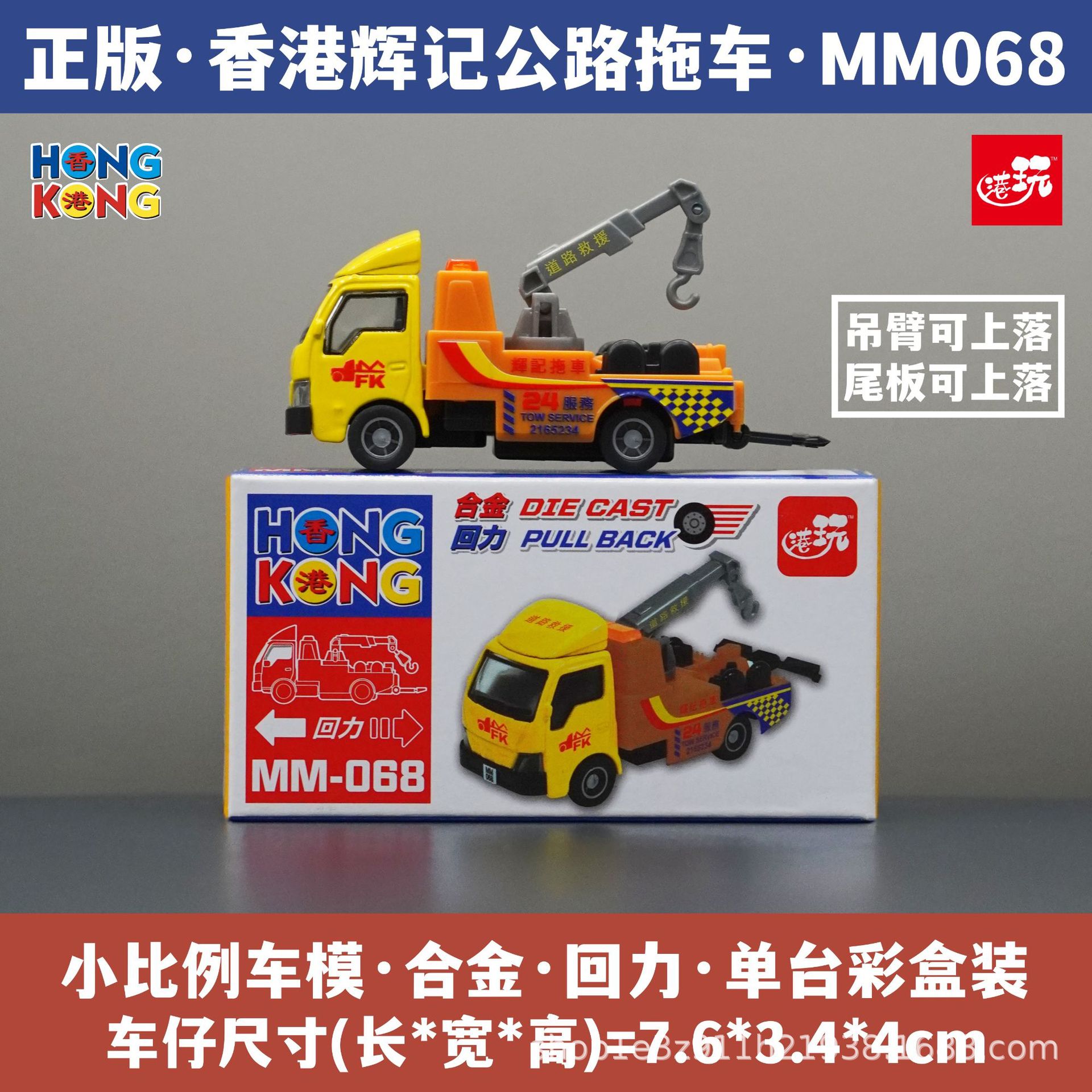 홍콩 Huiji 도로 트레일러 구조 시뮬레이션 자동차 모델 어린이 장난감 기념품 선물 합금 자동차 모델