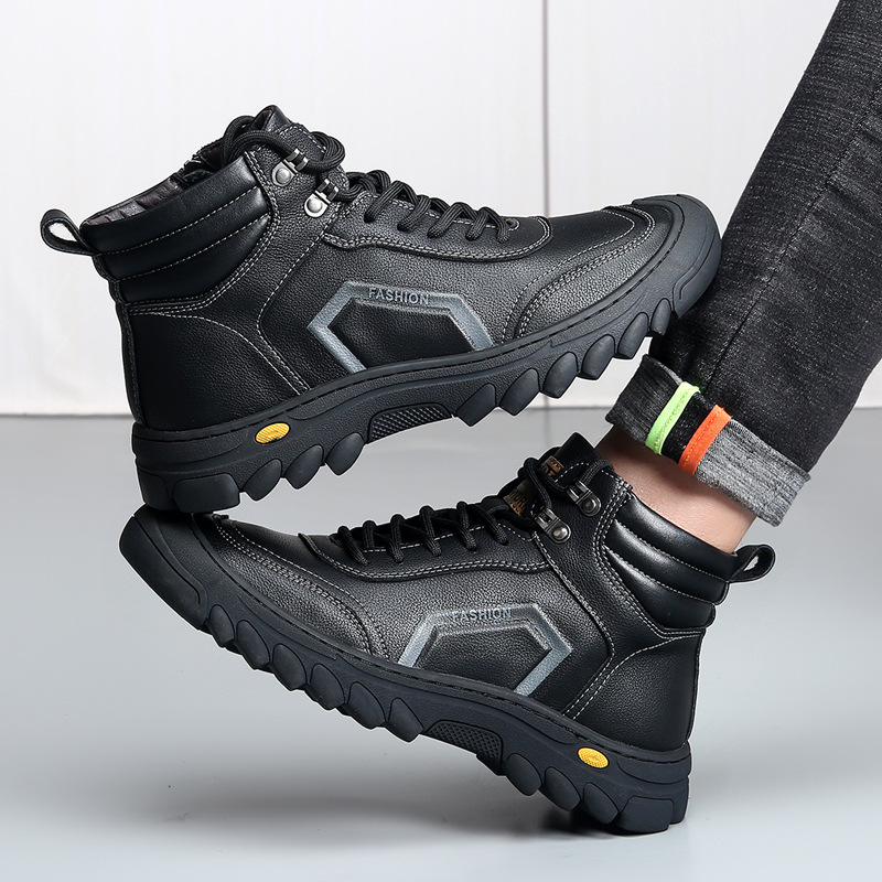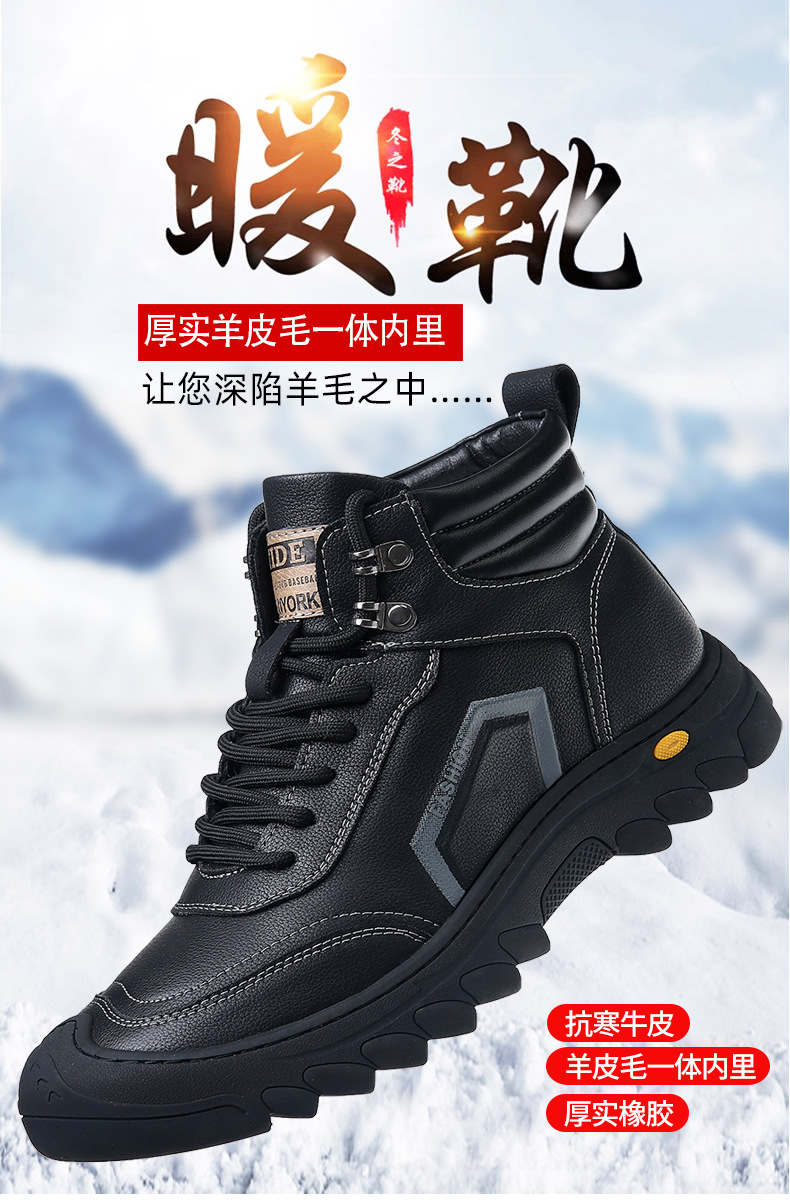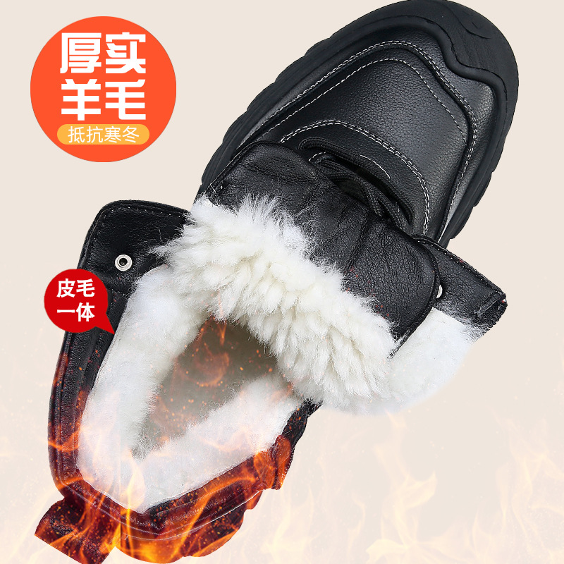 남성용 두꺼운 면화, 겨울용 천연가죽 부츠, 남성용 하이탑 스노우 부츠, 남성용 북동부 따뜻한 울 올인원 남성용 신발