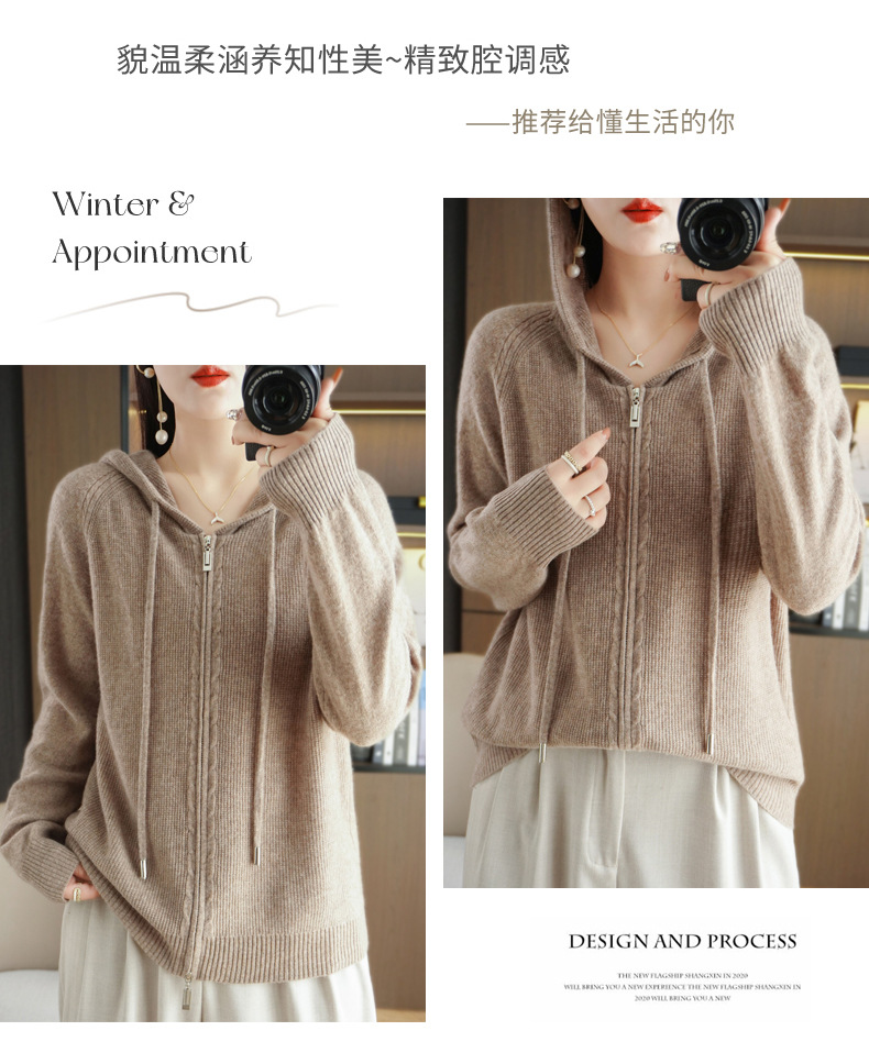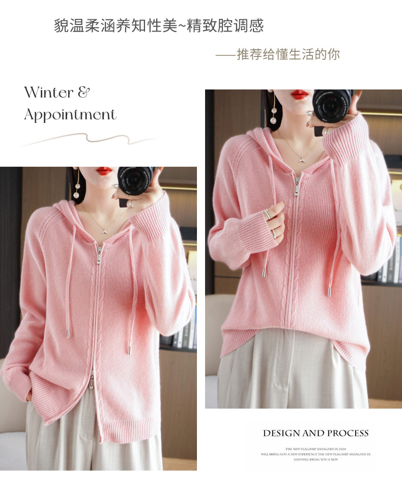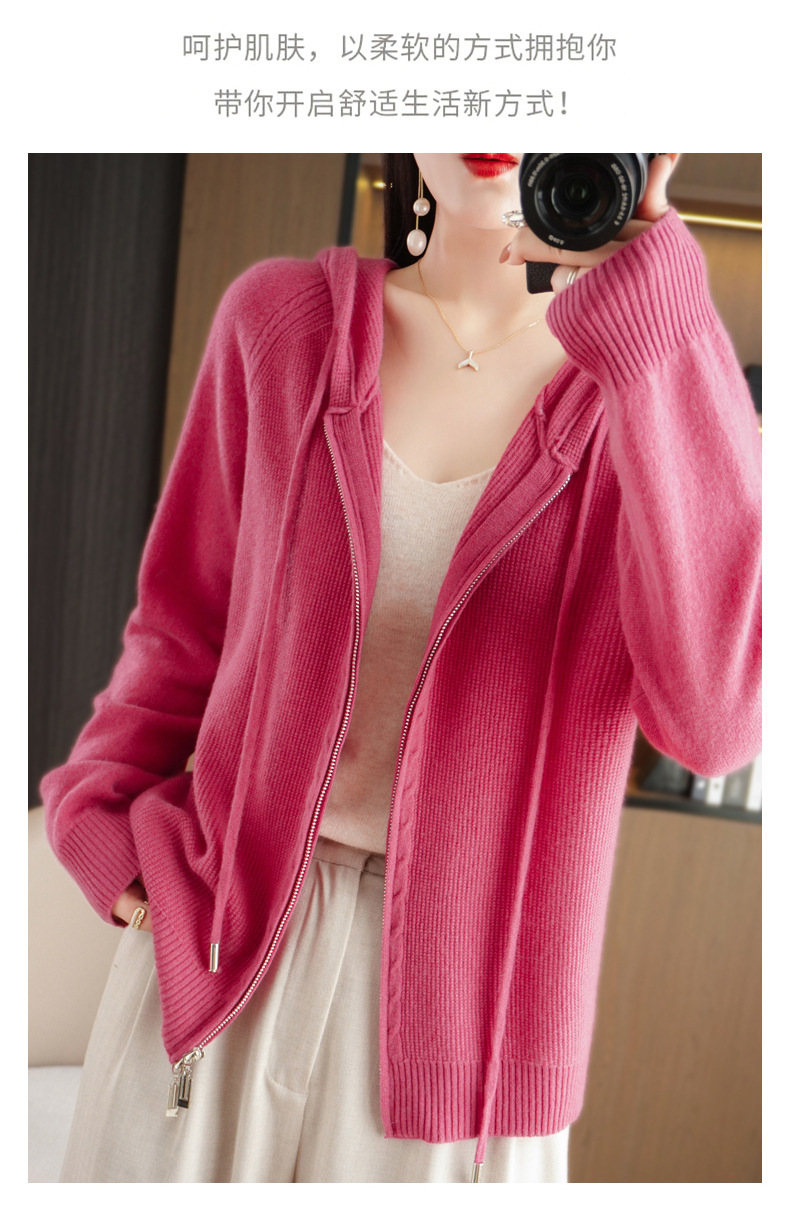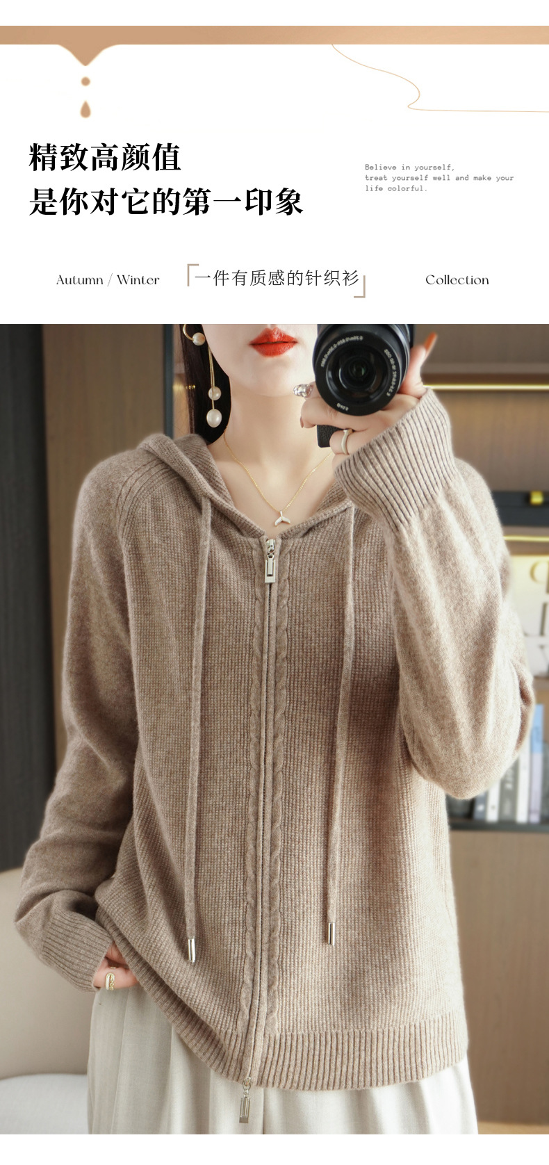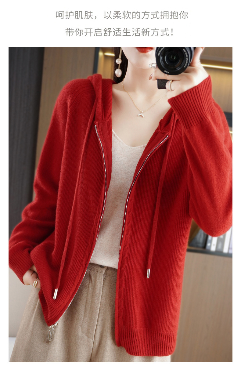 니트 재킷 여성 플러스 사이즈 재킷 후드 니트 카디건