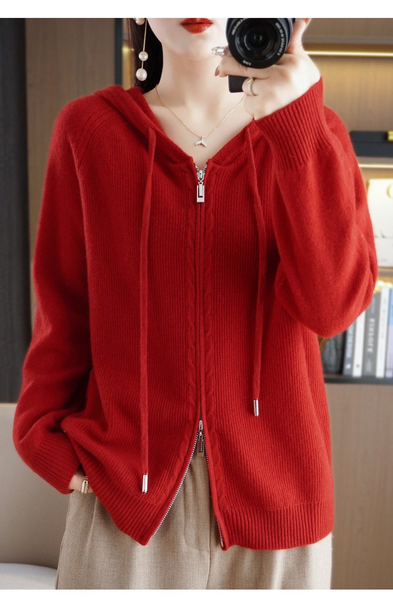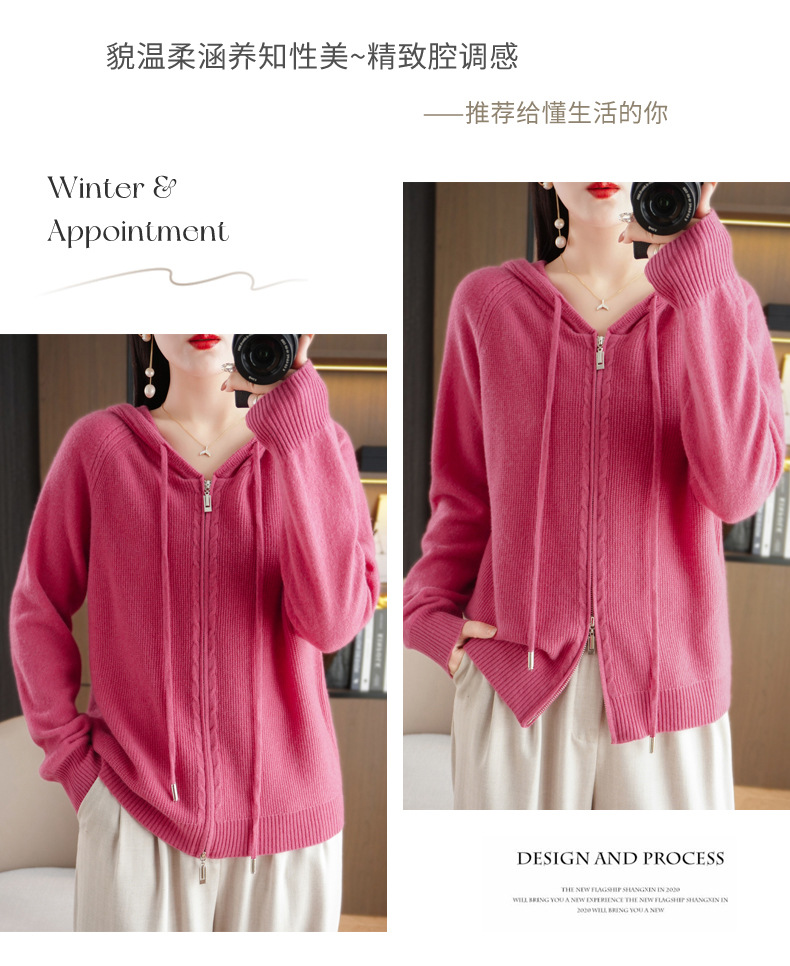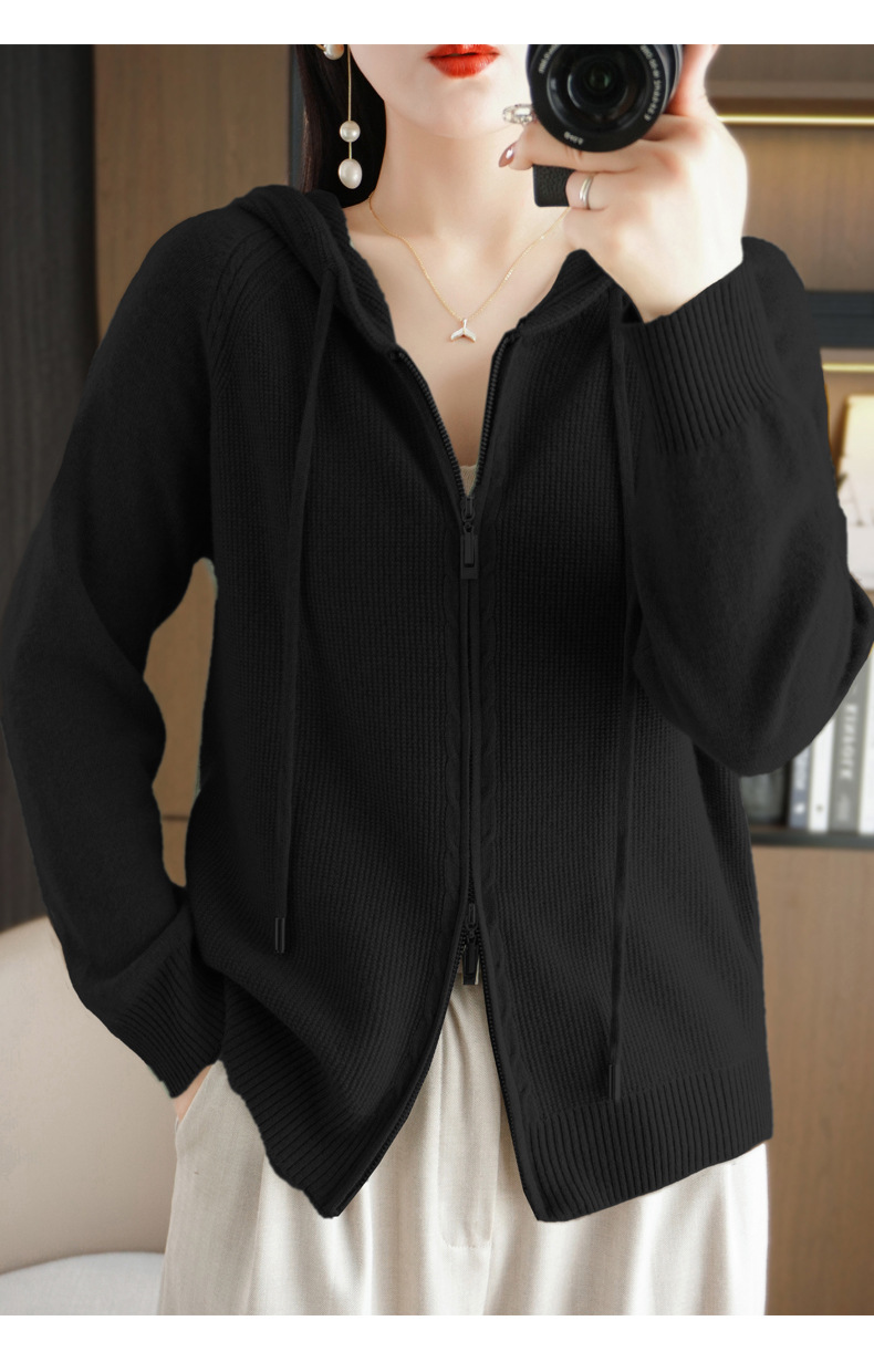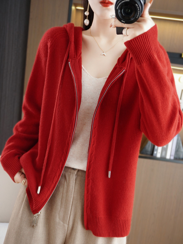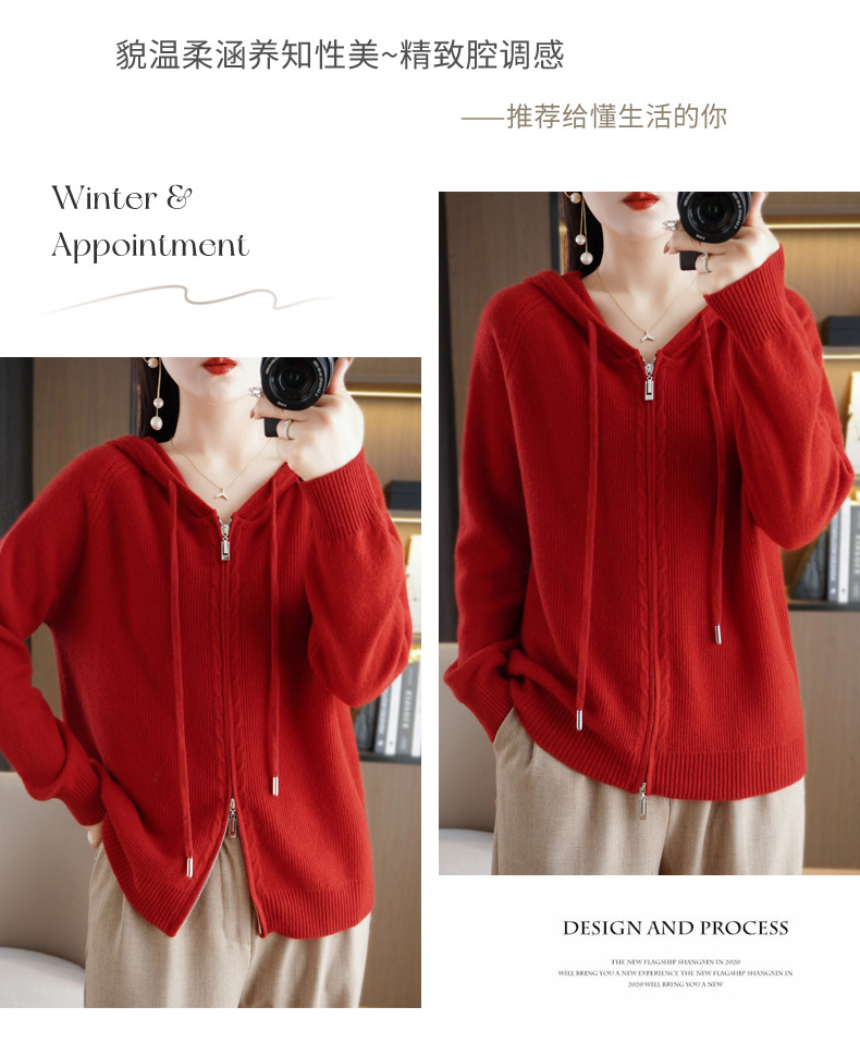니트 재킷 여성 플러스 사이즈 재킷 후드 니트 카디건