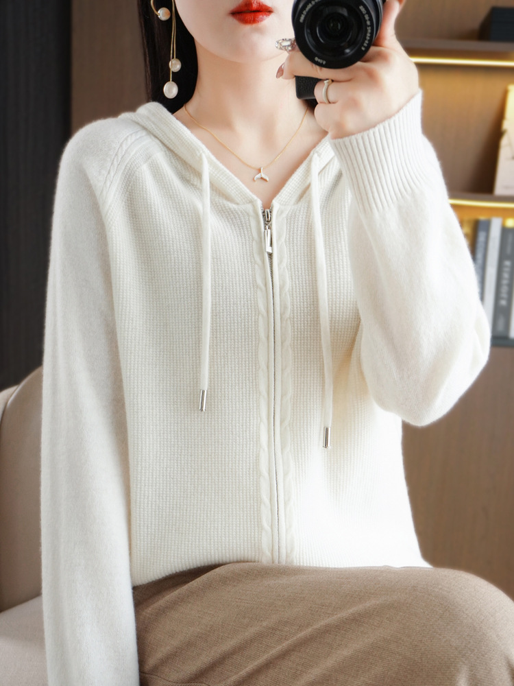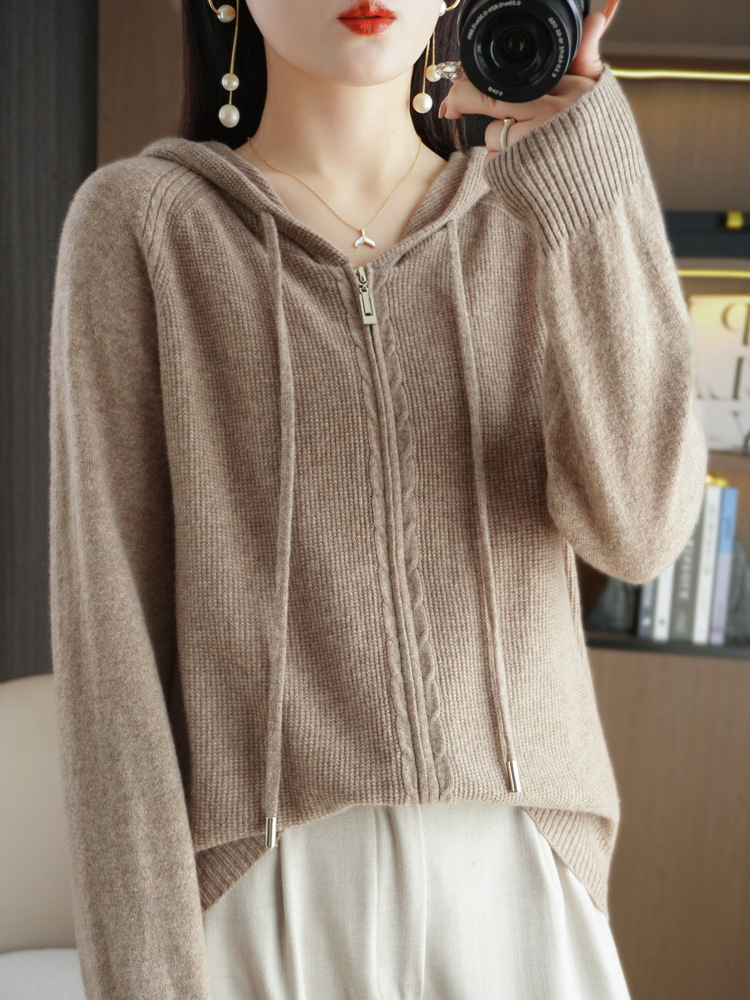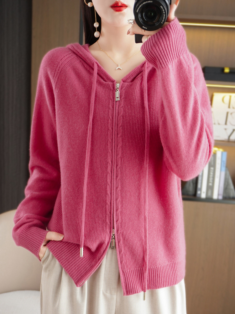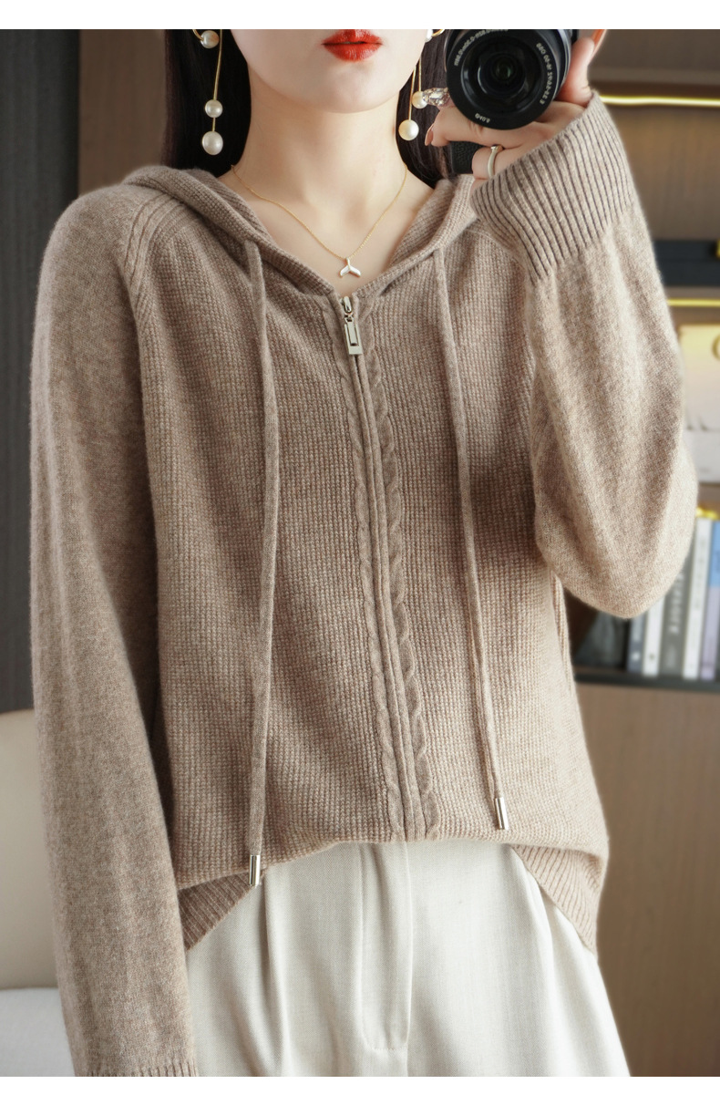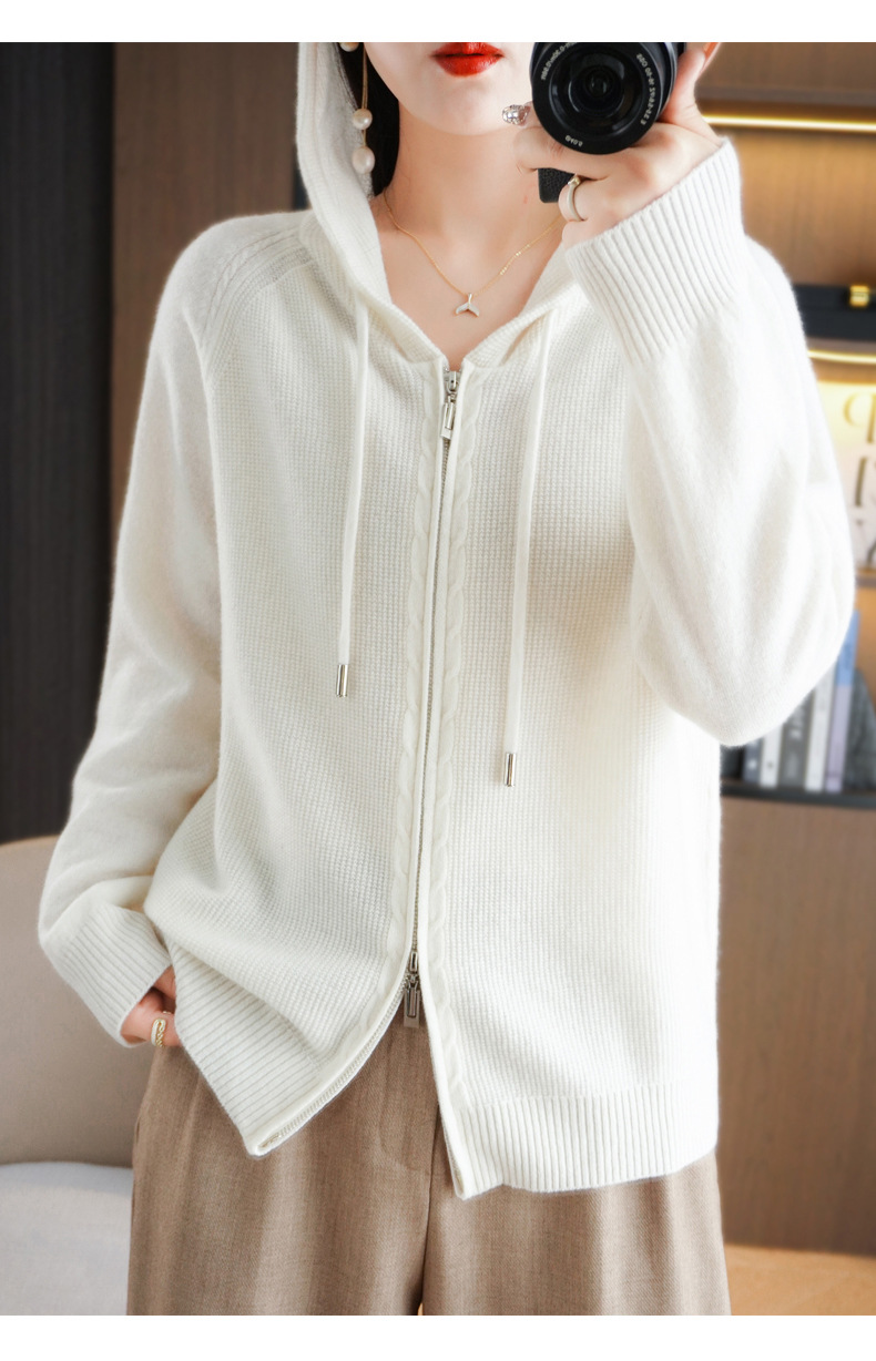 니트 재킷 여성 플러스 사이즈 재킷 후드 니트 카디건
