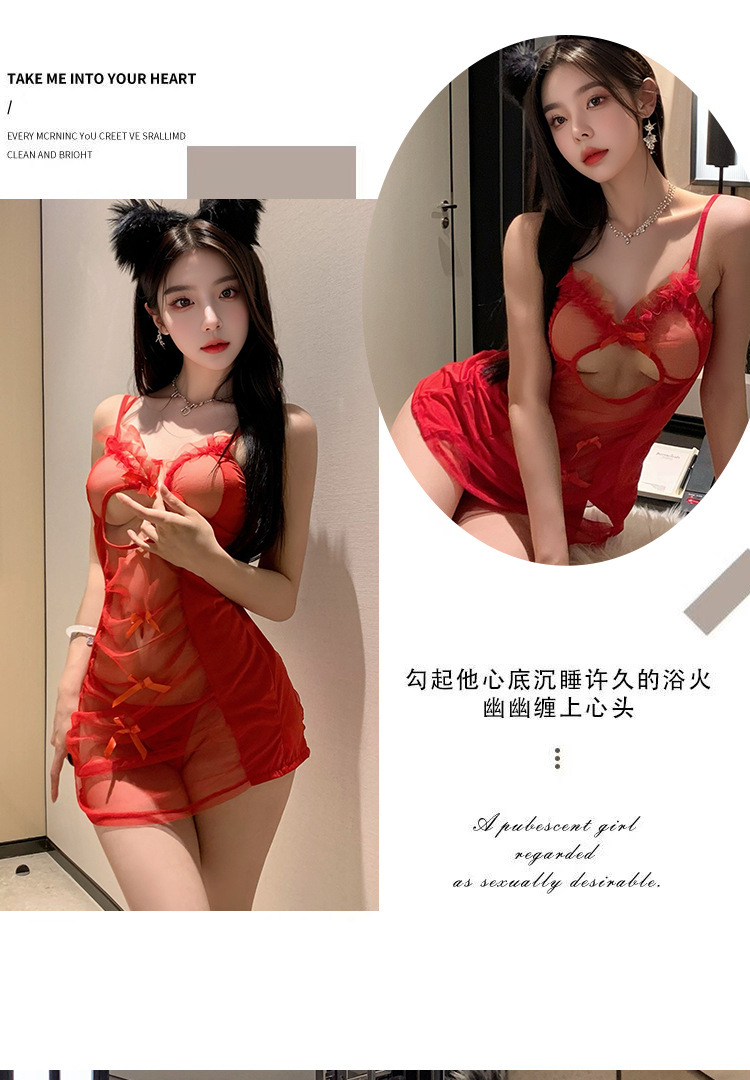 란제리 섹시한 벨벳 메쉬 관점 Tulle 슬링 스커트 파자마 역할 재생 침대 유혹 세트