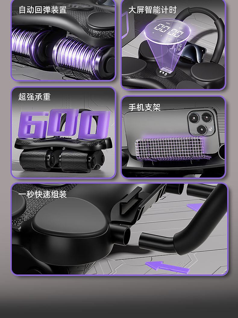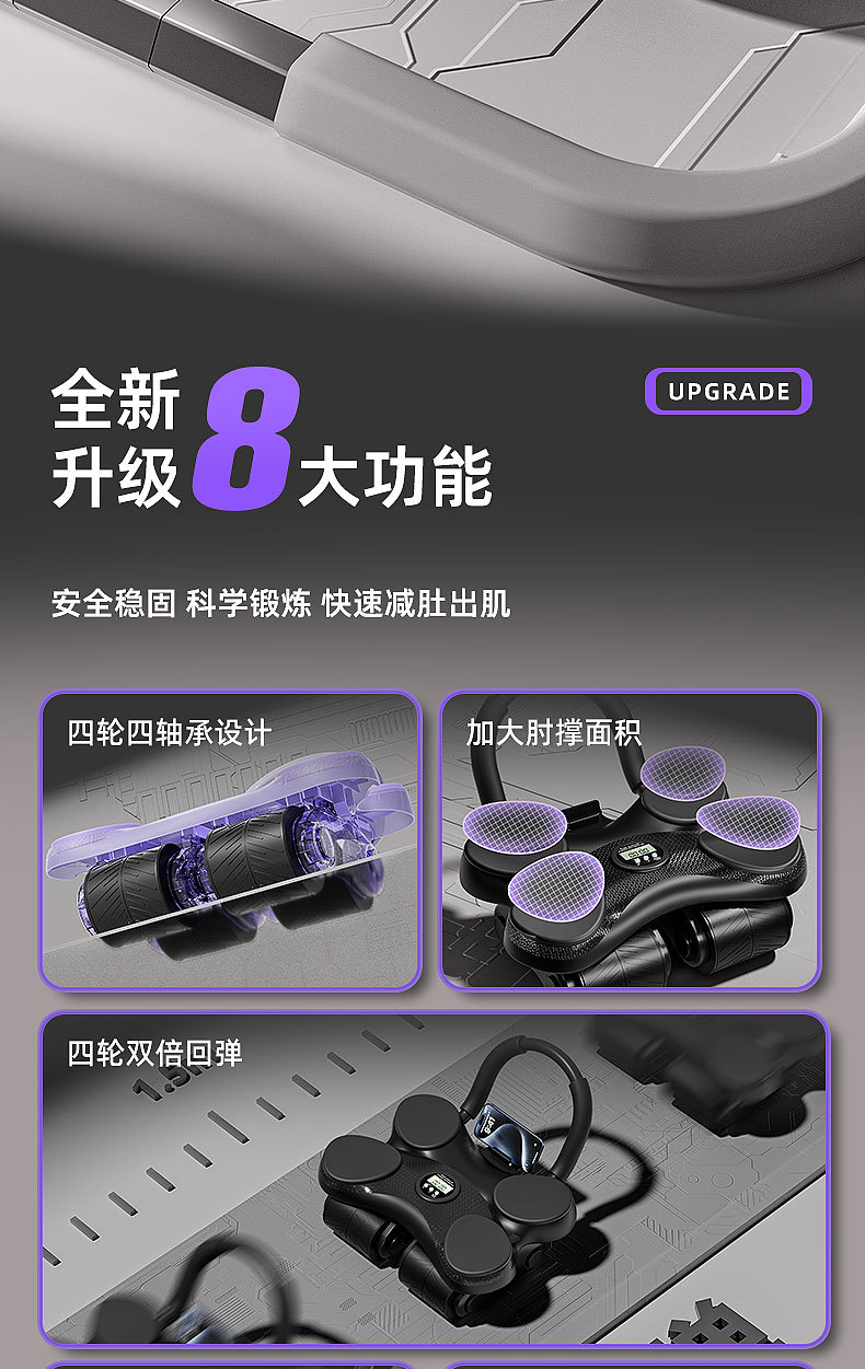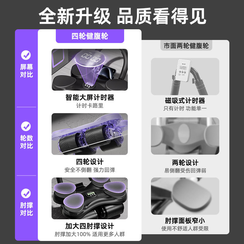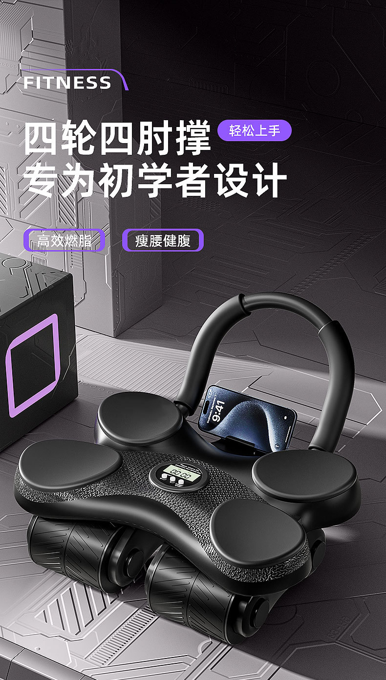 4 륜 복부 휠 자동 리바운드 가정용 얇은 배 아티팩트 2024 새로운 롤 복부 근육 운동 피트니스 장비