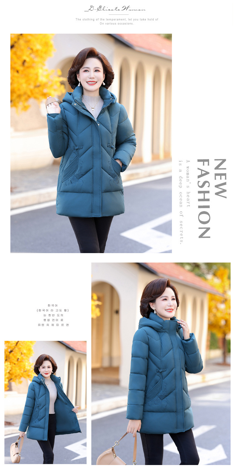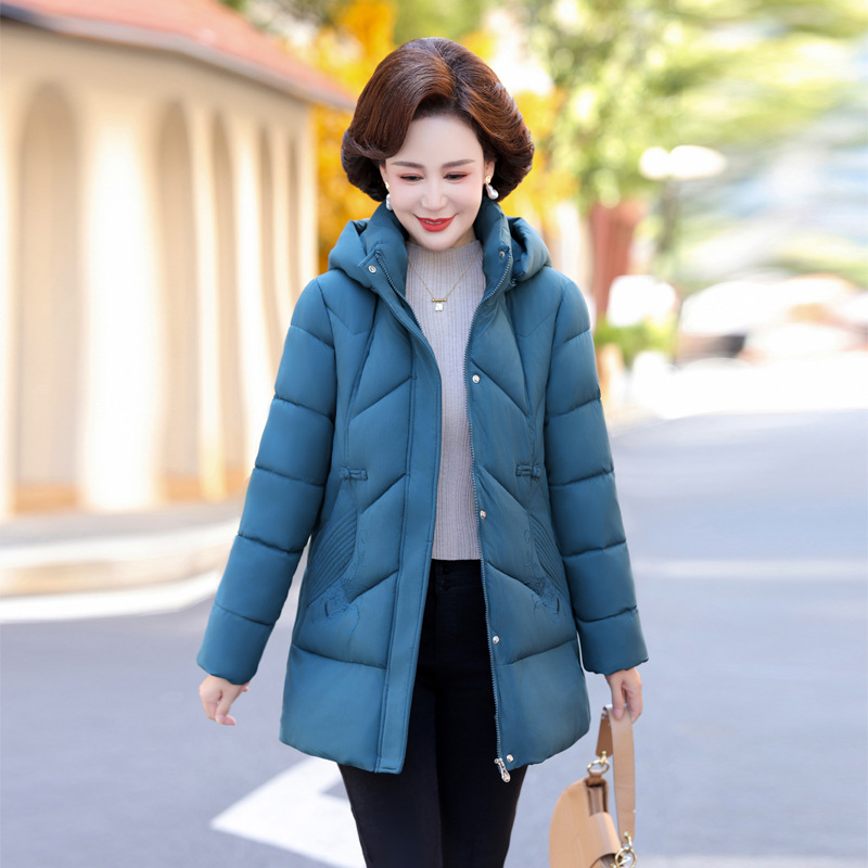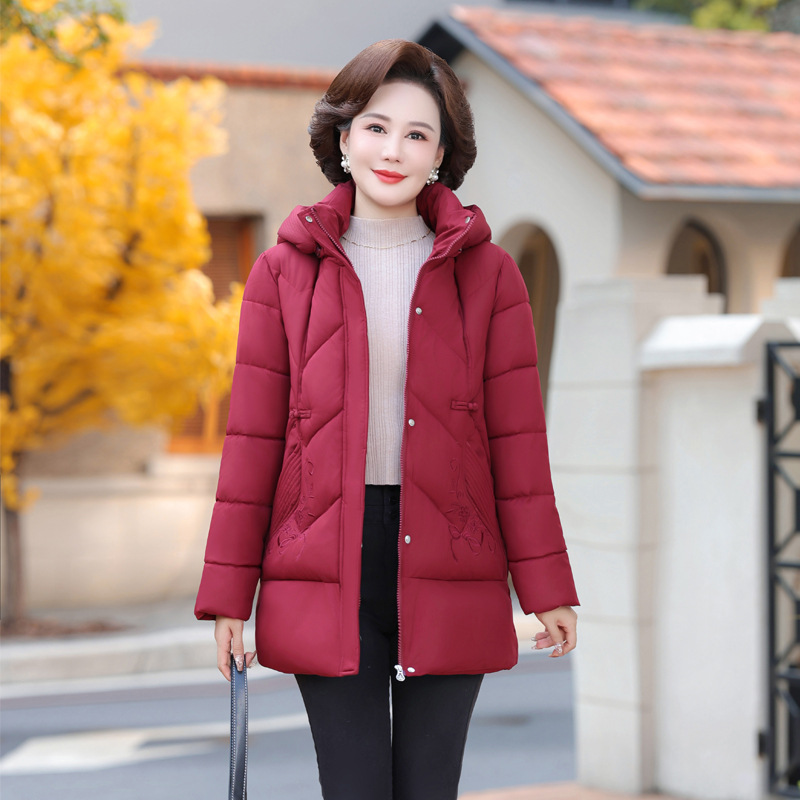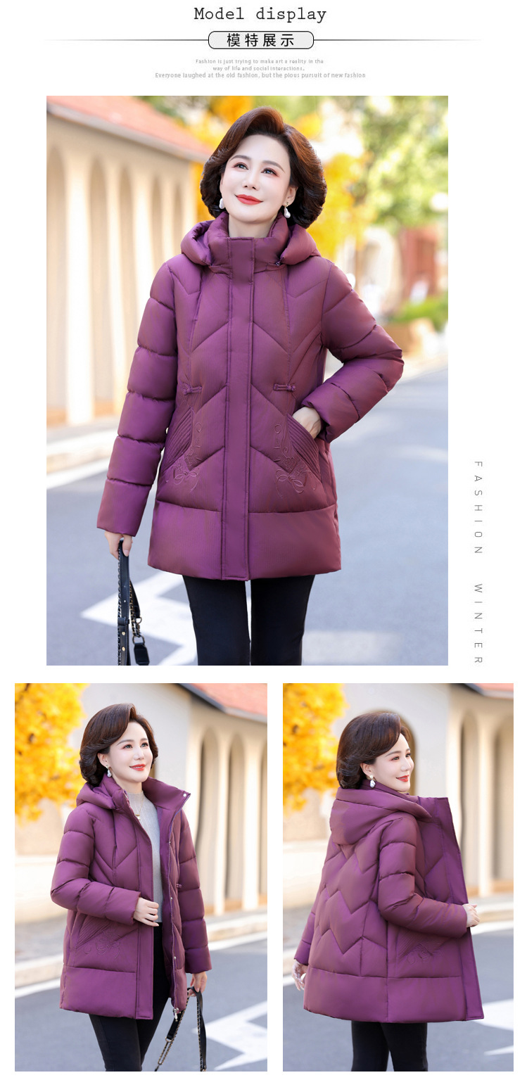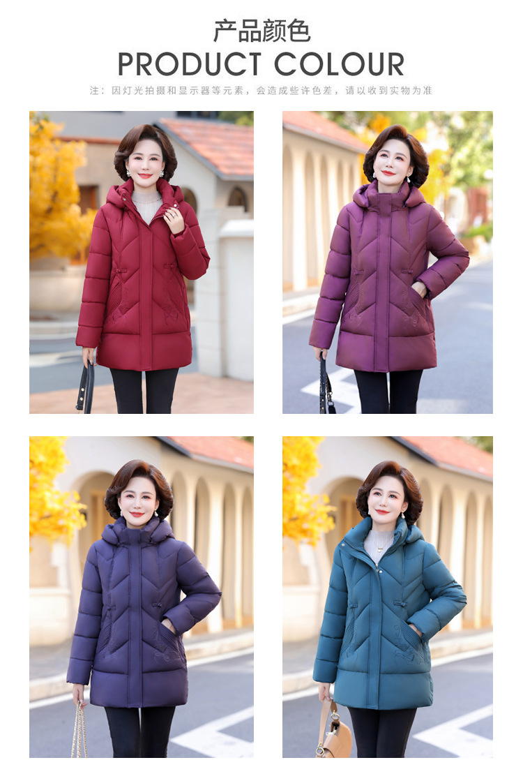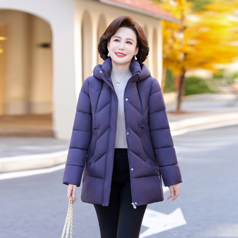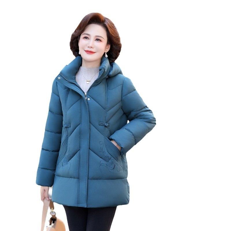 대외 무역 어머니면 패딩 재킷 코트 2024 겨울 새로운 다운 코튼 패딩 재킷 후드 중년 및 노인 여성 따뜻한 패딩 면화 패딩 재킷