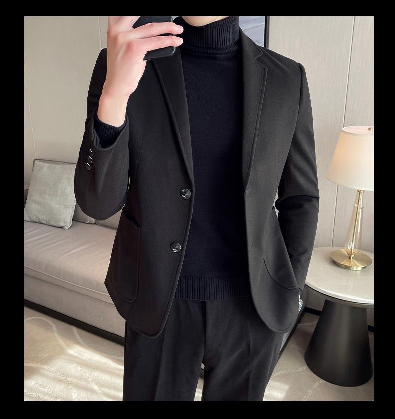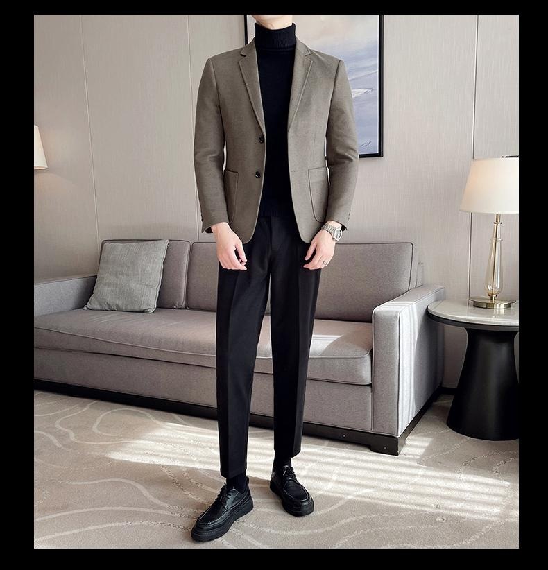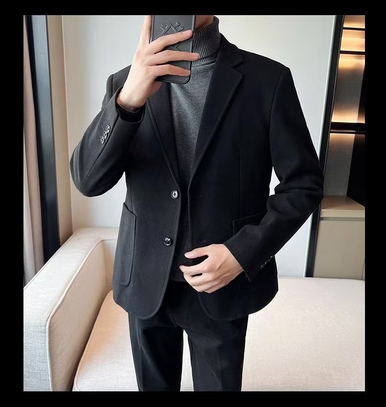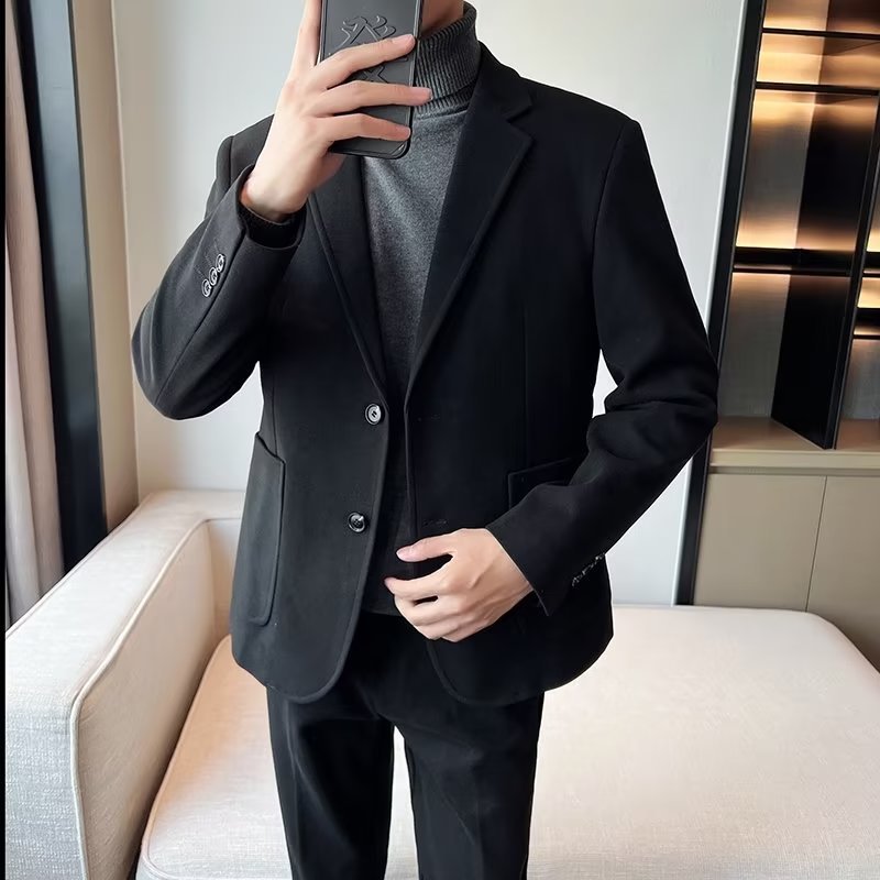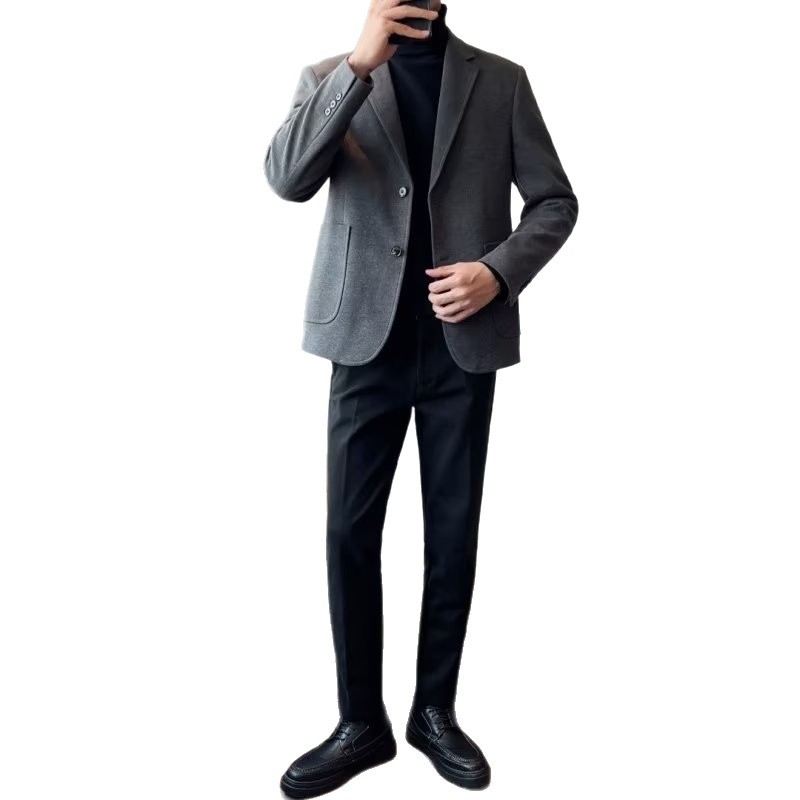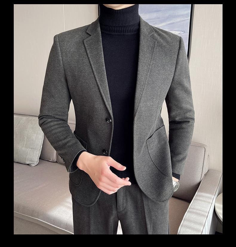 모직 세트 재킷 남자 가을 겨울 하이 엔드 센스 라이트 성숙한 스타일 남자 두꺼운 모직 코트 한국 캐주얼 세트