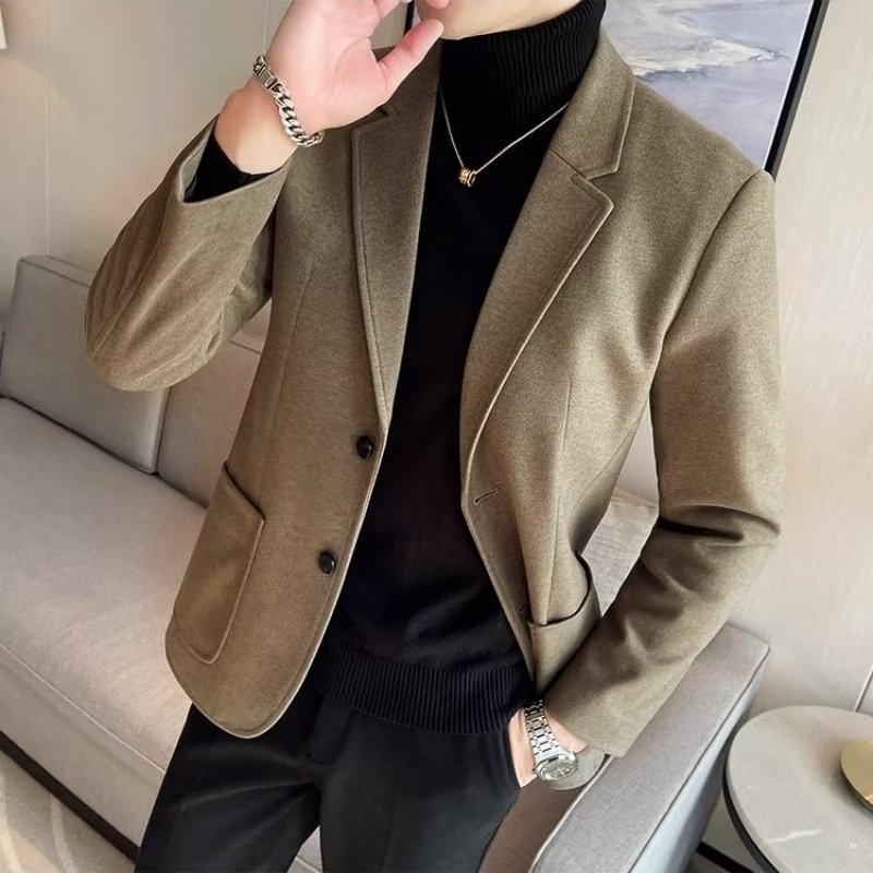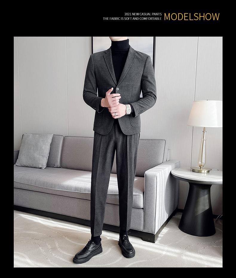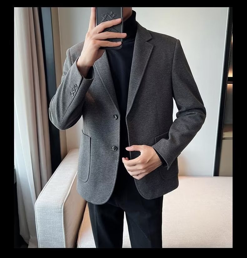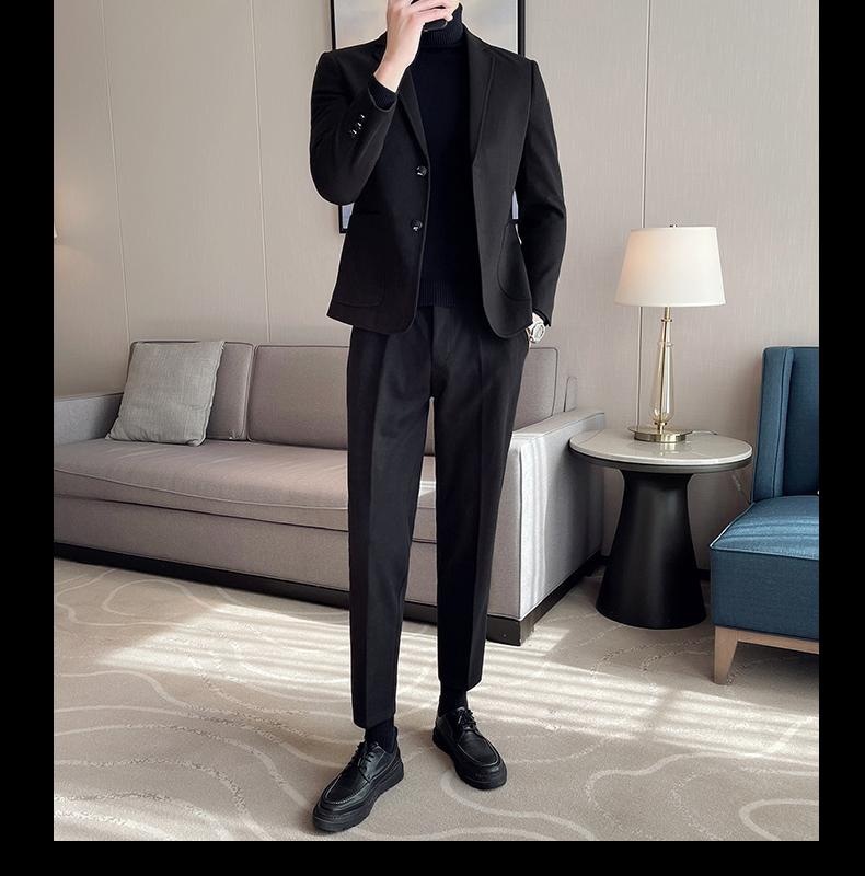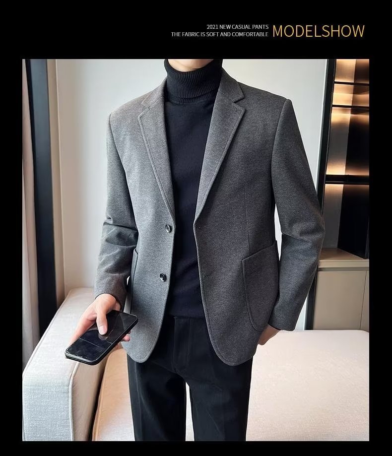 모직 세트 재킷 남자 가을 겨울 하이 엔드 센스 라이트 성숙한 스타일 남자 두꺼운 모직 코트 한국 캐주얼 세트