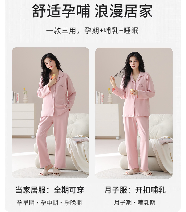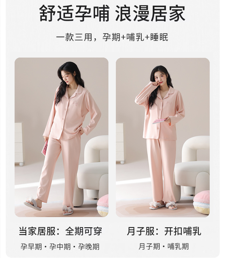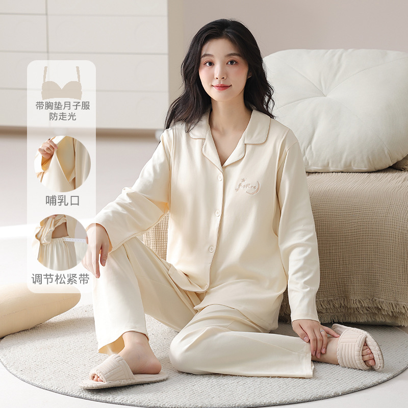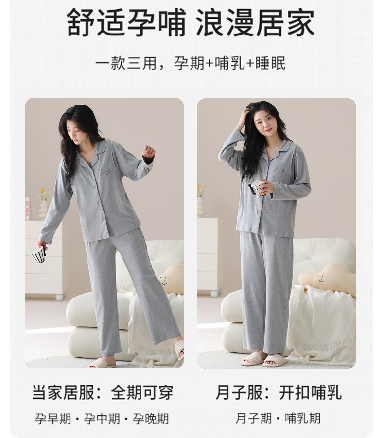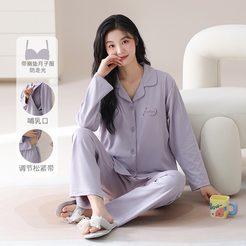 임산부 잠옷 여성의 긴 소매 봄과 가을 임신 순면 세트 산후 모성 간호 홈 옷