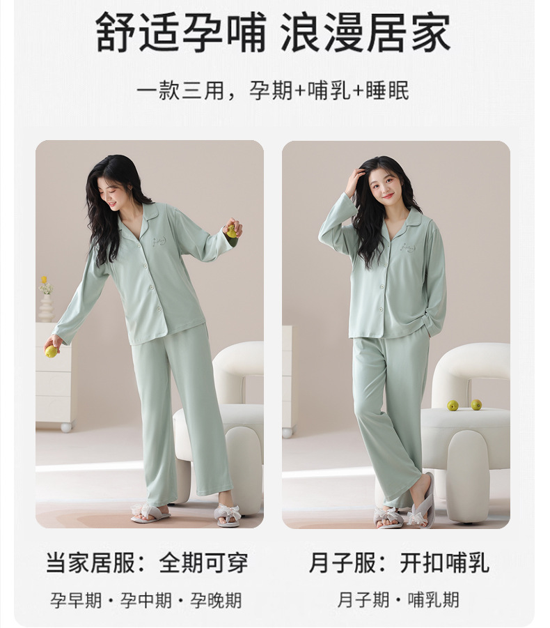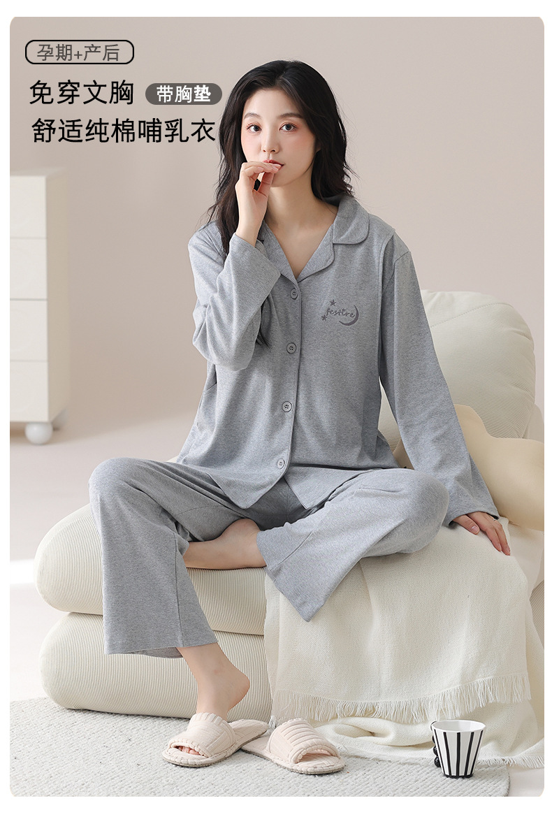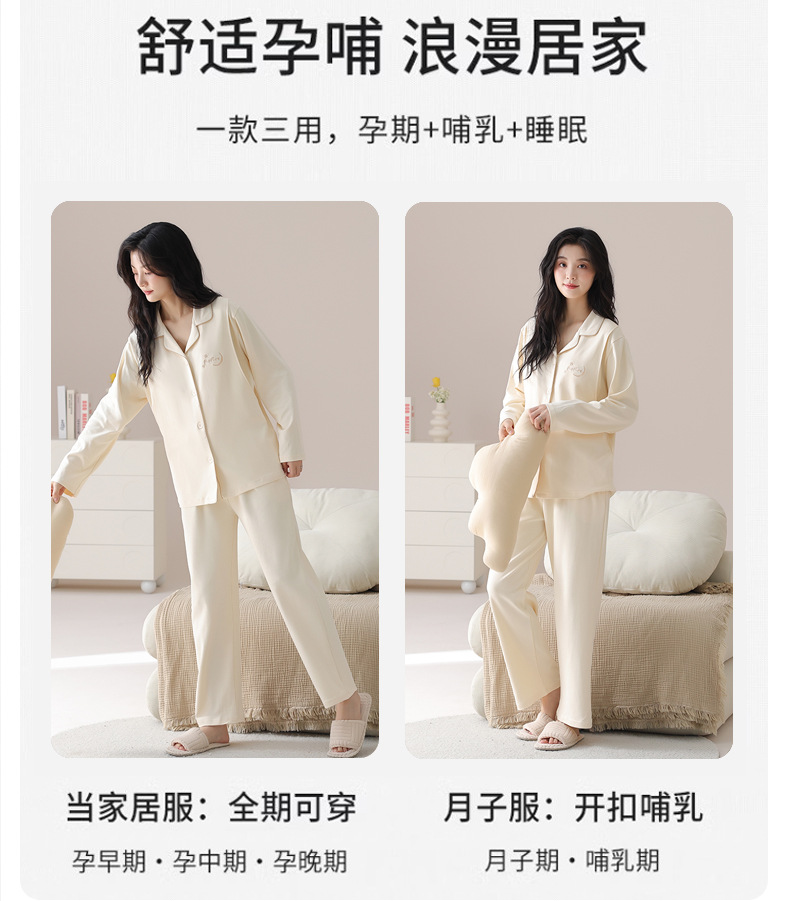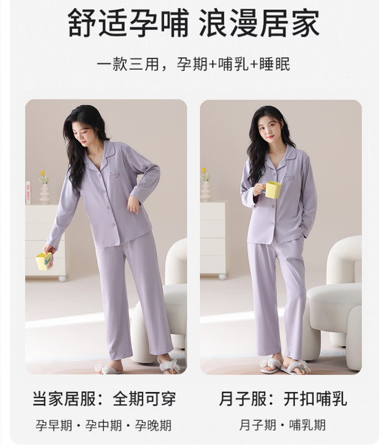 임산부 잠옷 여성의 긴 소매 봄과 가을 임신 순면 세트 산후 모성 간호 홈 옷