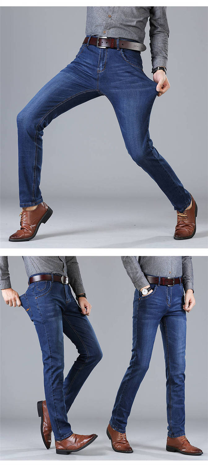 여름 얇은 청바지 남성용 탄성 스트레이트 루즈 캐주얼 바지 남성용 작업 저렴한 남성용 바지