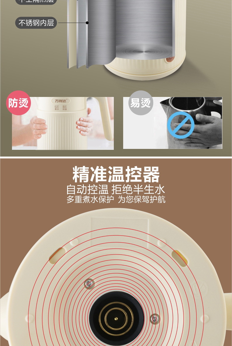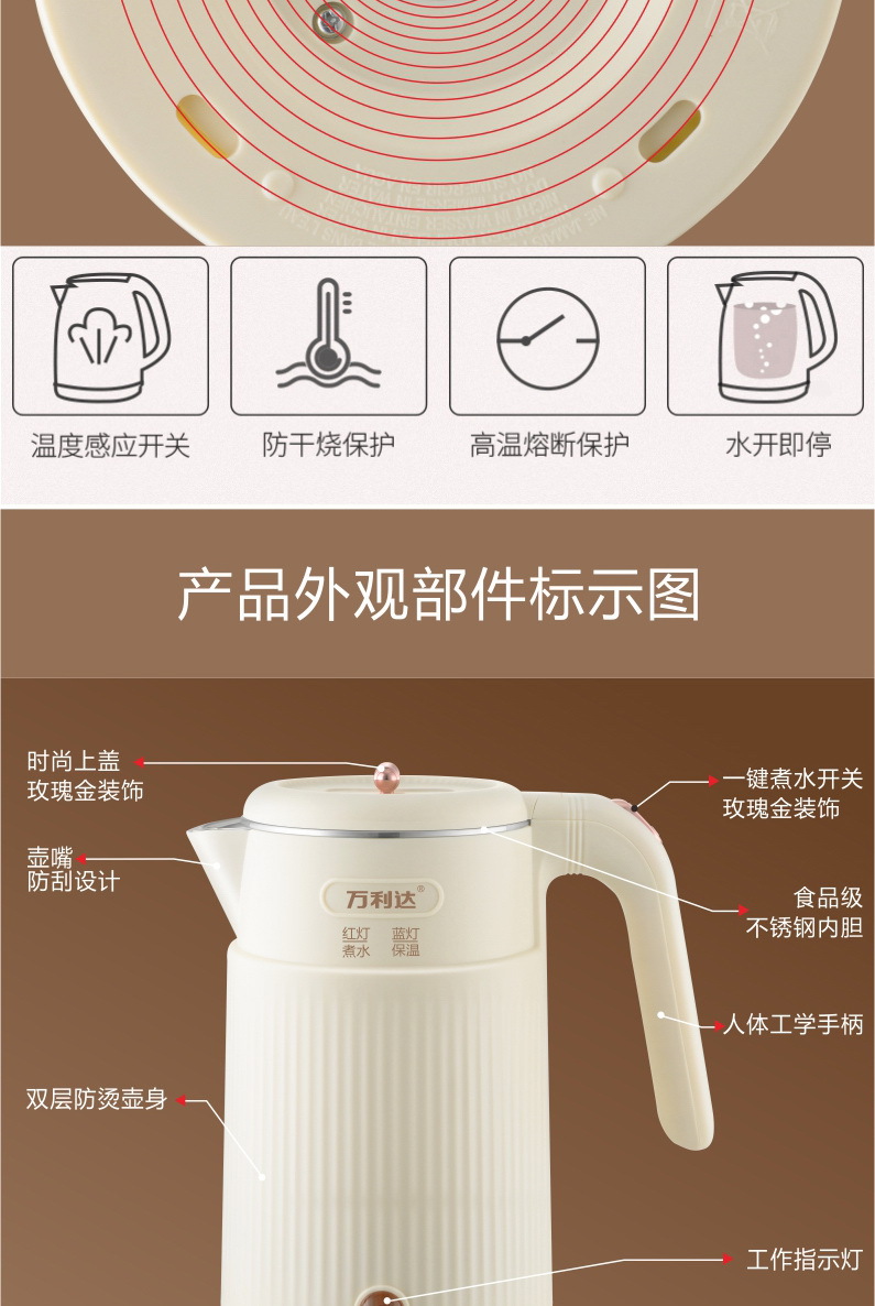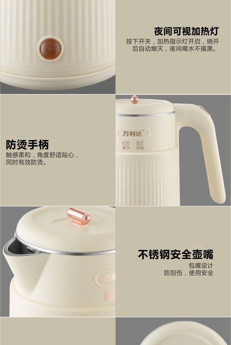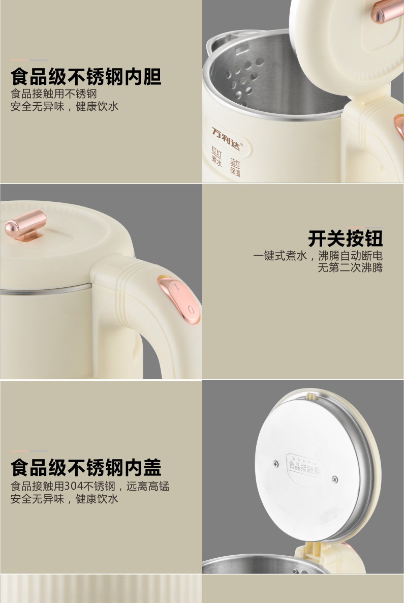 本店电热水壶有小鸭/万利达品牌,同款水壶除品牌不同其质量材质一样,发货时品牌随机发货,介意勿拍!(拍下即为同意品牌随机发货,若要指定品牌请咨询客服)