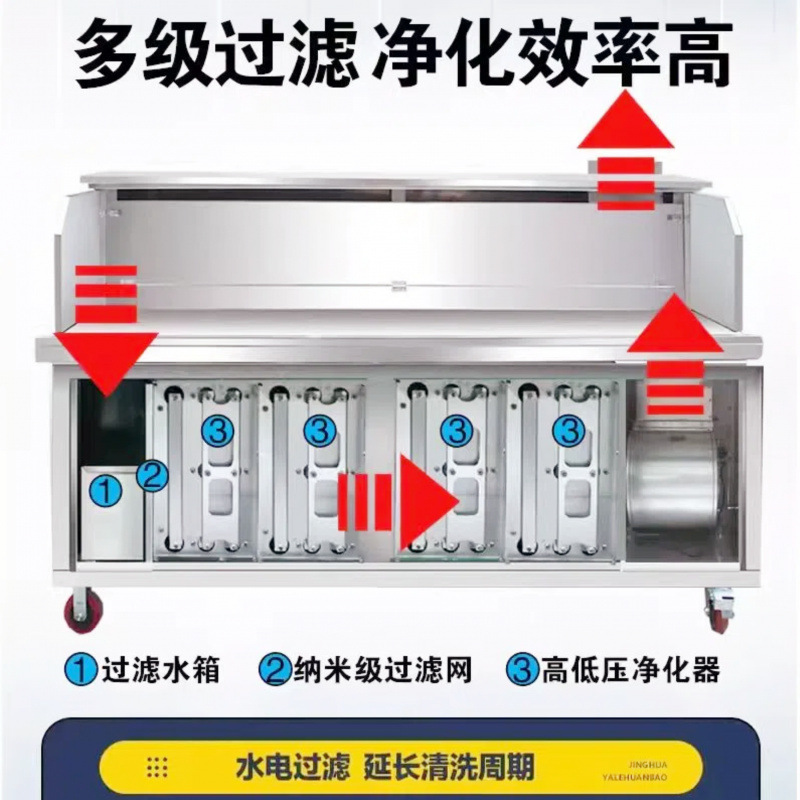 프로페셔널 모델 [정화 100] 2024 환경 인증 - 2.0m 물과 전기 복합 바베큐 카트는 청소가 필요하지 않습니다.