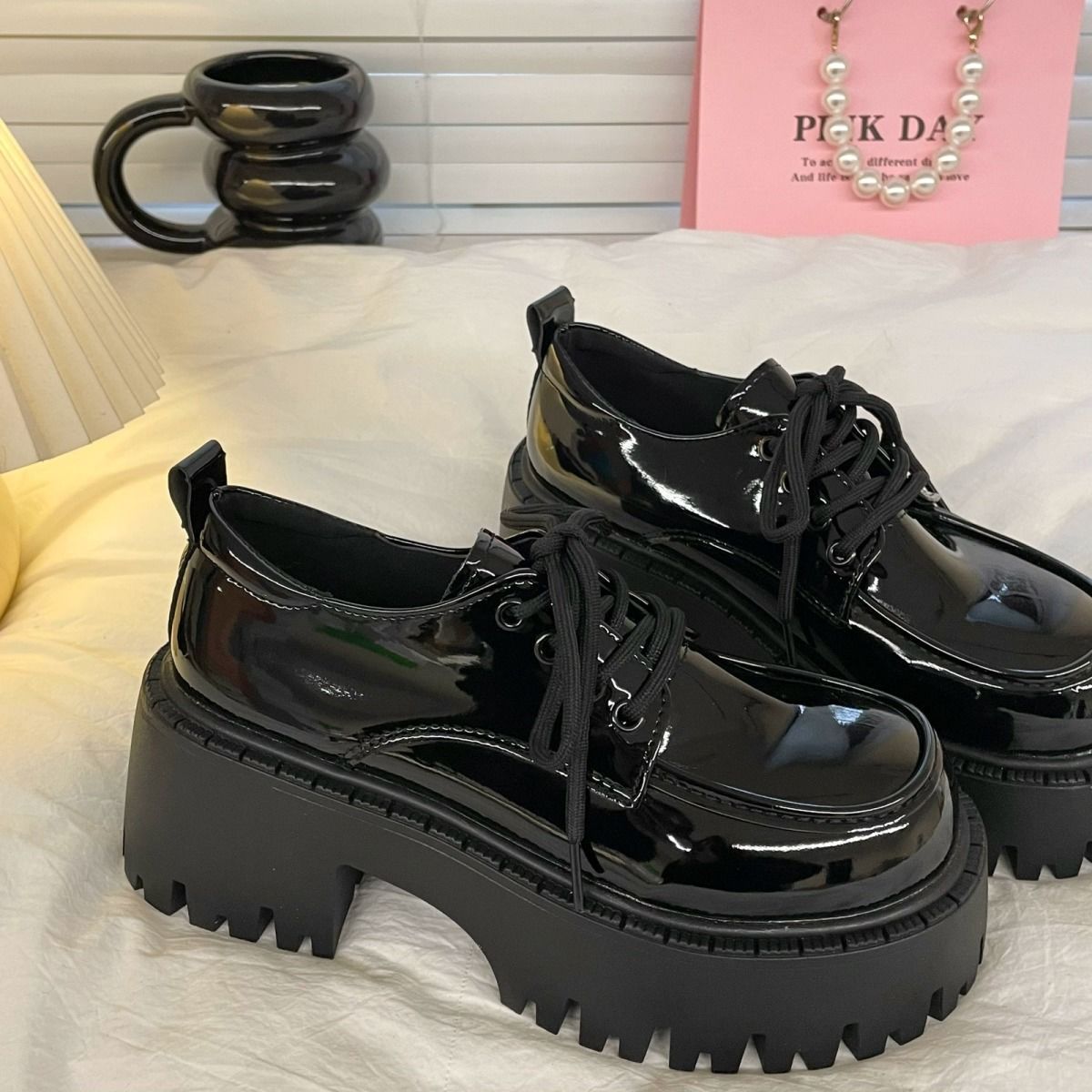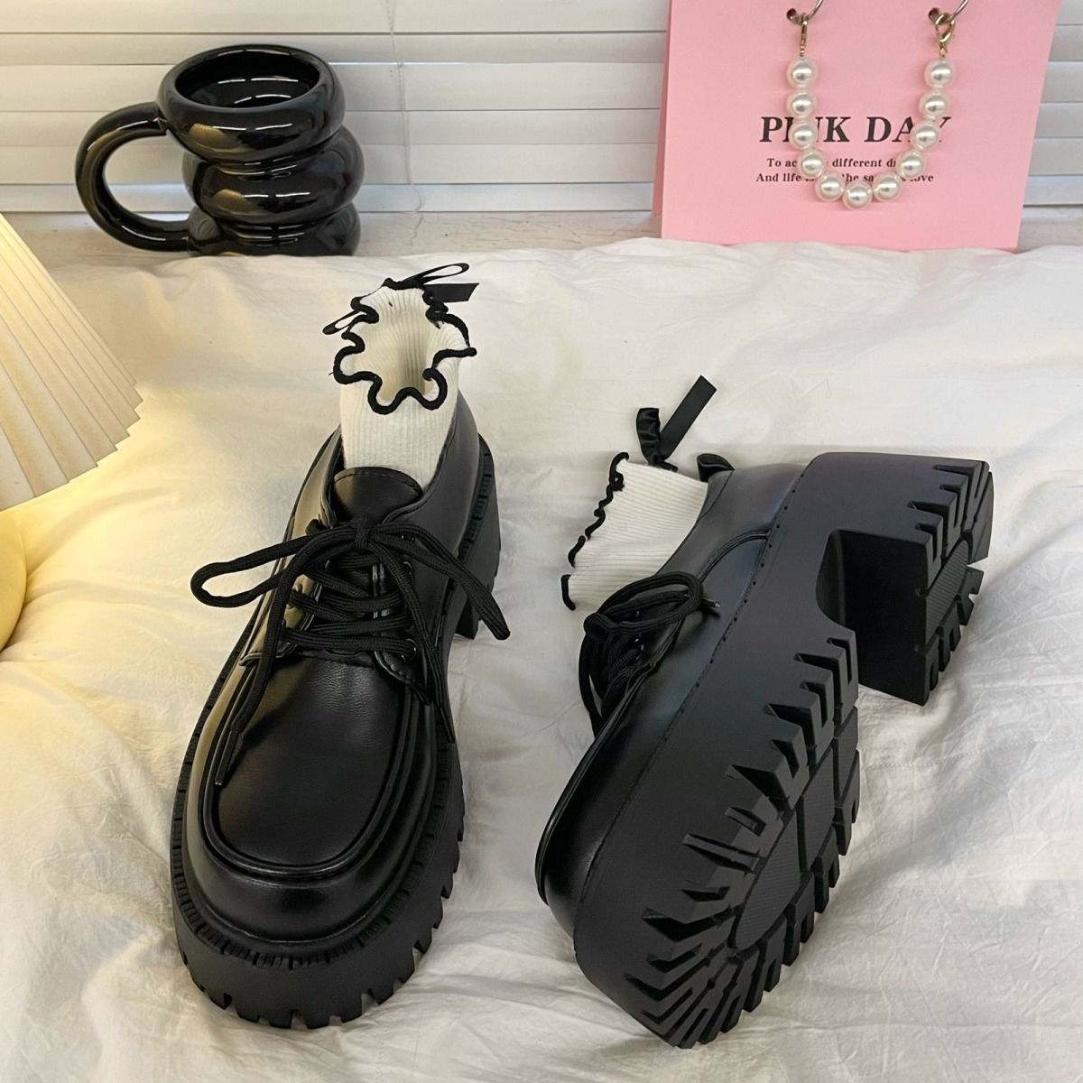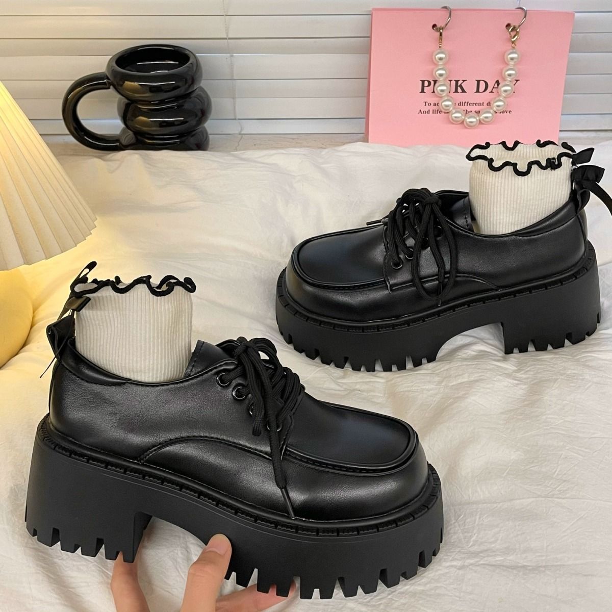 레이스 업 두꺼운 밑창 가죽 신발 2025 새로운 스타일 다목적 복고풍 영국 jk 로프 신발 영국 스타일 작은 가죽 신발