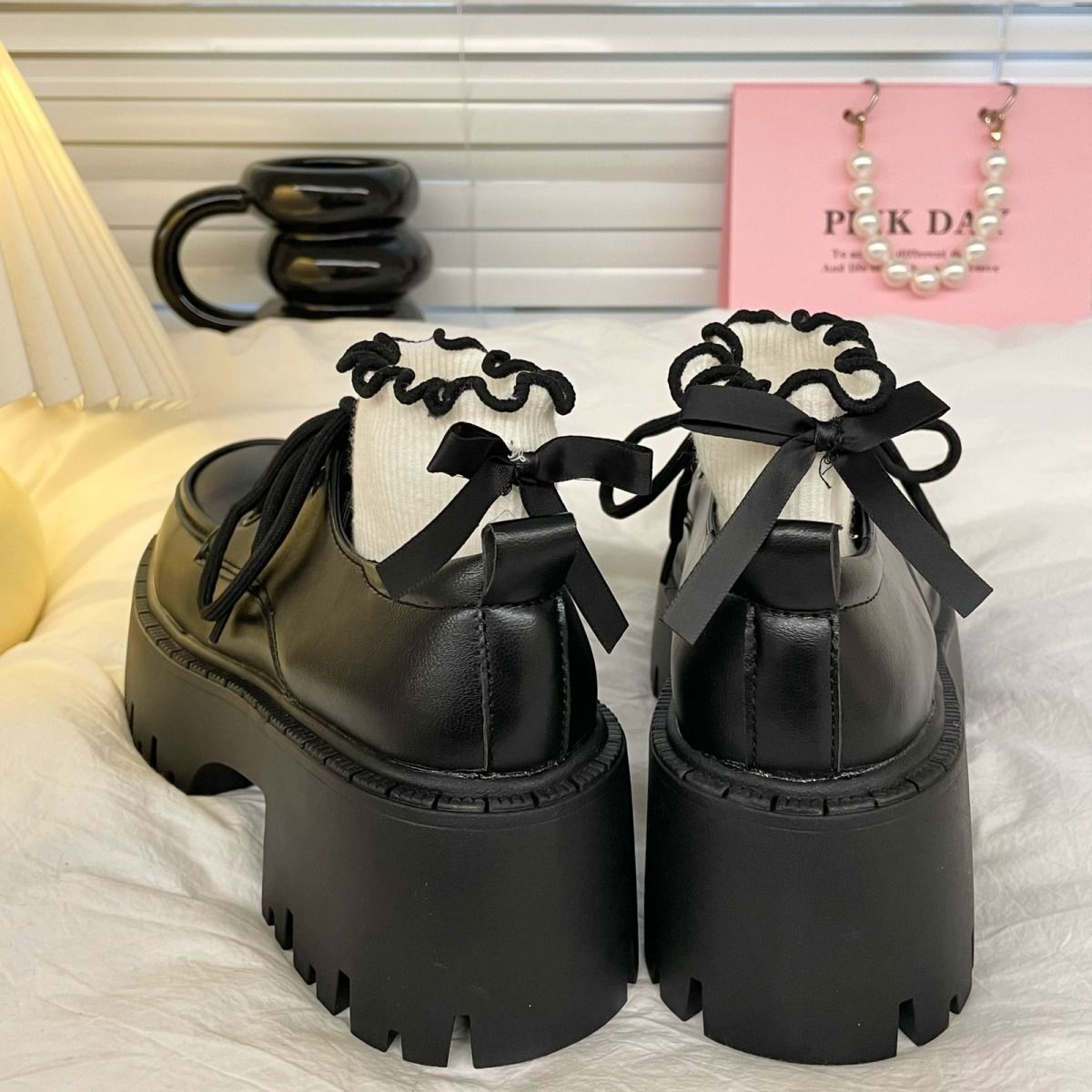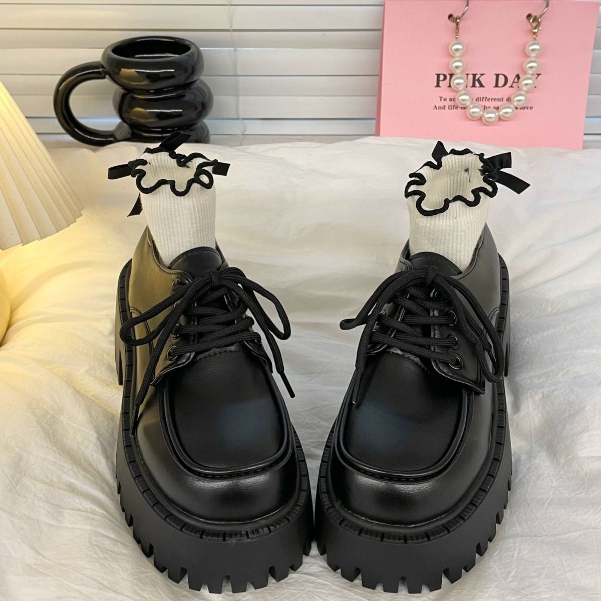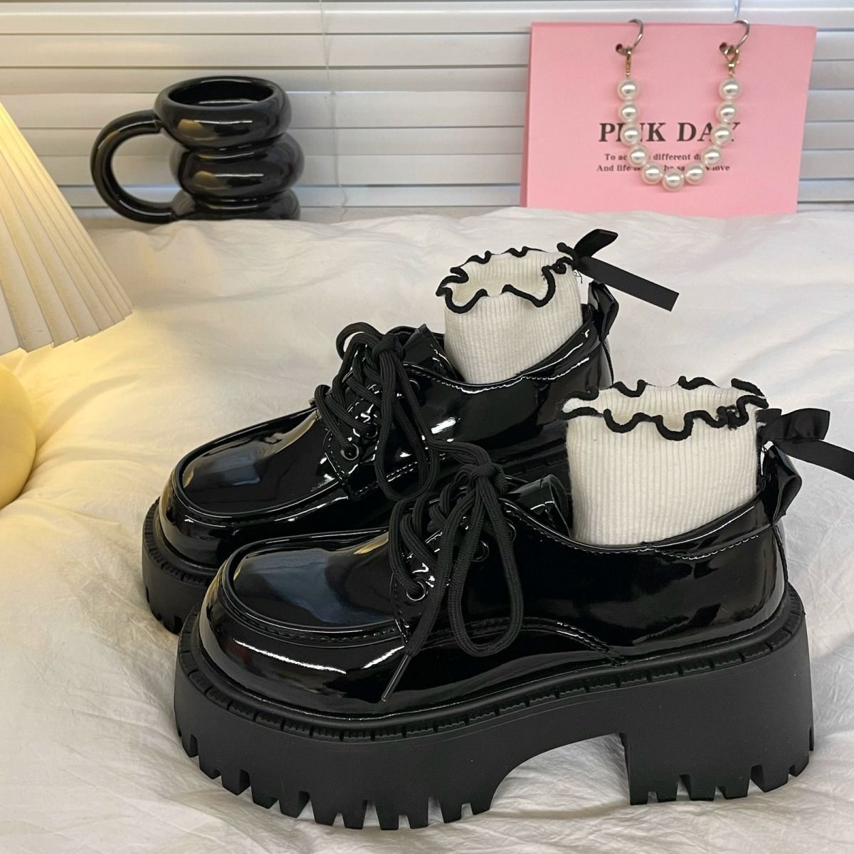 레이스 업 두꺼운 밑창 가죽 신발 2025 새로운 스타일 다목적 복고풍 영국 jk 로프 신발 영국 스타일 작은 가죽 신발