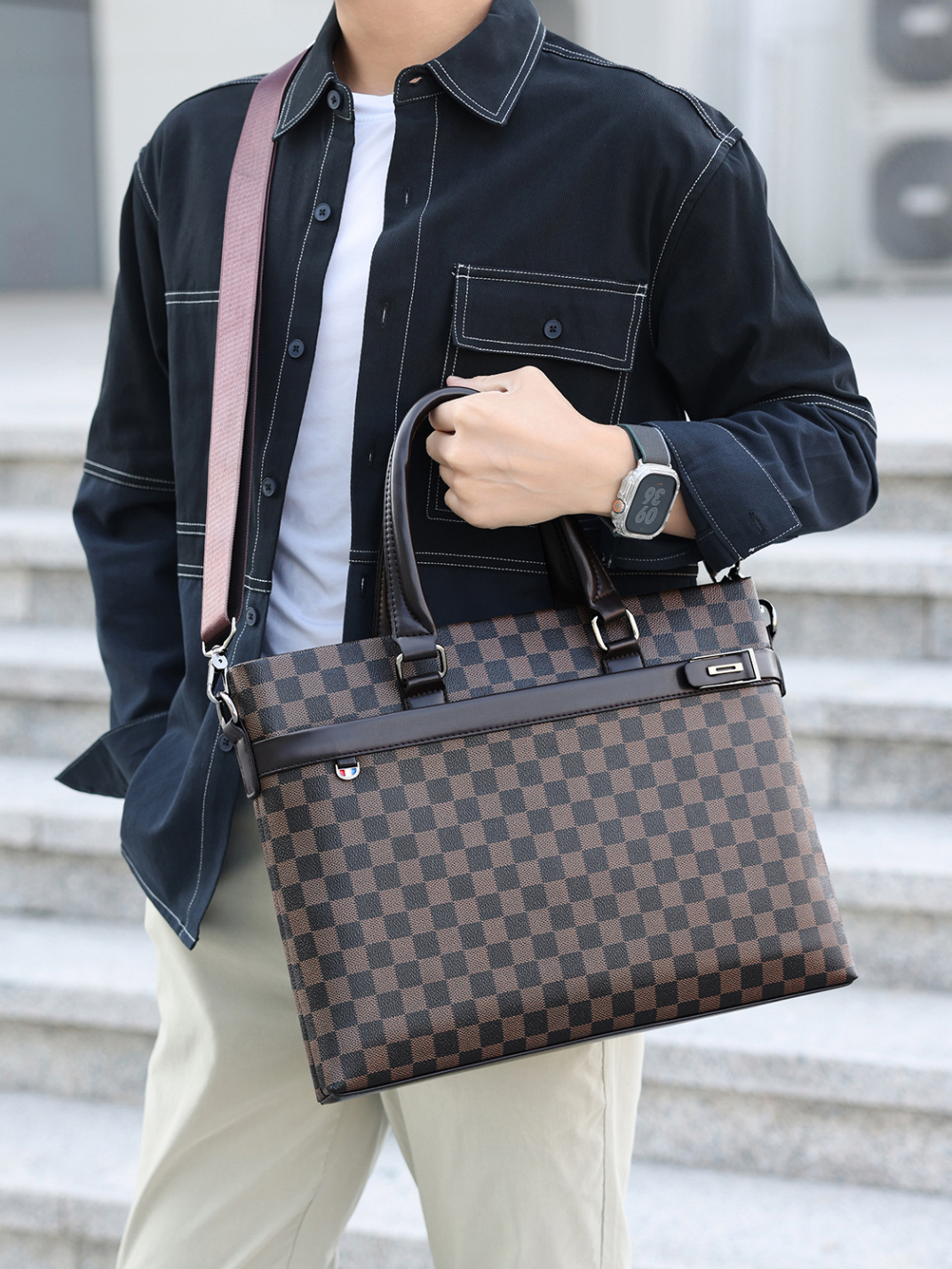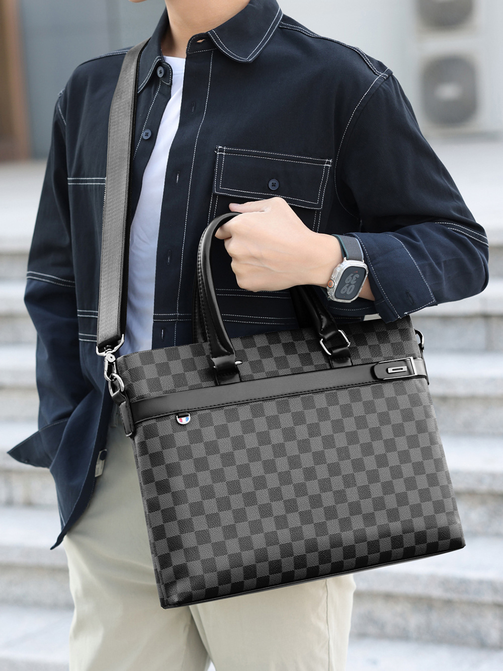국경 간 격자 무늬 남성 서류 가방 유행 대용량 비즈니스 노트북 가방 단일 어깨 크로스 바디 가방 남성 파일 가방