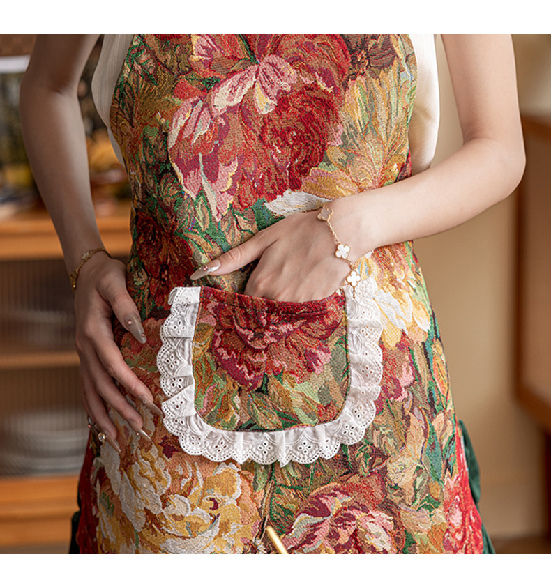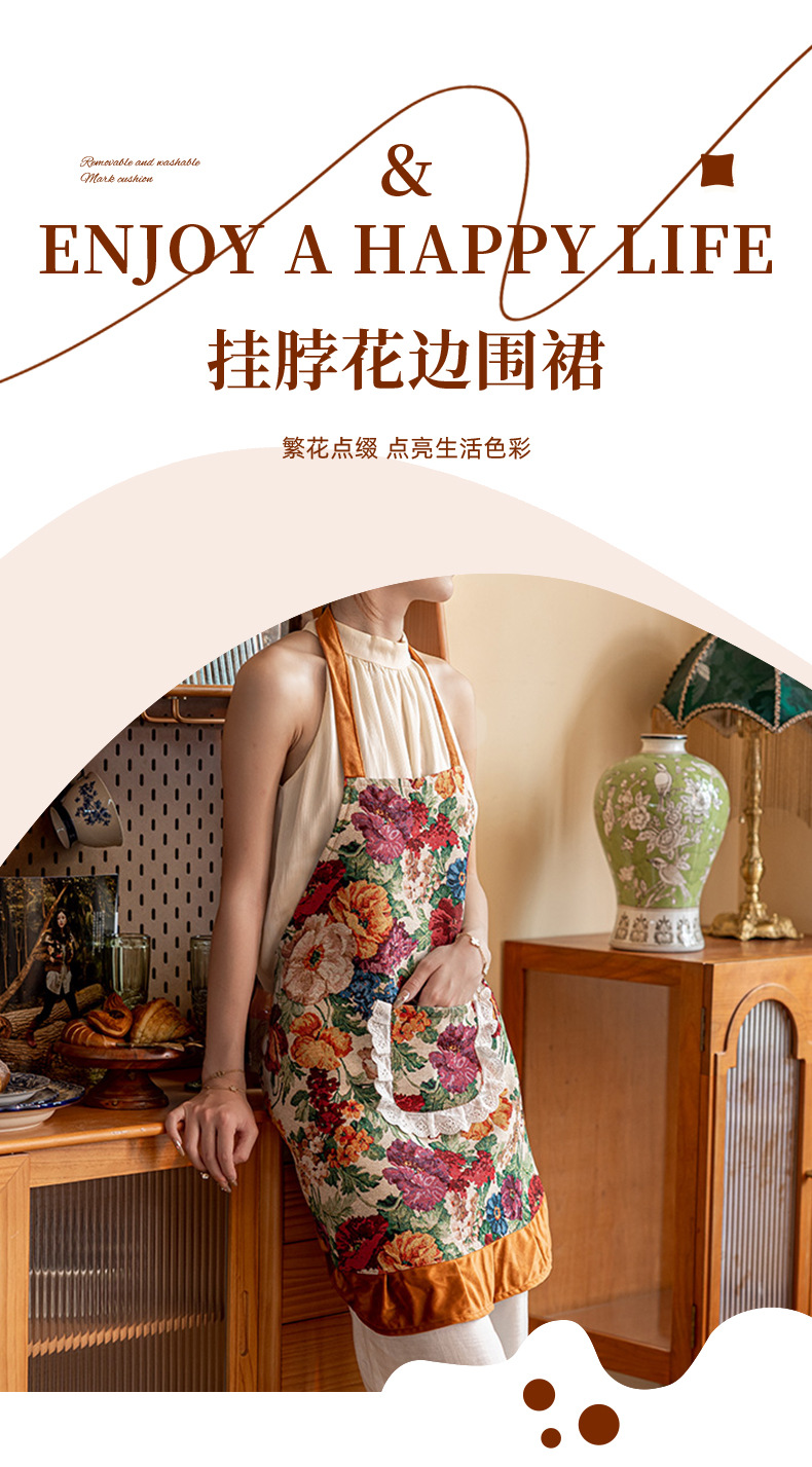 여성용 홀터넥 레이스 앞치마, 복고풍 주방 가정용 고가 서스펜더 앞치마, 작업복, 얼룩 방지 커버, 베이킹 스커트