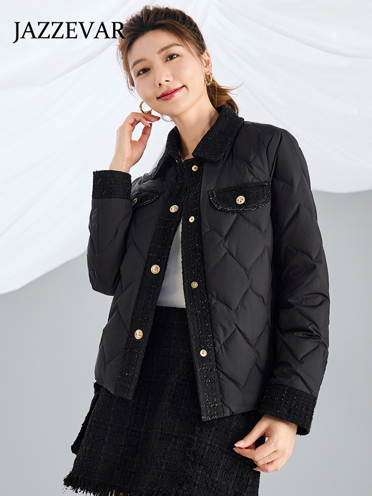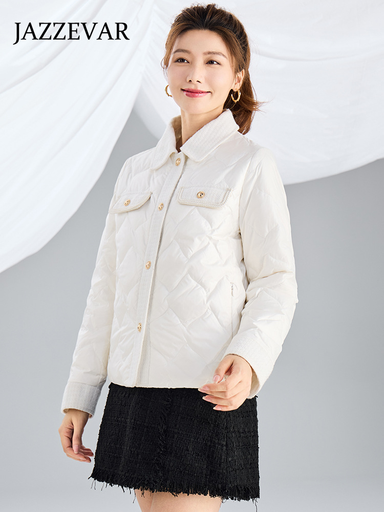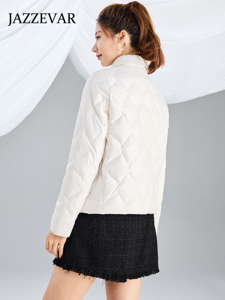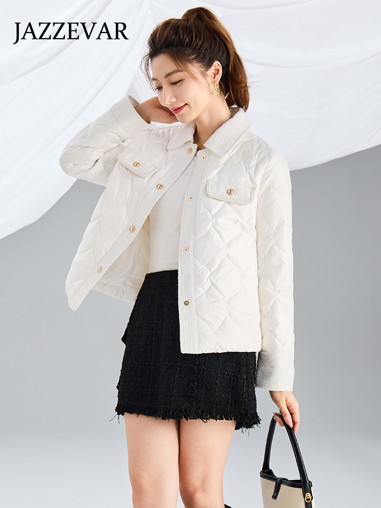 Jia Zehua 2024 프렌치 엘레강스 스타일 다운 재킷, 따뜻한 퀼팅 화이트 덕다운 코튼 재킷, 여성용, 재고 있음