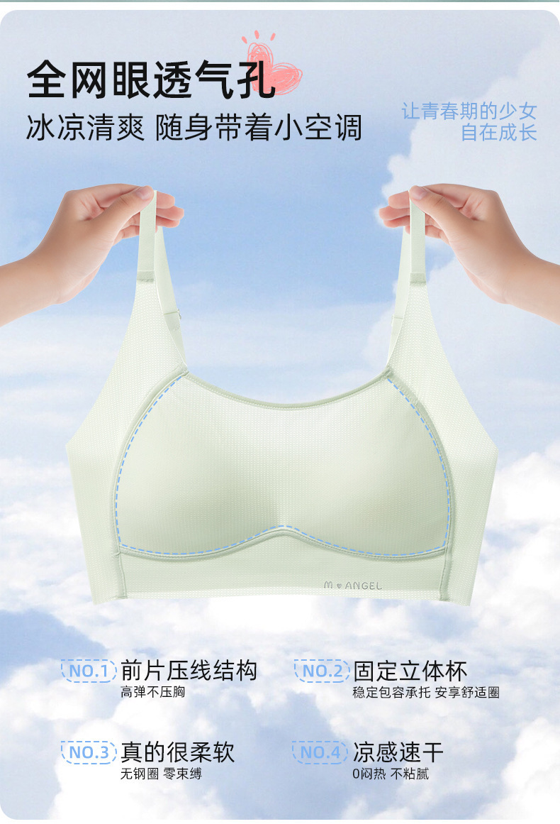 Anfeiya, 속옷 사춘기 소녀 초등 및 중등 학생 스포츠 충격 방지 조끼 소녀 원활한 브래지어