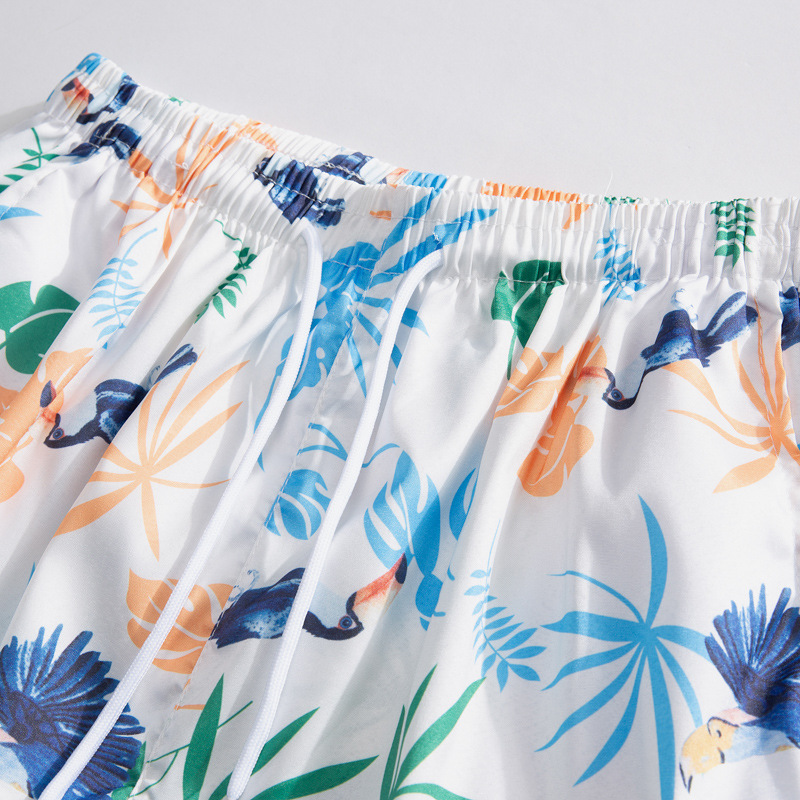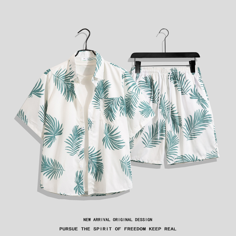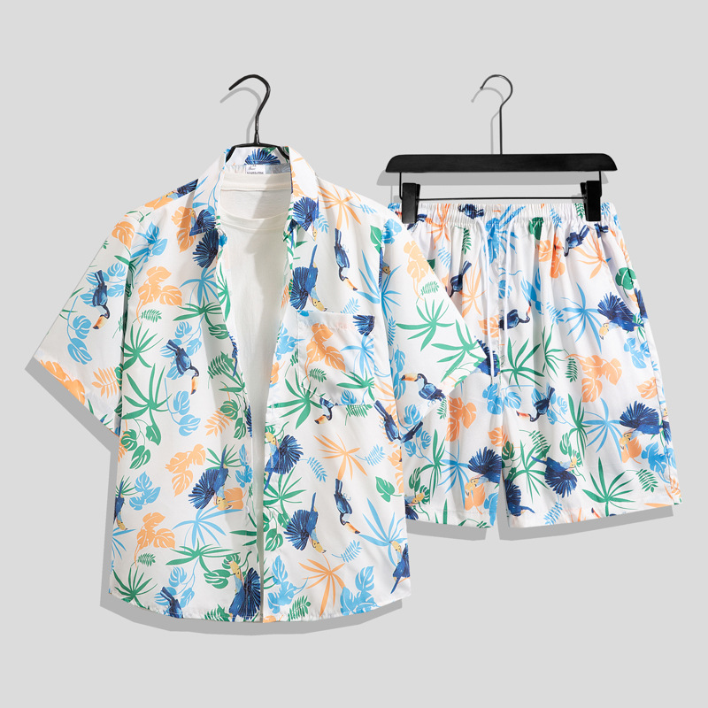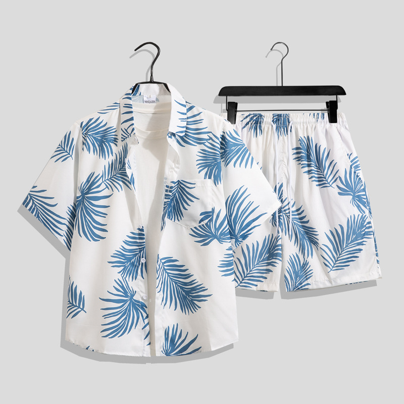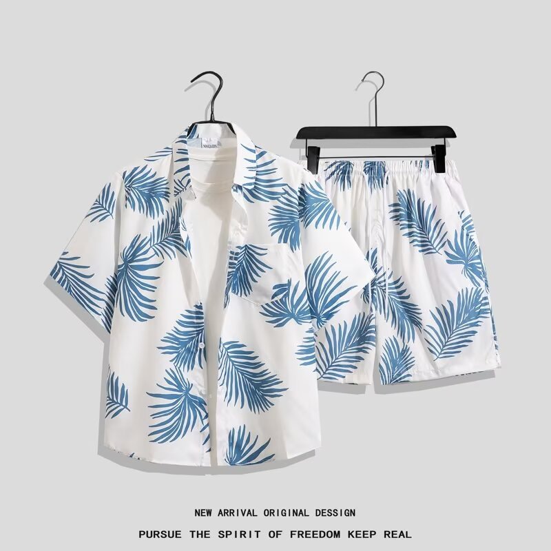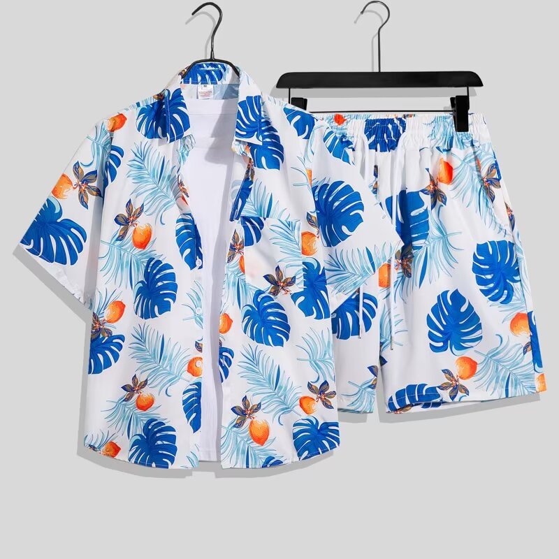 아이스 실크 비치 세트 남자 반팔 플로라 셔츠 플러스 사이즈 느슨한 하와이 빠른 건조 캐주얼 반바지 커플 세트