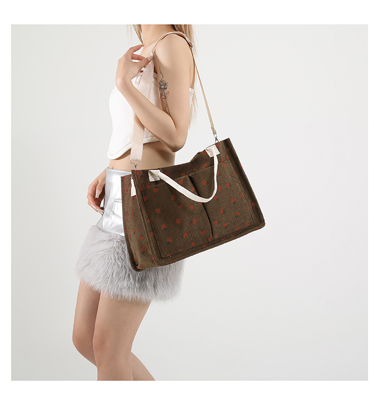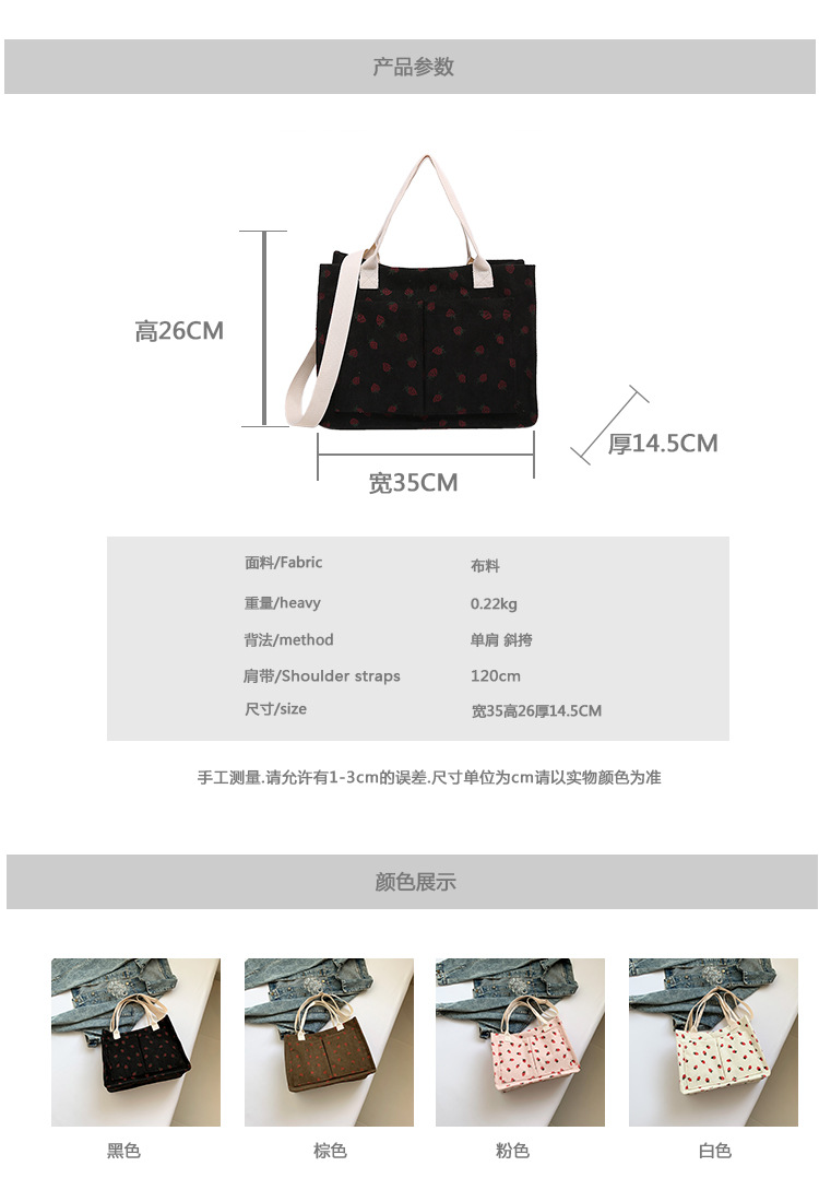 가을과 겨울 새로운 대용량 캔버스 가방 여성 어깨 손 토트 백 학생 클래스 통근 크로스 바디 토트 백