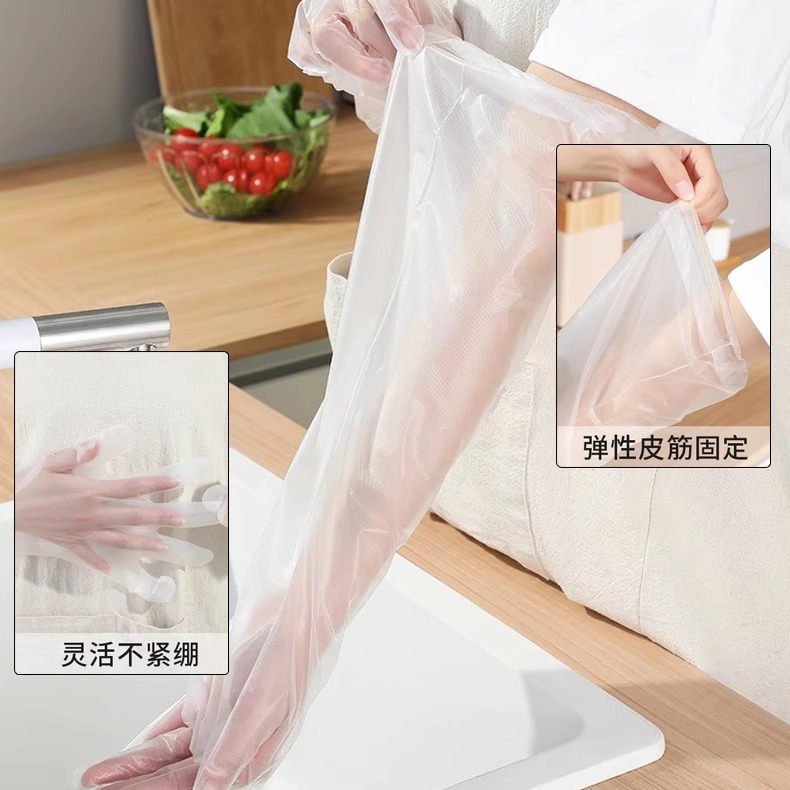 일회용 cpe 긴 팔 장갑 가정용 주방 식기 세척 세탁 청소 두껍게 길어진 탄성 거들 방수 오일