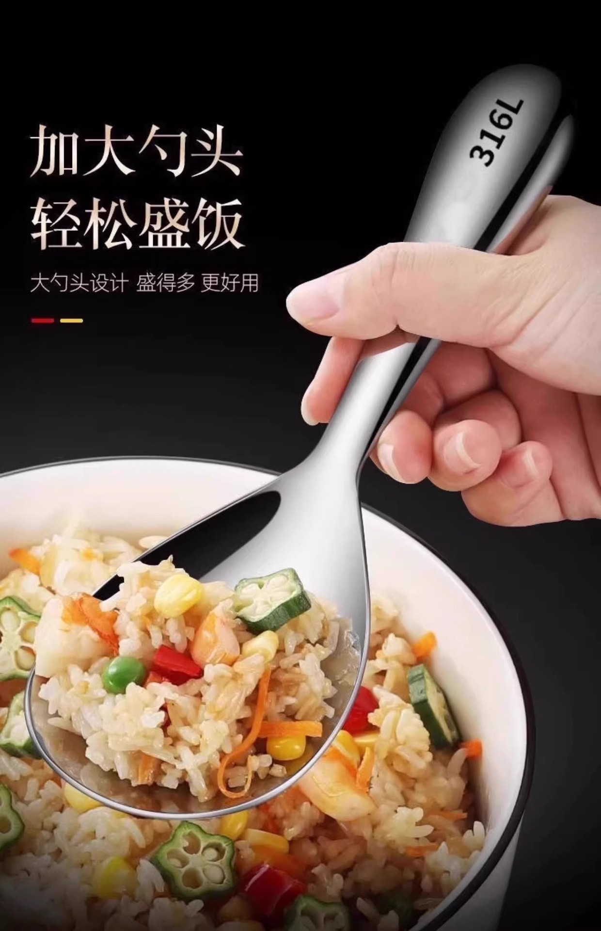 새로운 스테인레스 스틸 식품 등급 쌀 스푼 주방 두꺼운 긴 손잡이 수프 스푼 가정용 밥솥 쌀 스푼 스푼