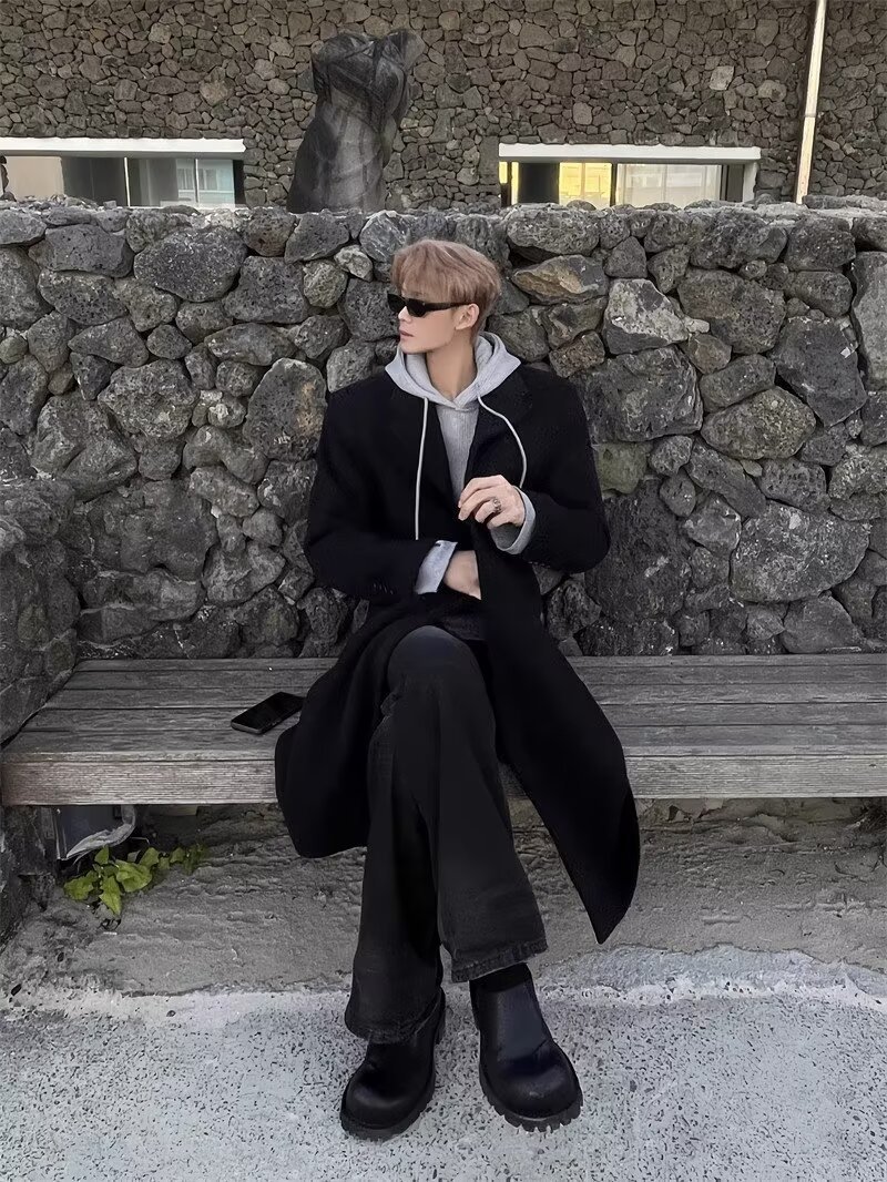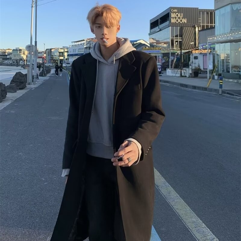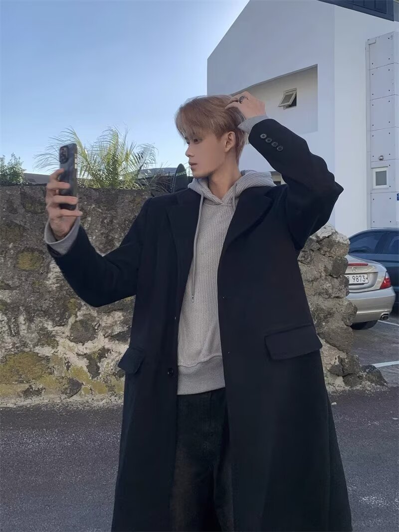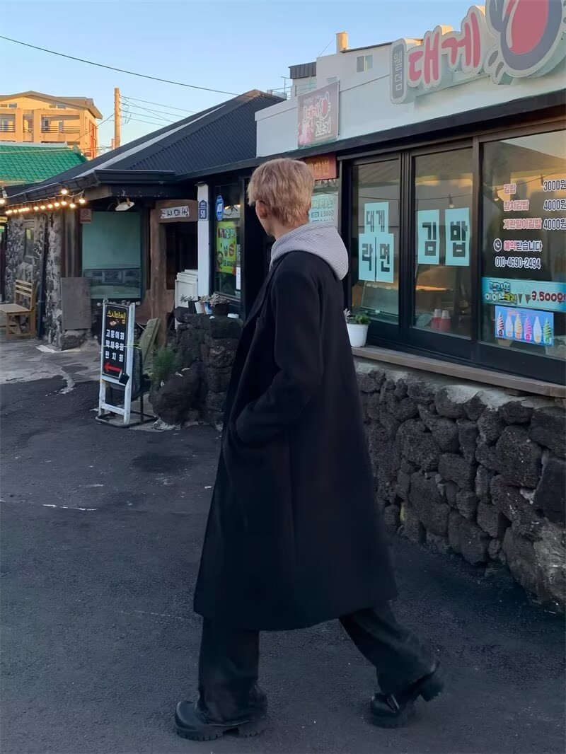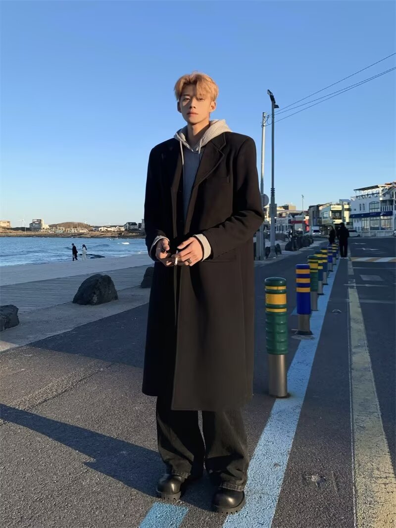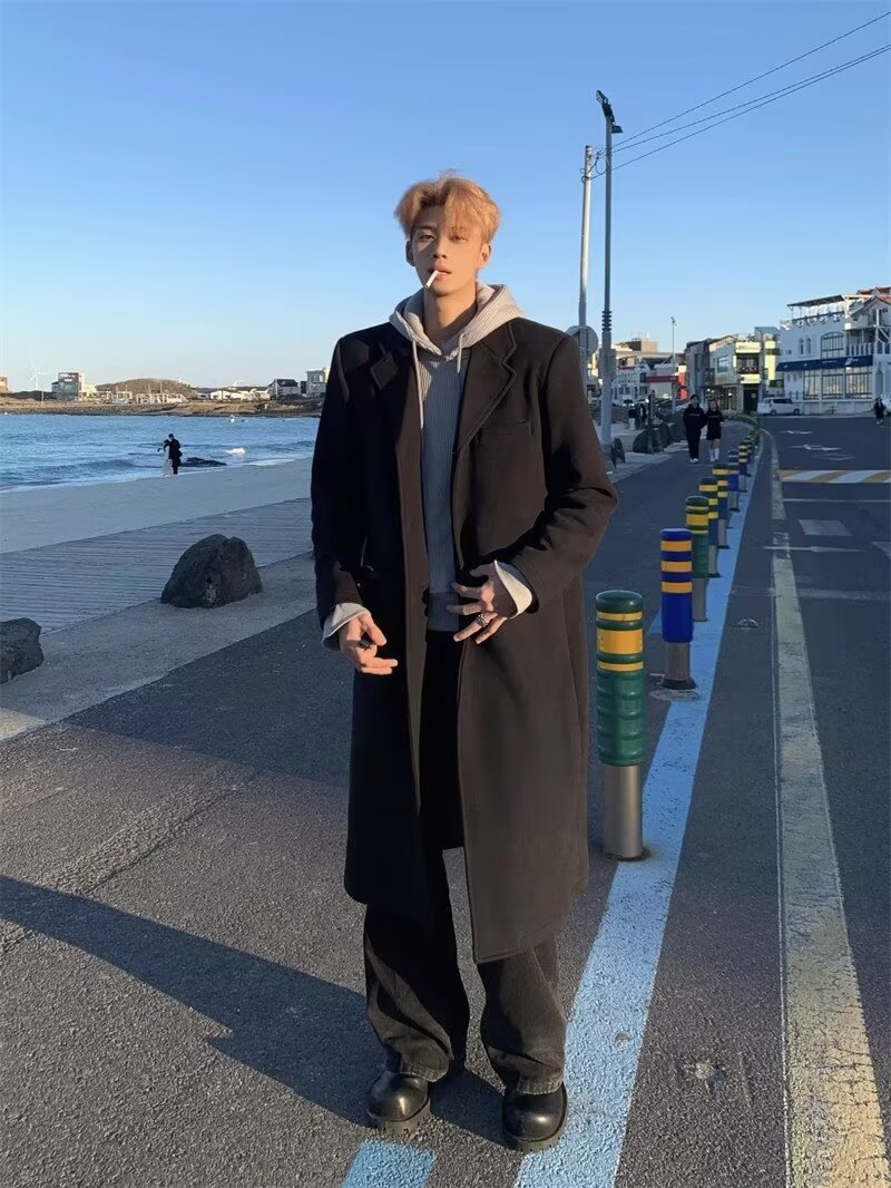 중간 길이의 모직 코트 남자 가을과 겨울 러시아 체스터 모직 코트 2024 새로운 블랙 빈티지 코트