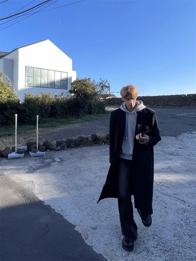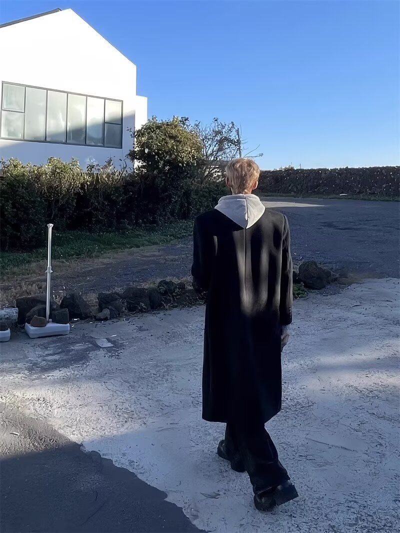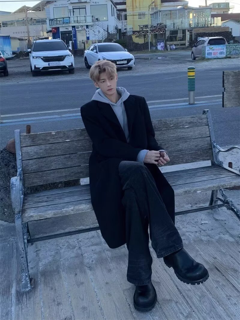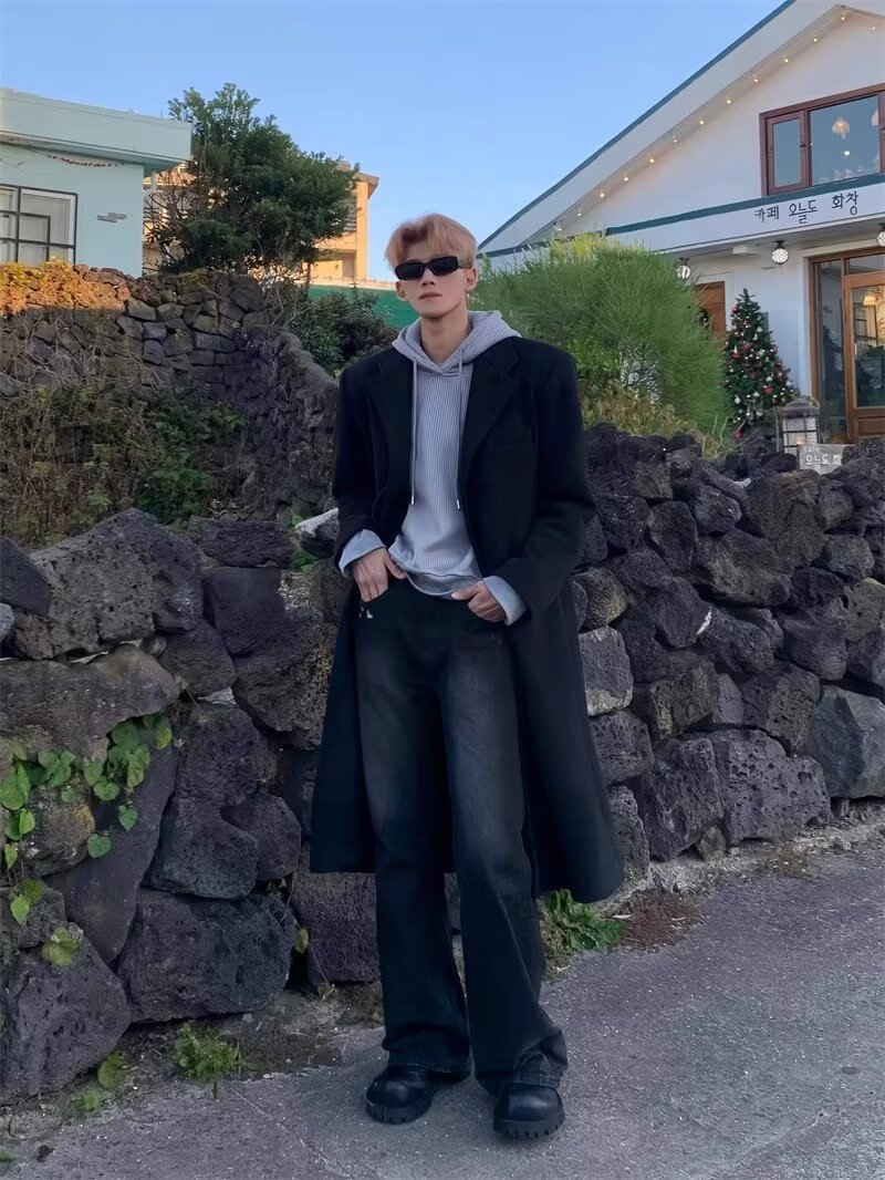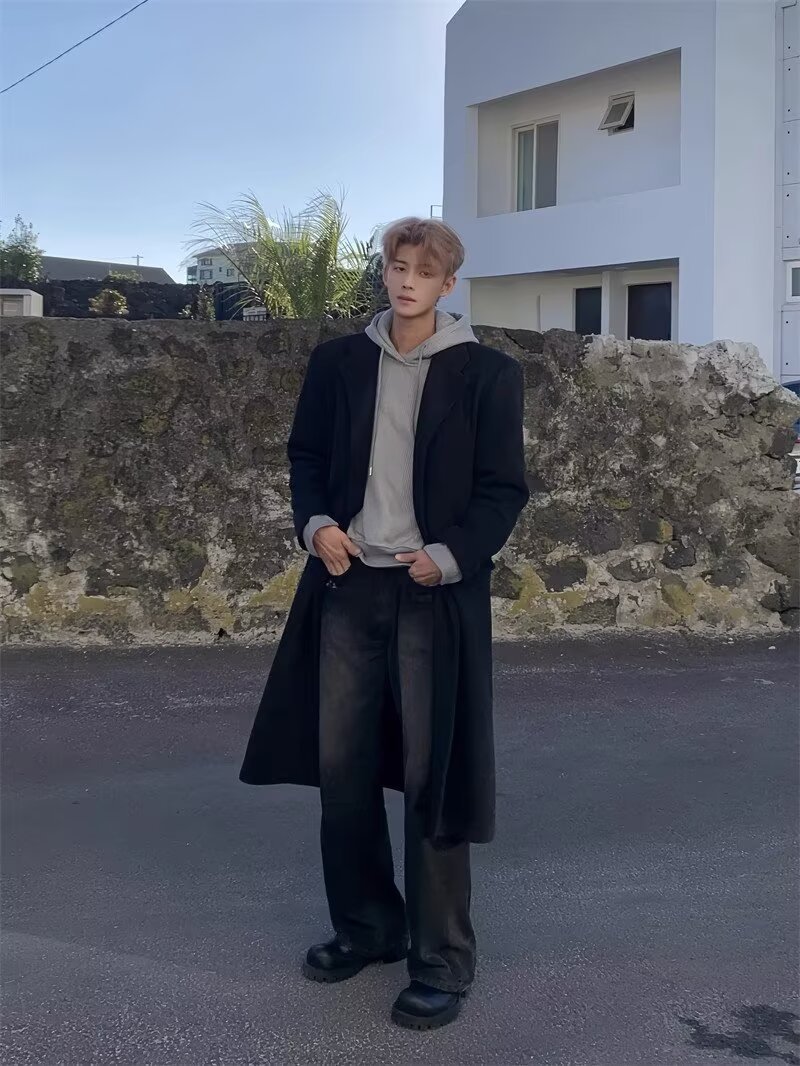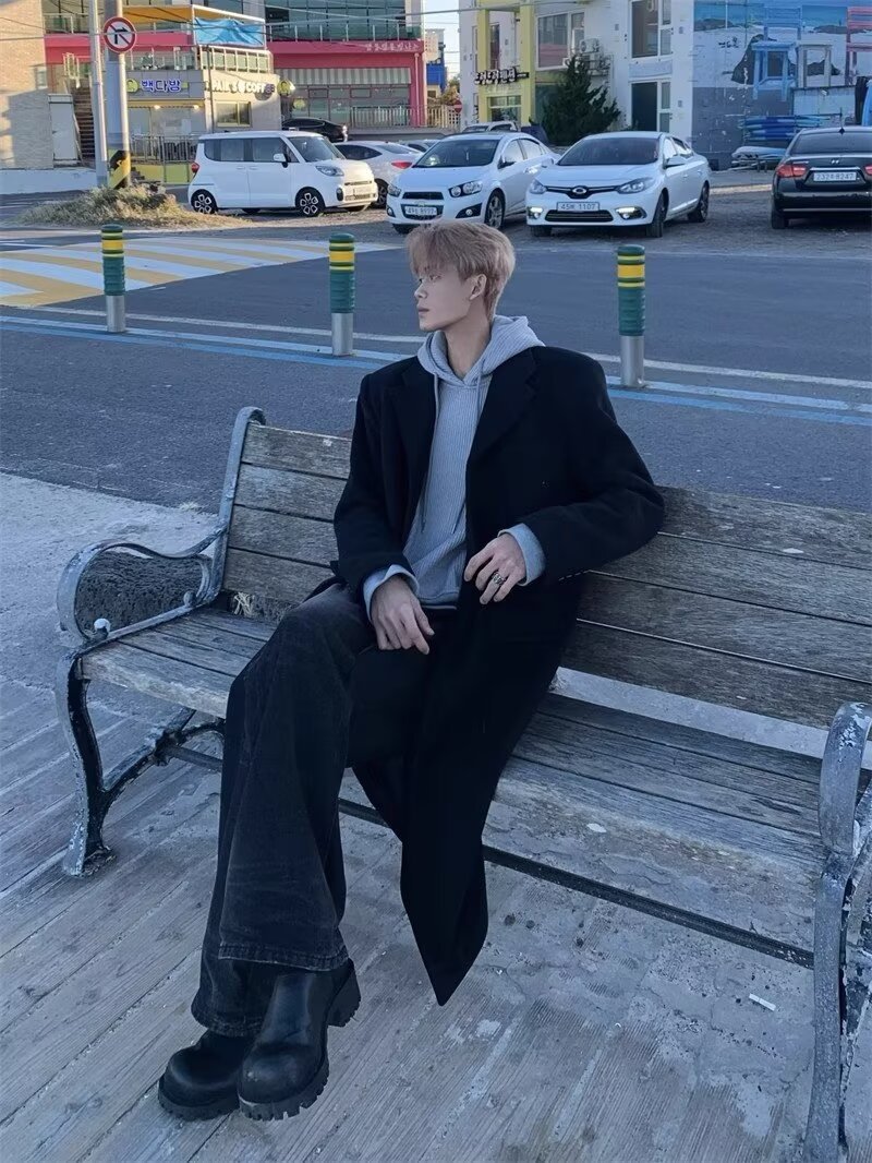 중간 길이의 모직 코트 남자 가을과 겨울 러시아 체스터 모직 코트 2024 새로운 블랙 빈티지 코트