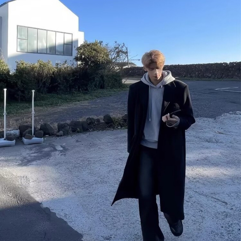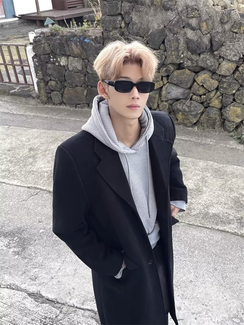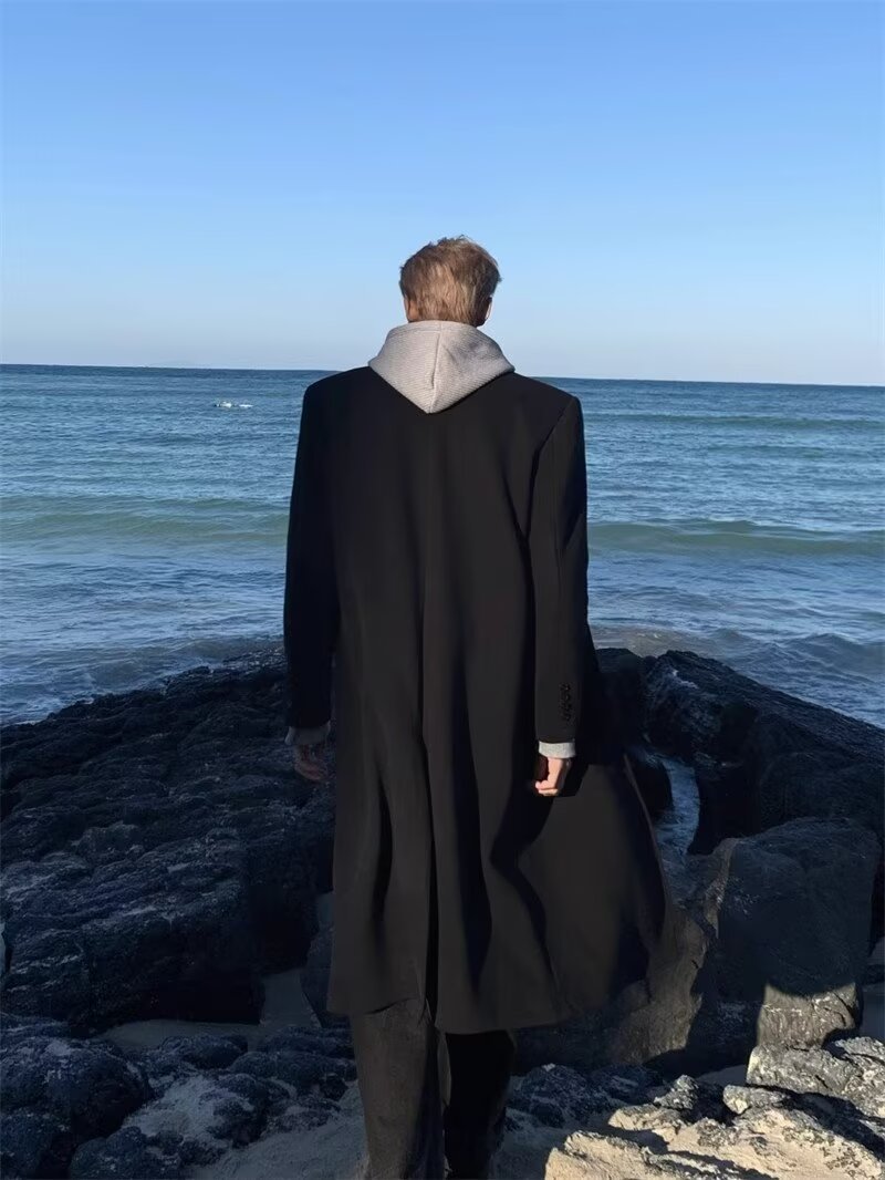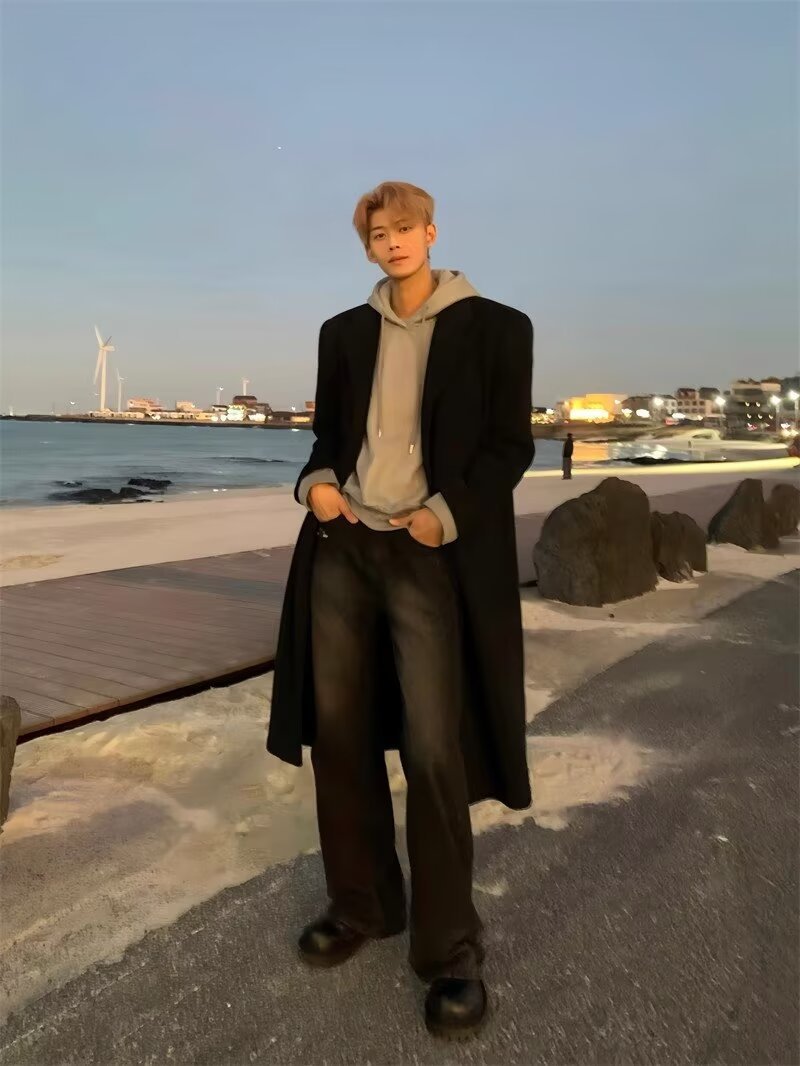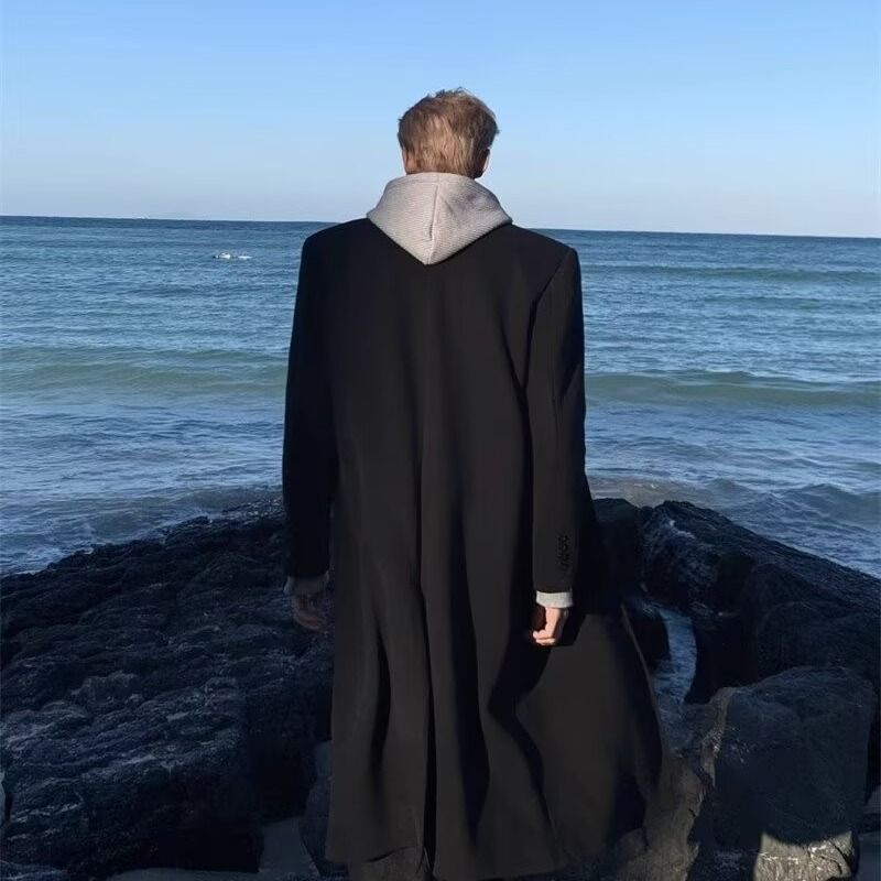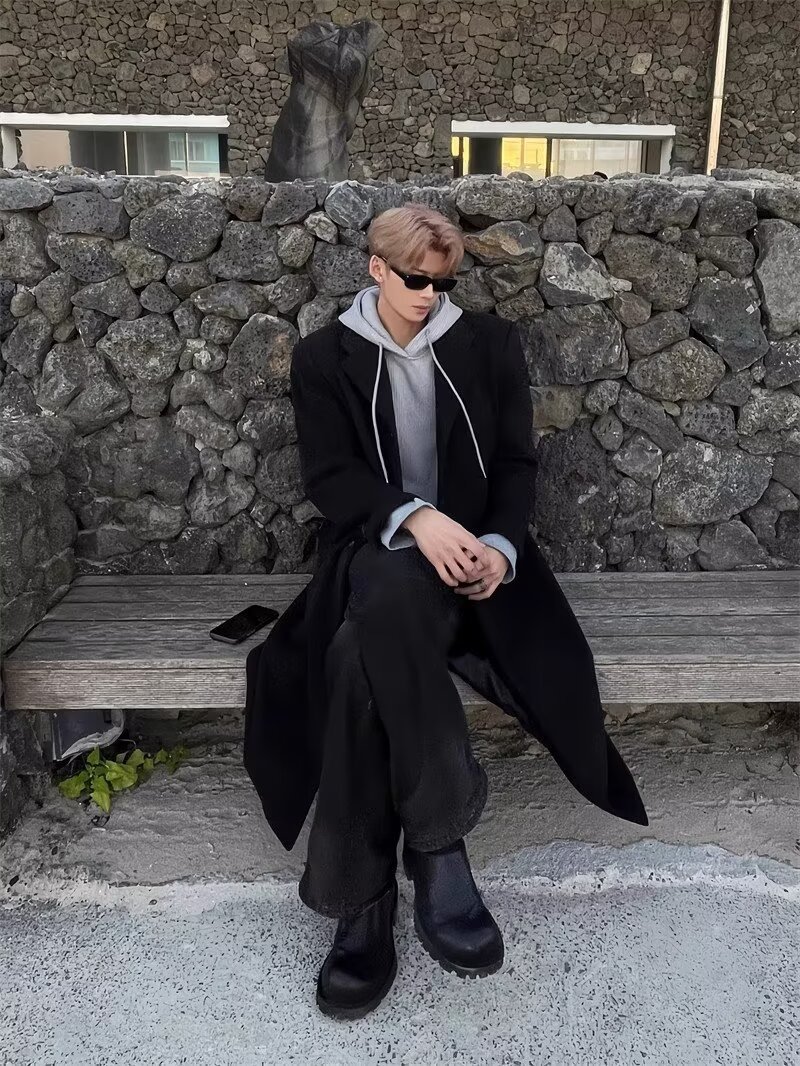 중간 길이의 모직 코트 남자 가을과 겨울 러시아 체스터 모직 코트 2024 새로운 블랙 빈티지 코트