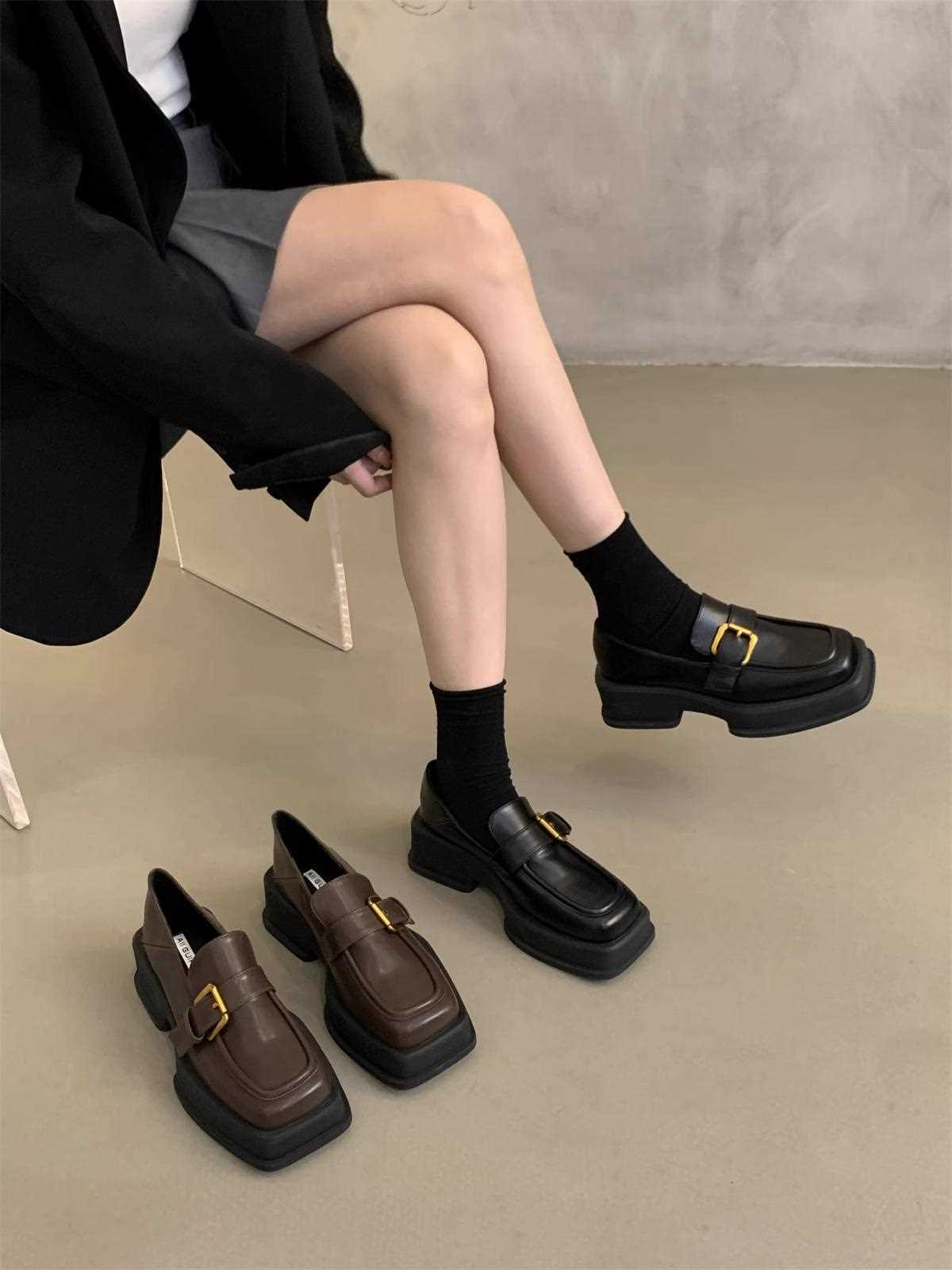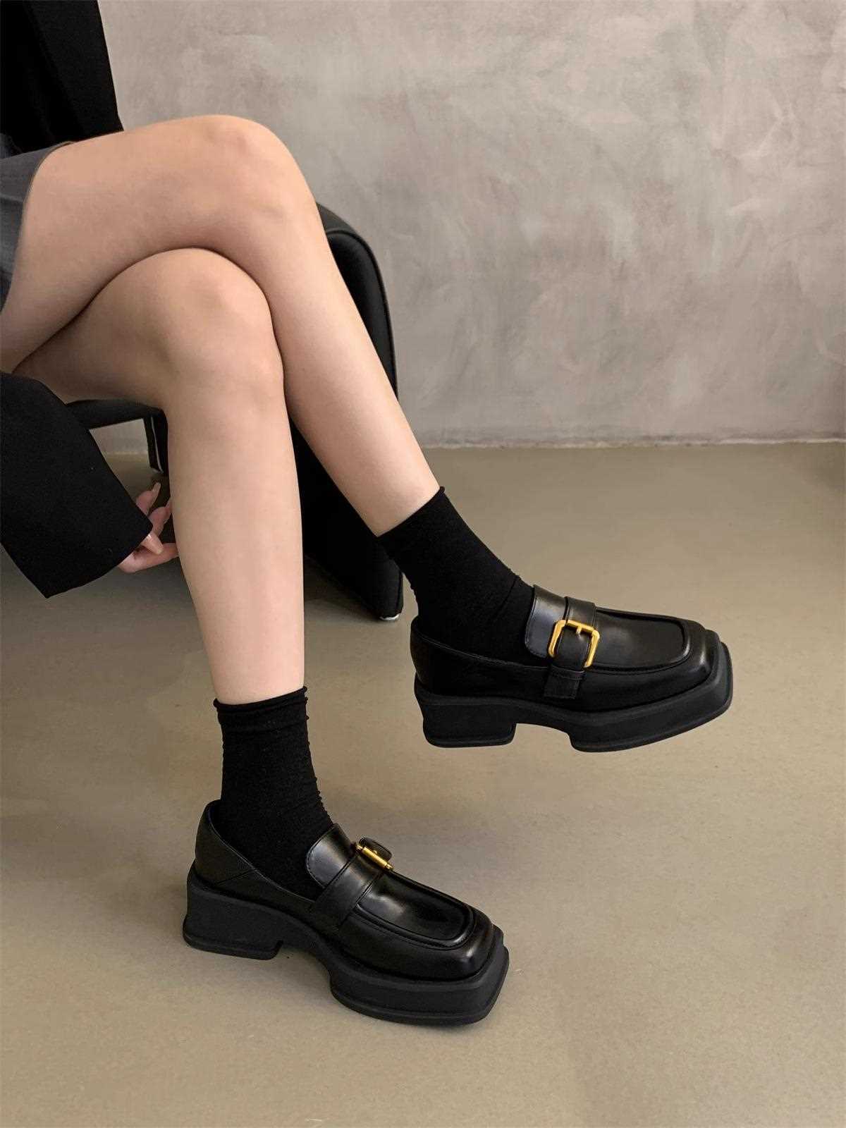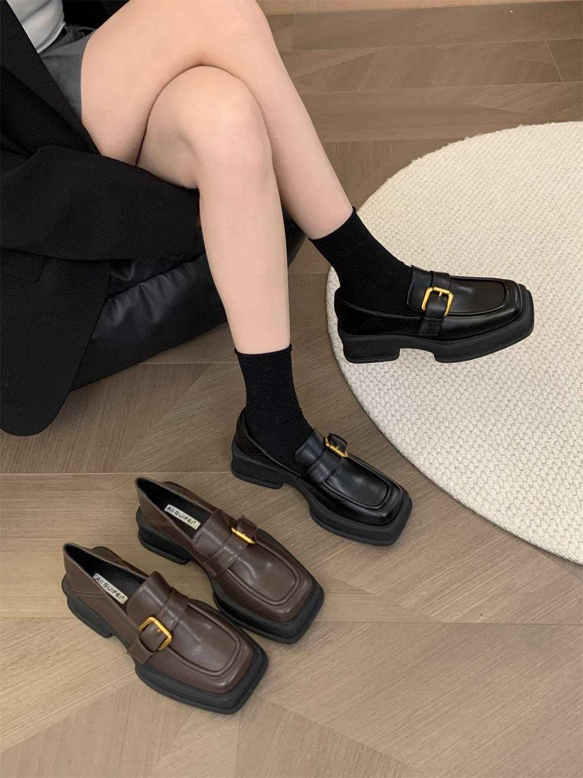 높은 플랫폼 밑창 Lefu 단일 레이어 신발 여성의 2024 봄 새로운 레트로 스퀘어 발가락 두꺼운 영국 스타일의 작은 가죽 신발