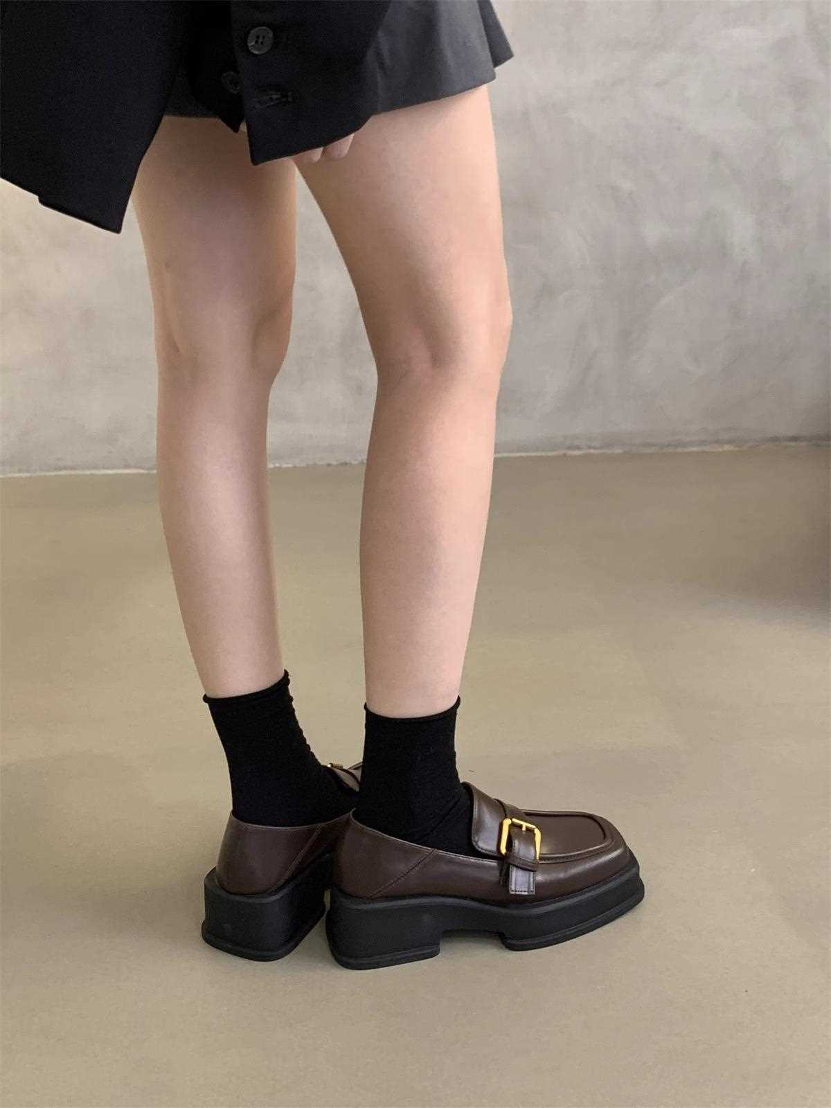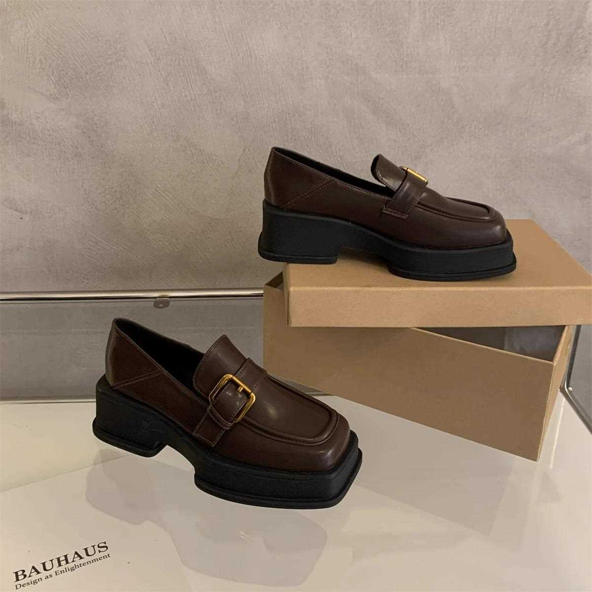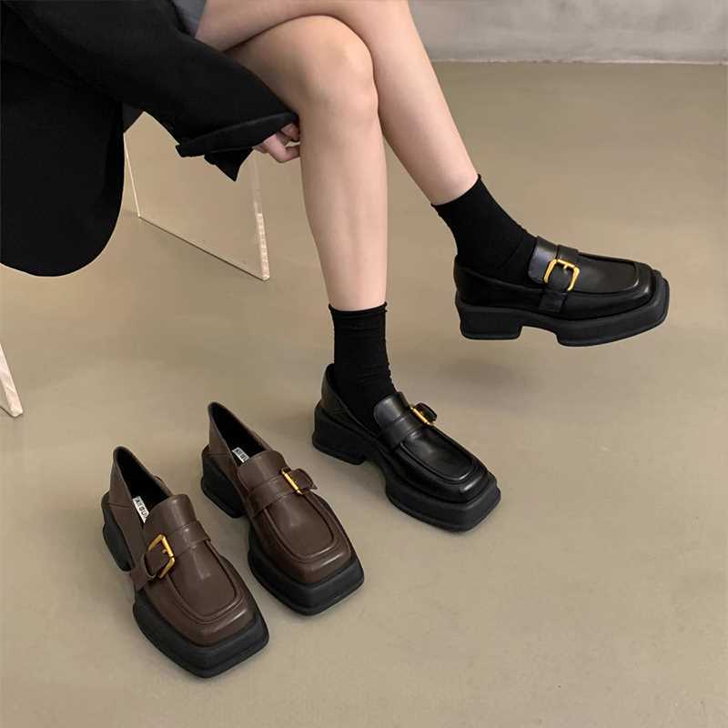 높은 플랫폼 밑창 Lefu 단일 레이어 신발 여성의 2024 봄 새로운 레트로 스퀘어 발가락 두꺼운 영국 스타일의 작은 가죽 신발
