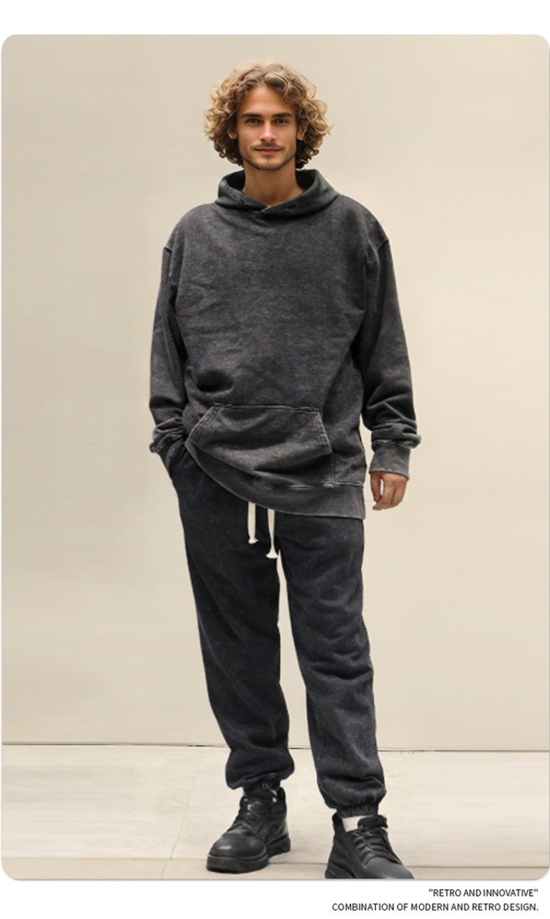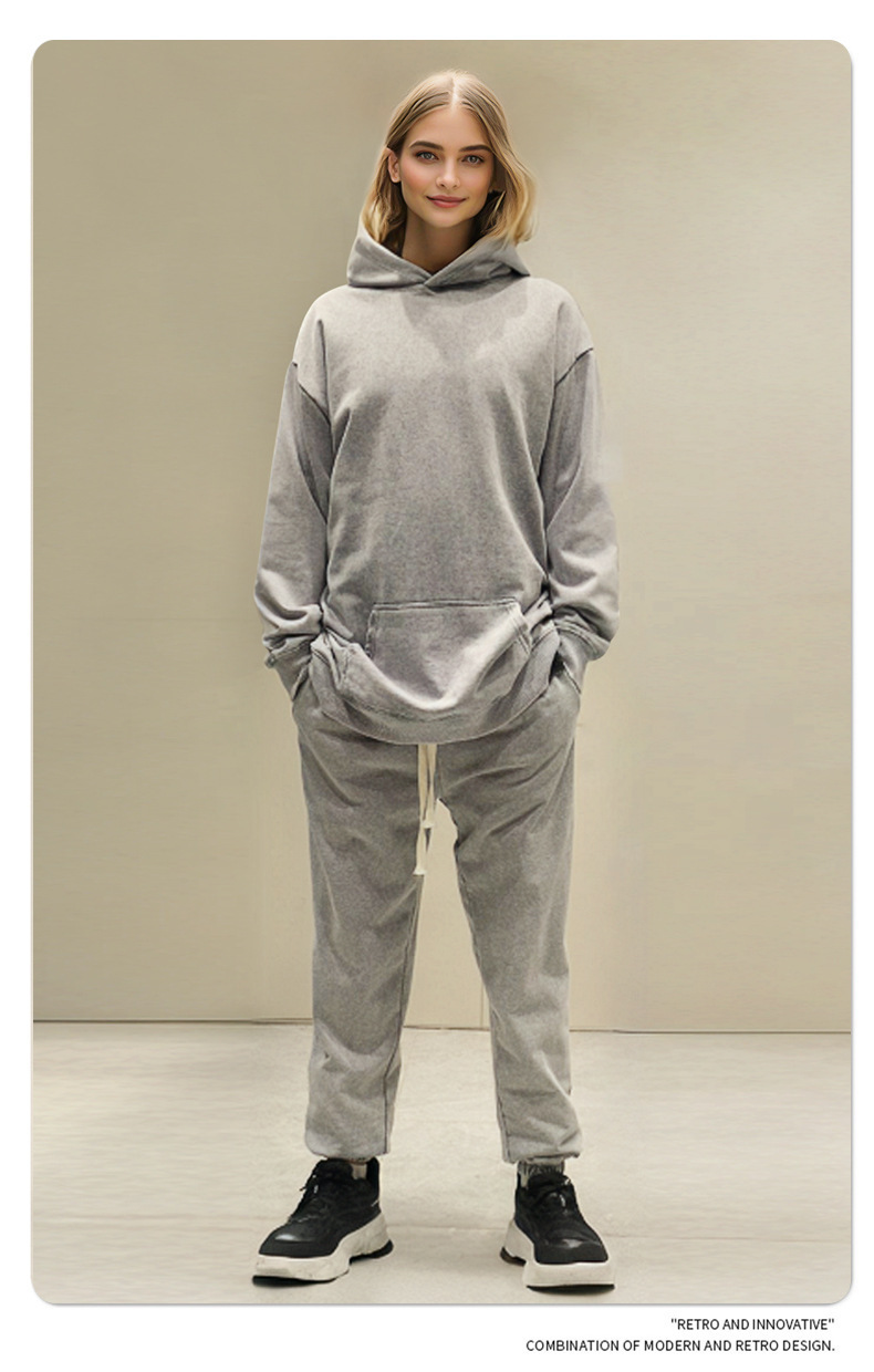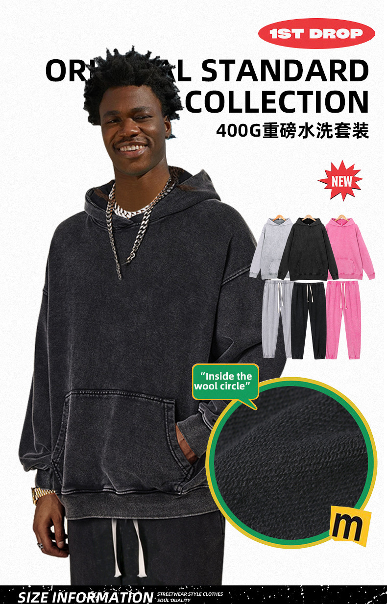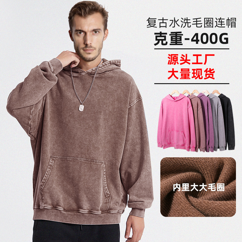 크로스보더 후드티 400g 헤비웨이트 아메리칸 워싱 후드티 레트로 루즈핏 트렌디 브랜드 남성 후드티 맞춤 제작