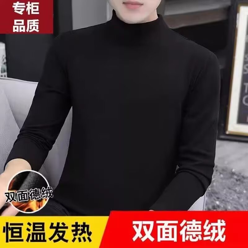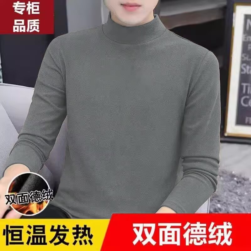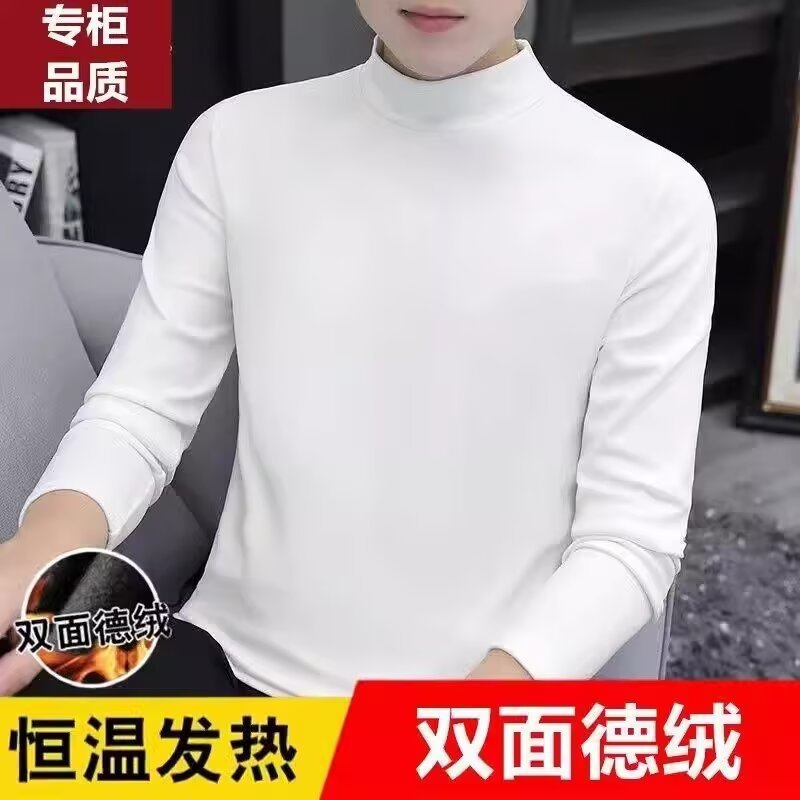 열 속옷 십대 내복 남성베이스 셔츠 하프 하이 칼라 긴팔 티셔츠 남성용 단색 가을 옷 남성 인스타그램 스타일 트렌디