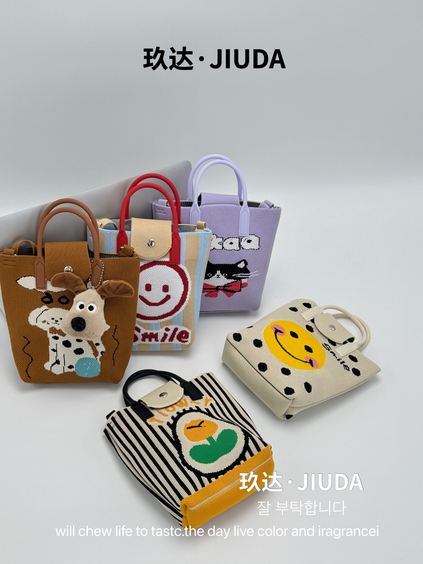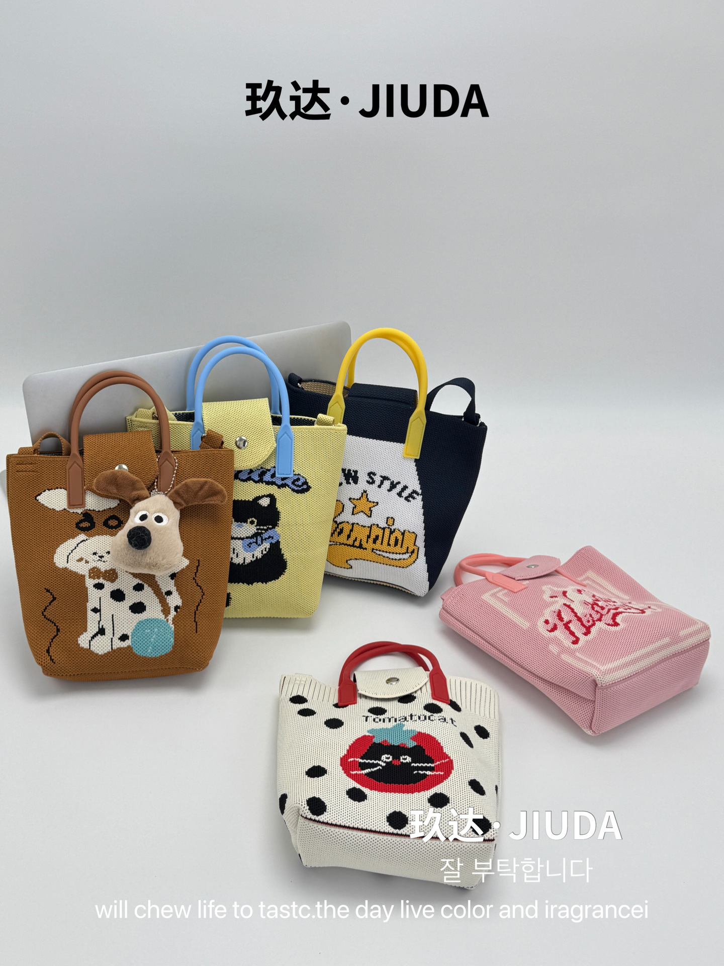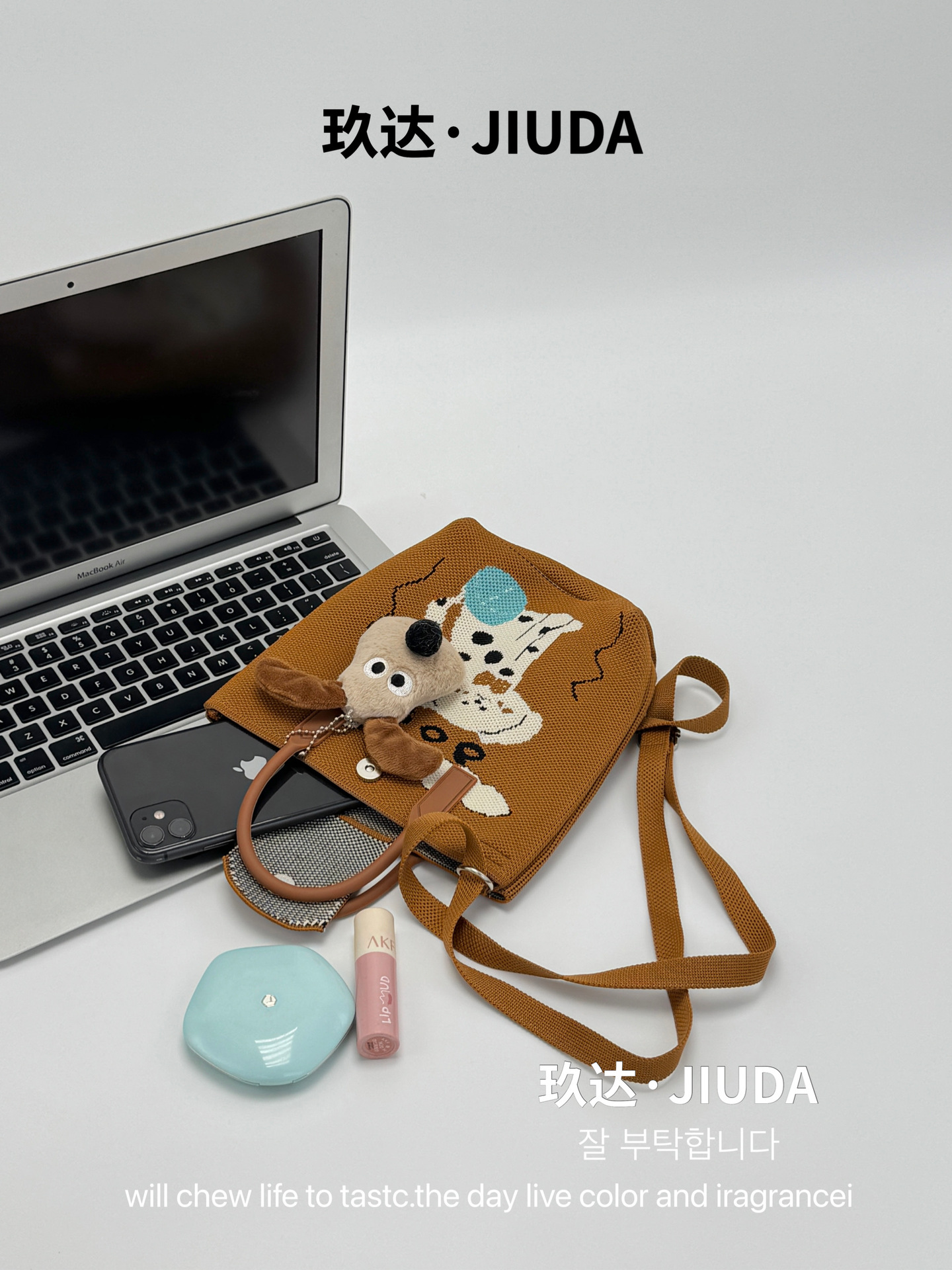 한국 스타일의 새로운 귀여운 만화 니트 크로스백, 일상 여행에 적합한 휴대용 만두백, 대용량