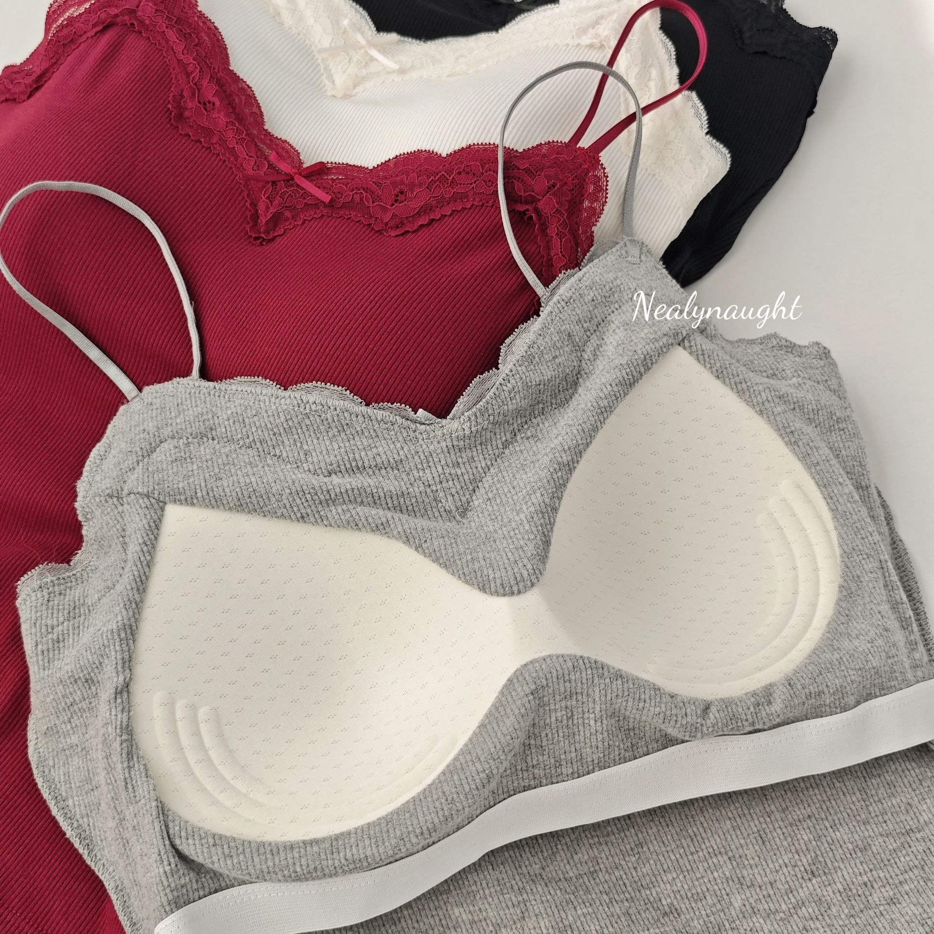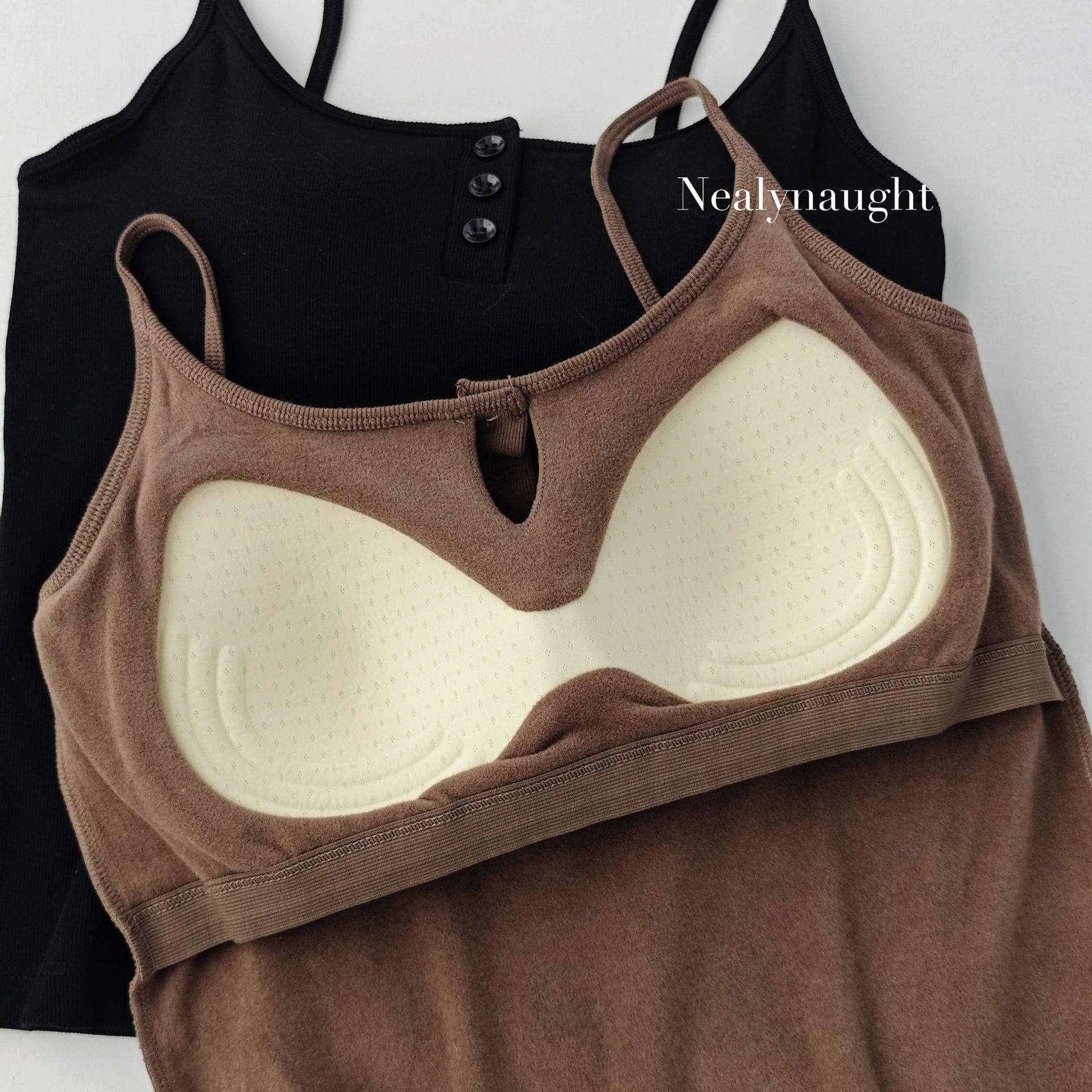 일체형컵 뷰티백 가을겨울 기모 슬림 스트랩 탑 내장형 브라 패드가 있는 이너웨어 브라탑 스타일 상의