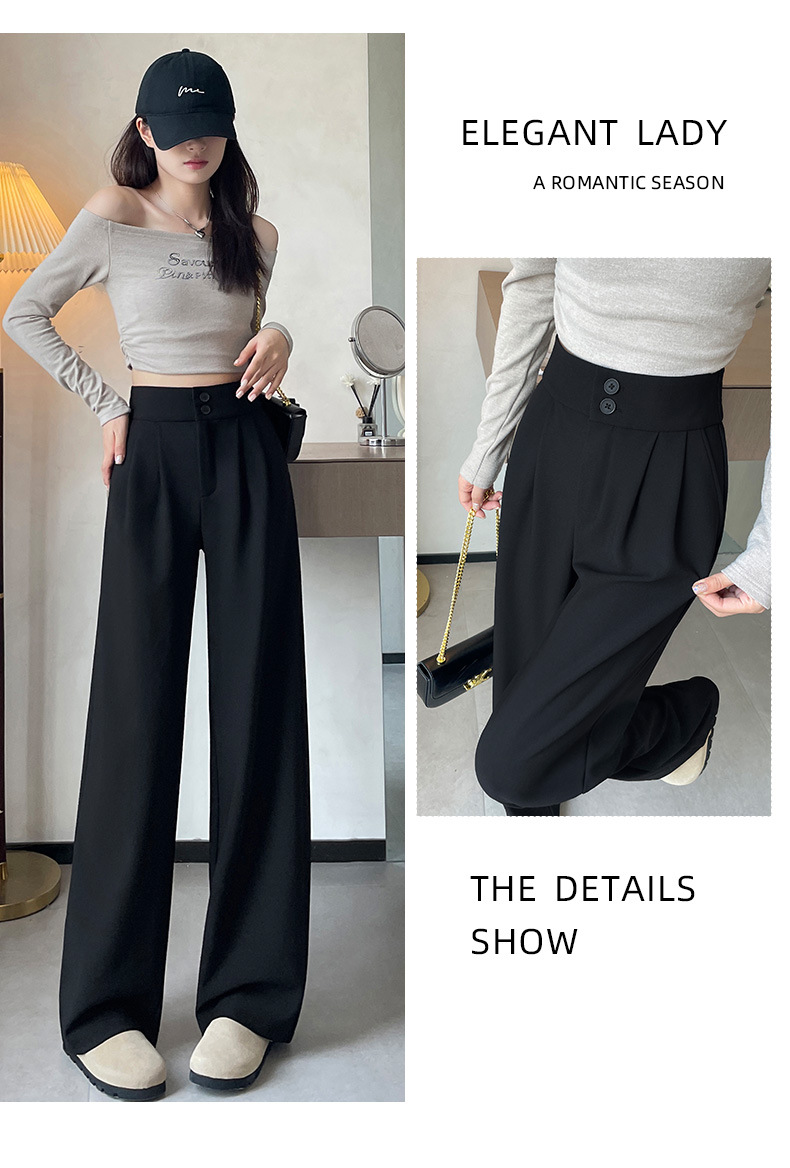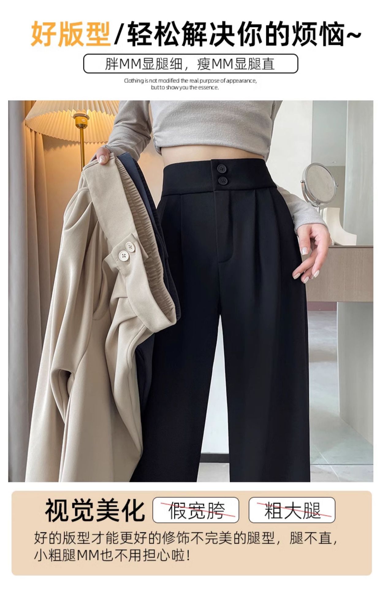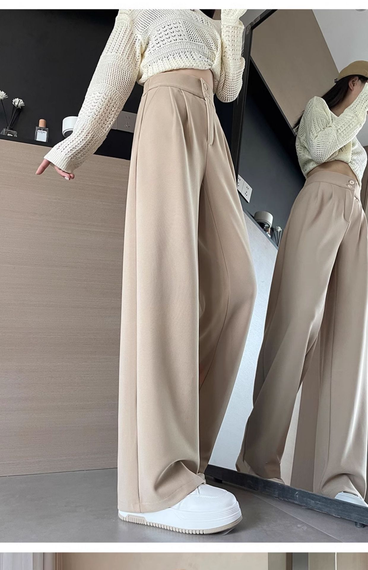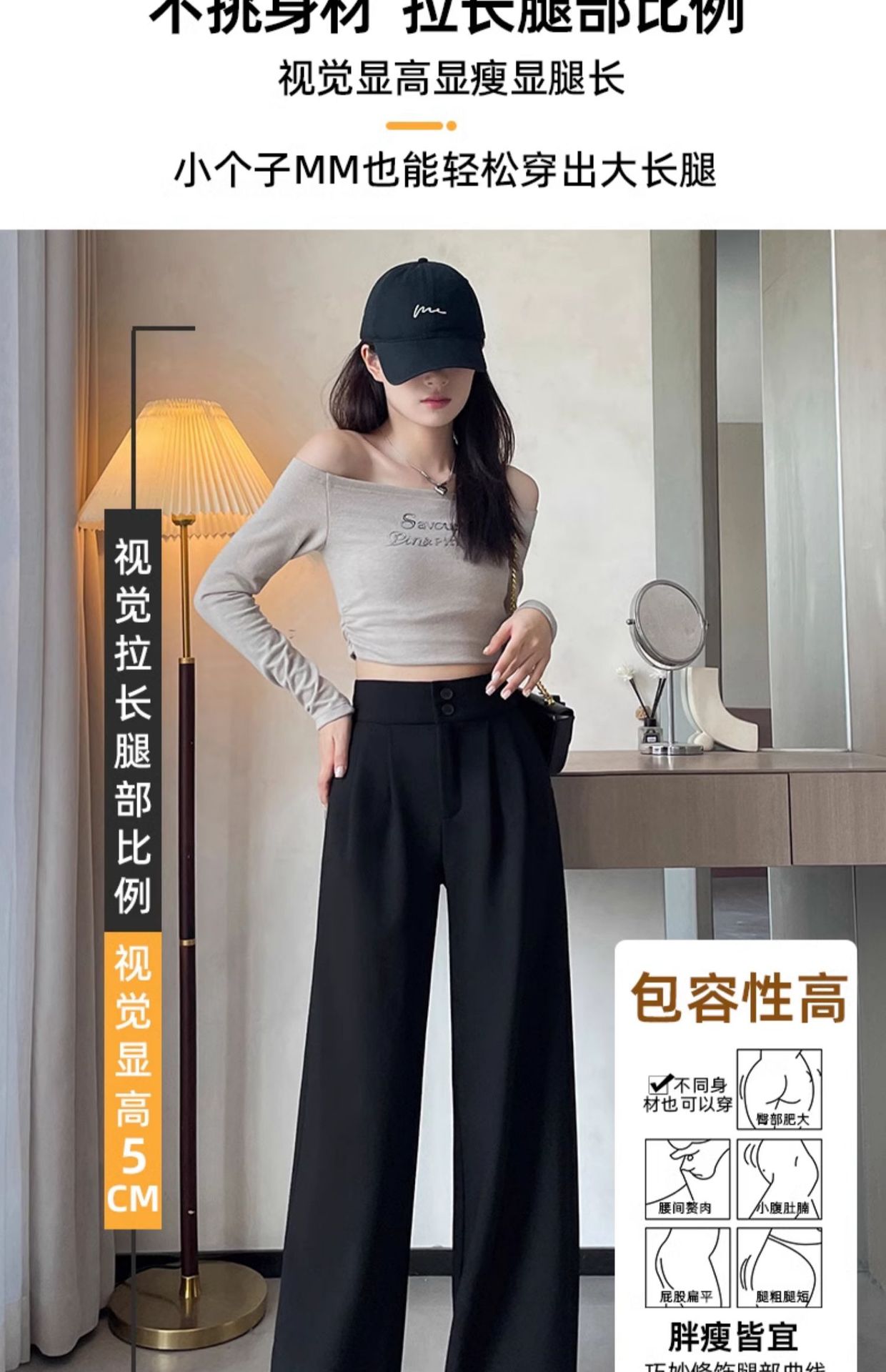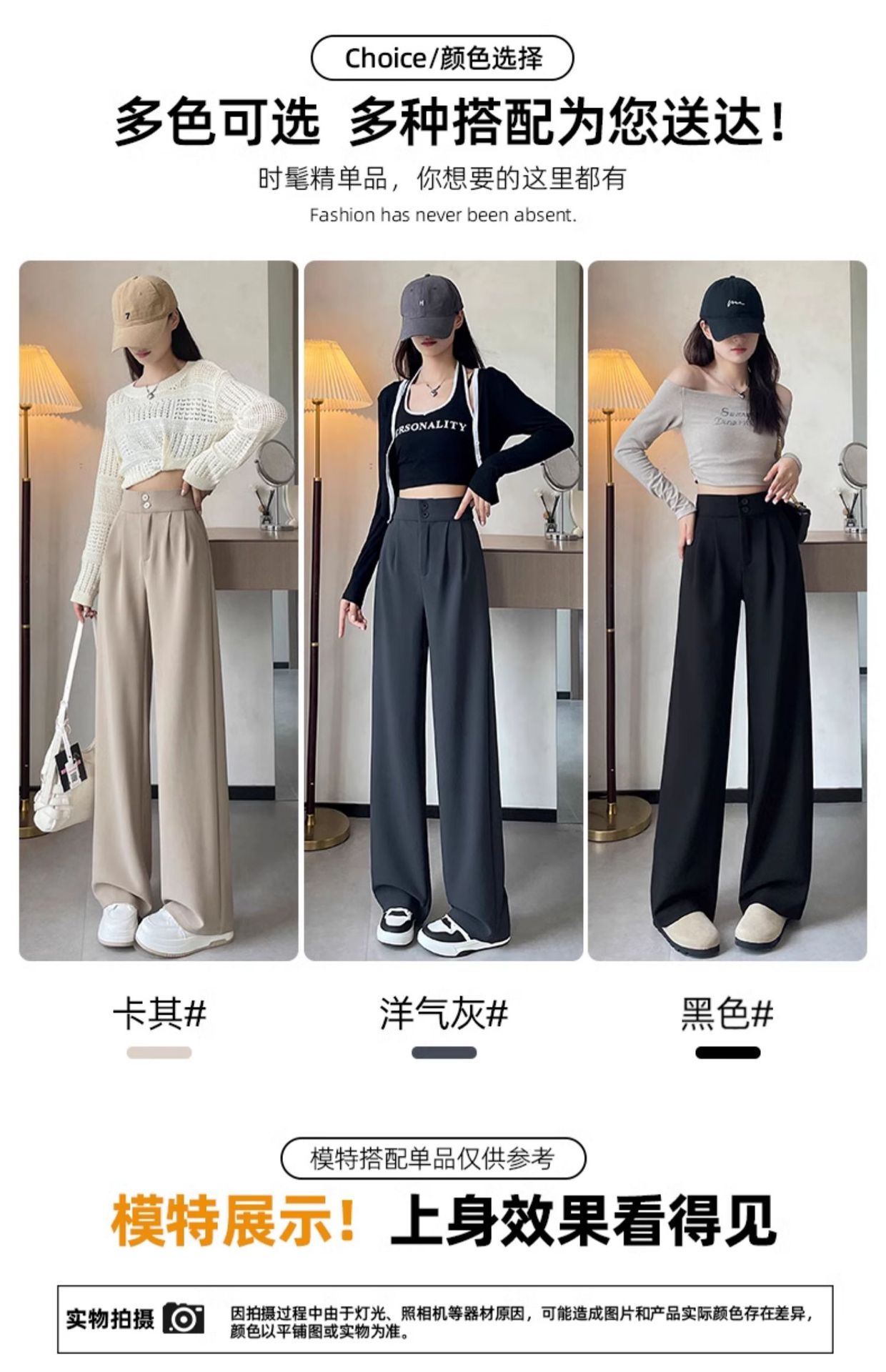 빅사이즈 루즈핏 바닥까지 오는 와이드 팬츠 여성용 2025 가을 하이웨이스트 슬림핏 스트레이트 팬츠 다용도 캐주얼 정장 바지