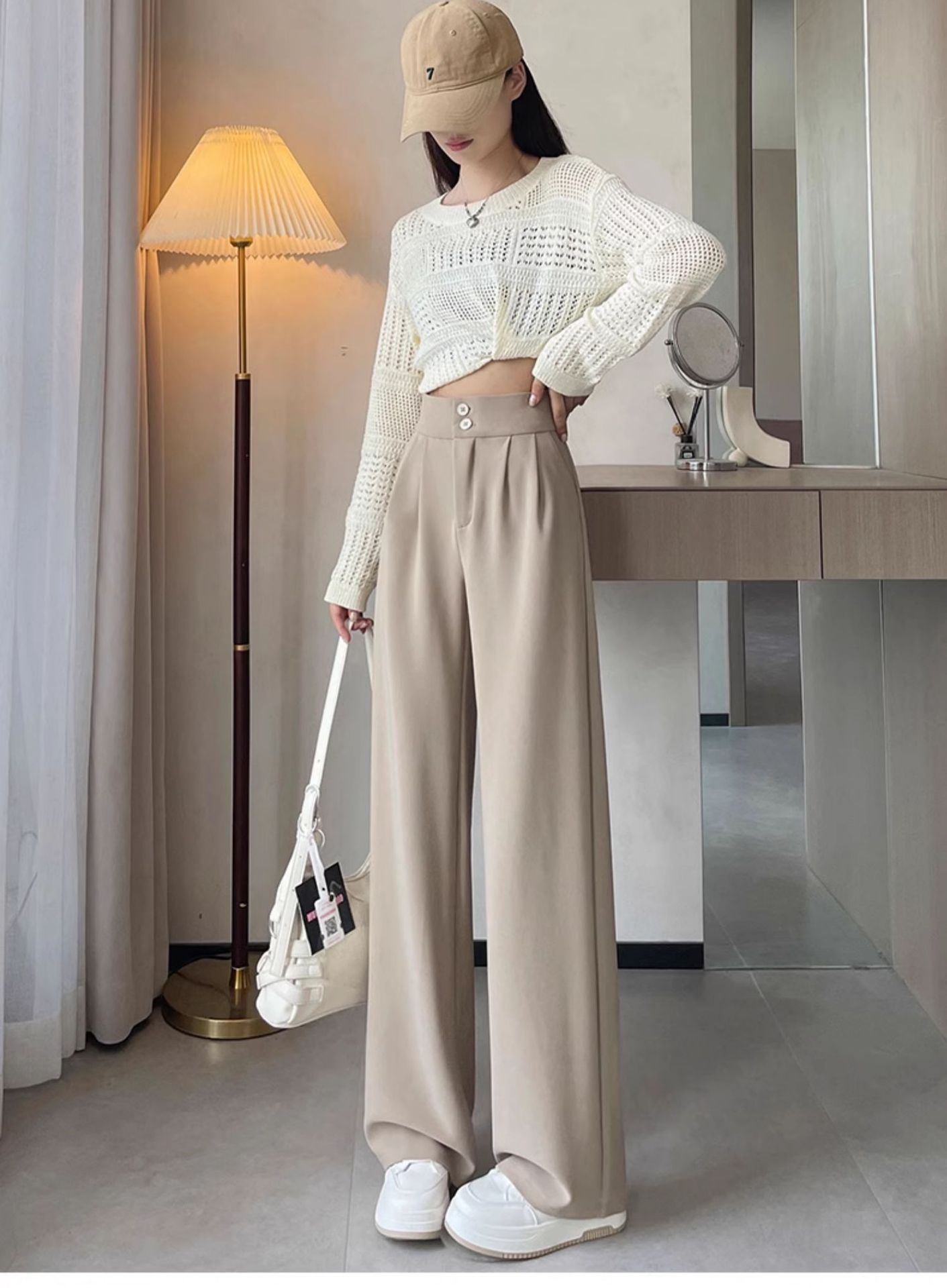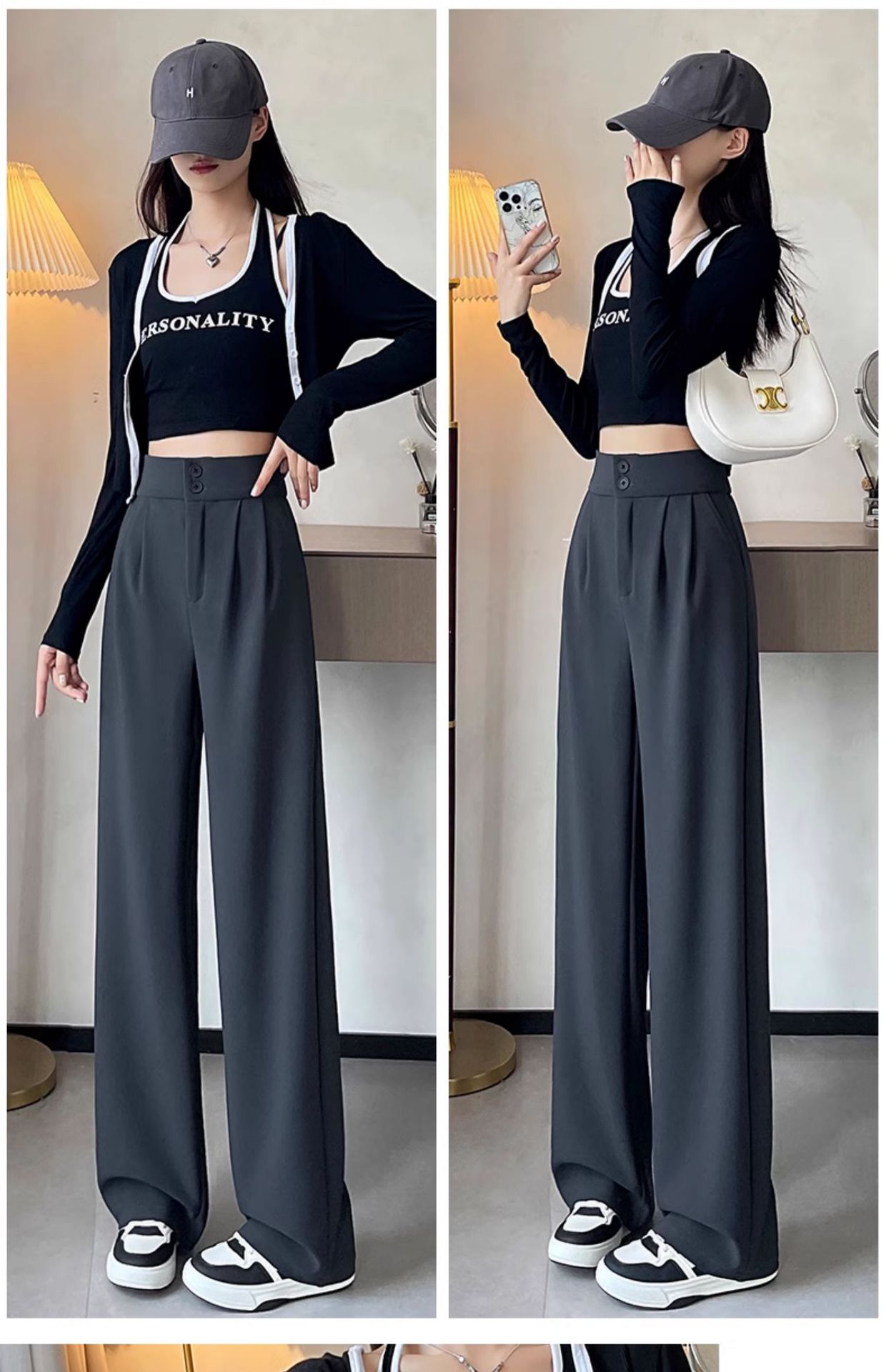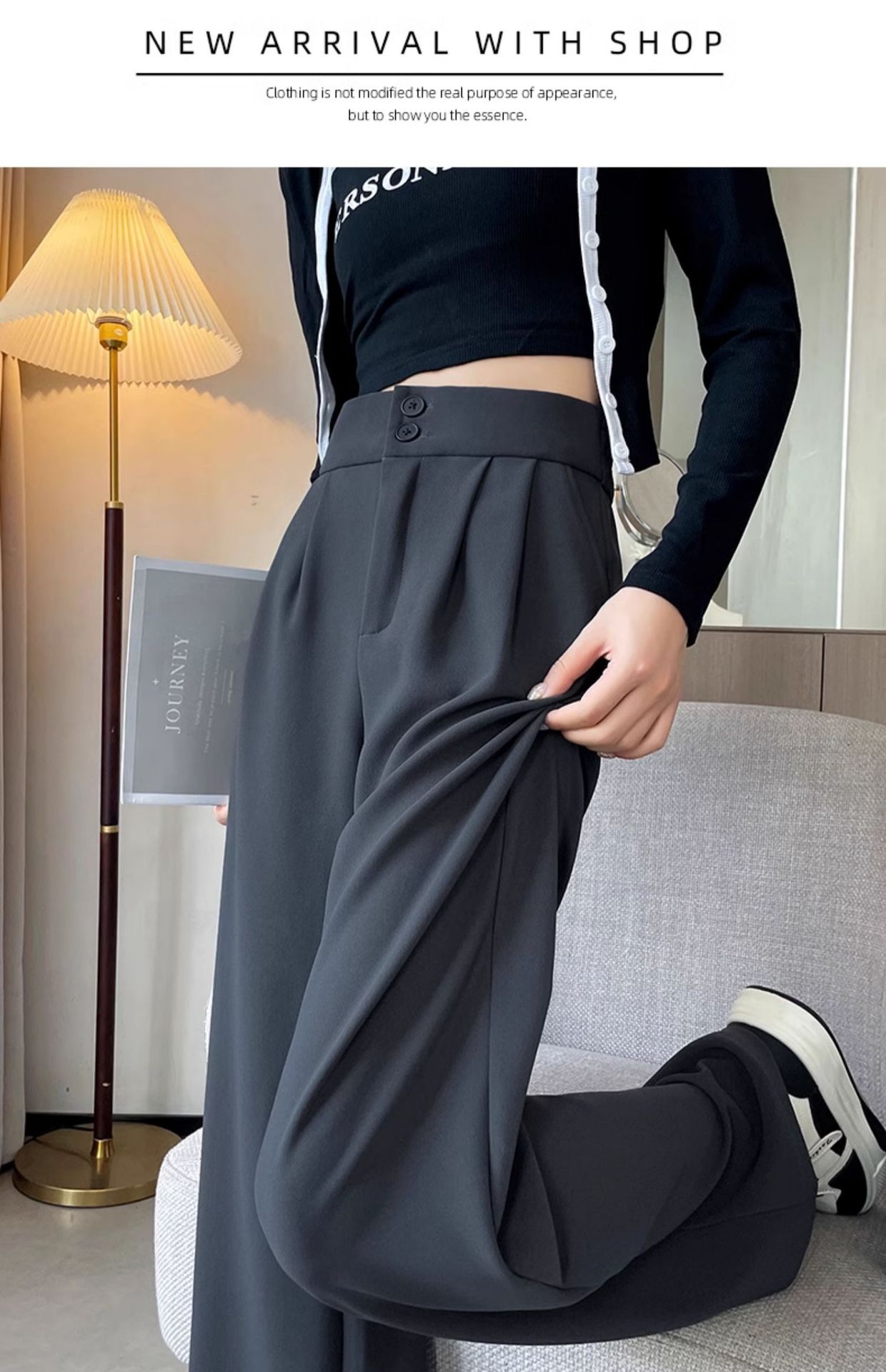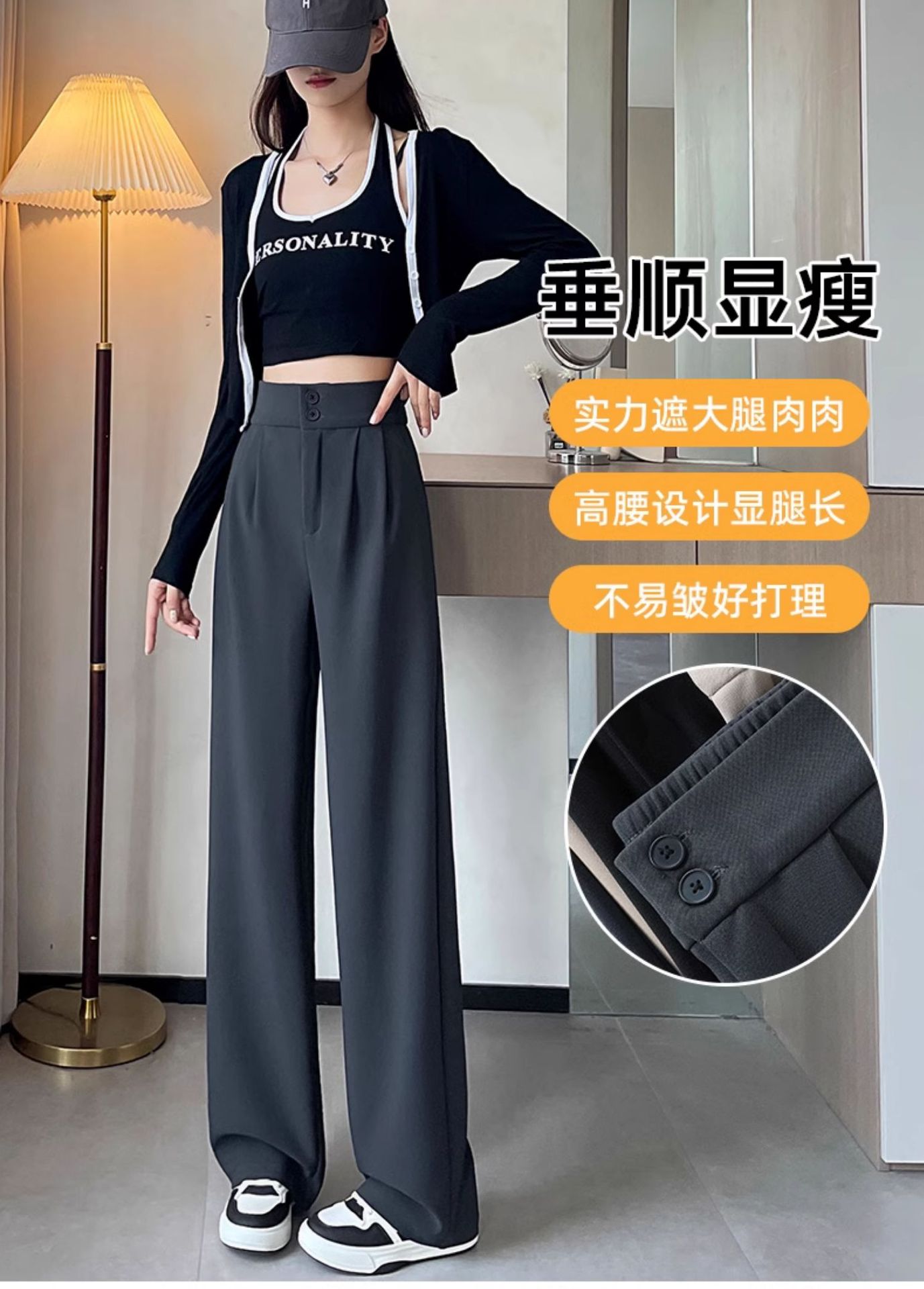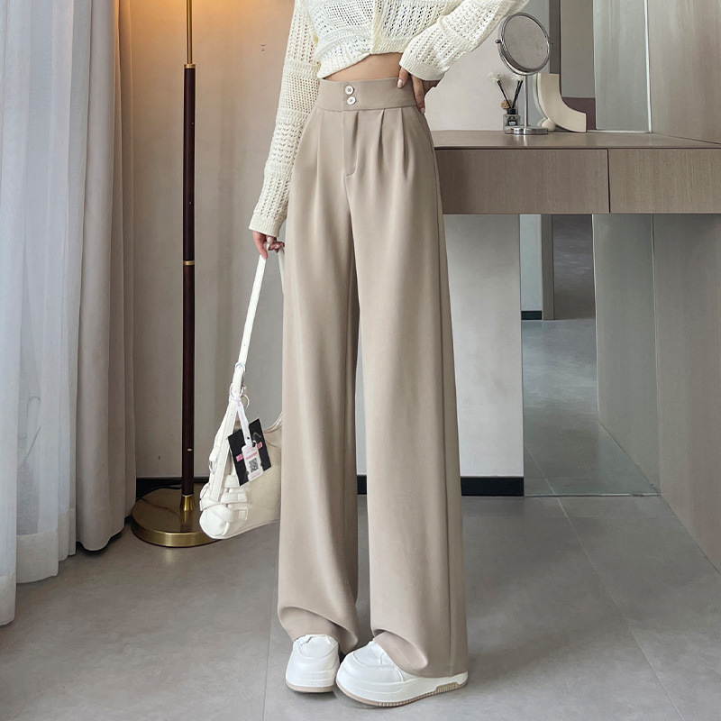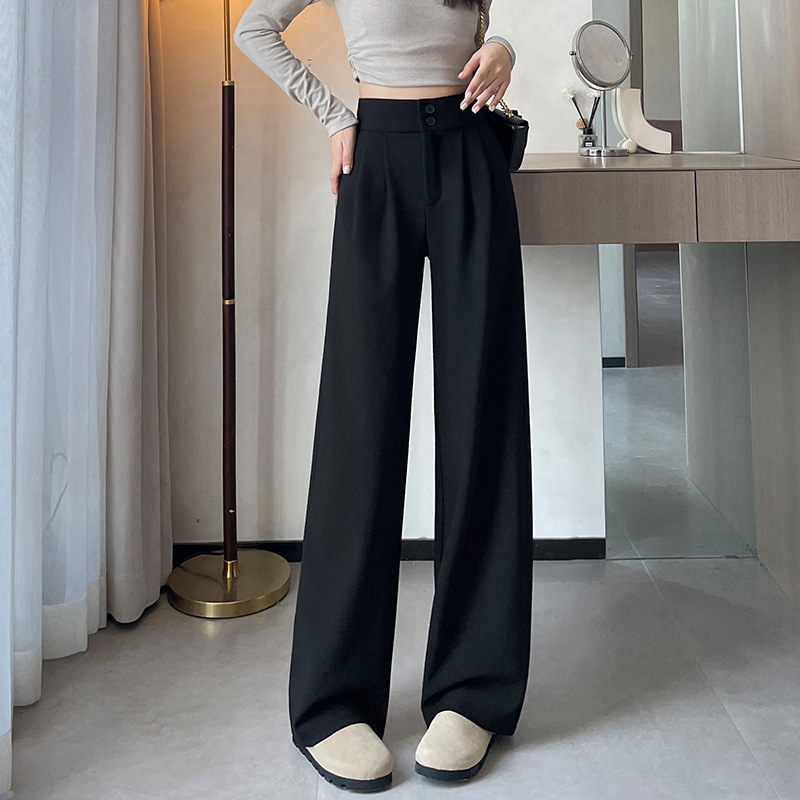 빅사이즈 루즈핏 바닥까지 오는 와이드 팬츠 여성용 2025 가을 하이웨이스트 슬림핏 스트레이트 팬츠 다용도 캐주얼 정장 바지
