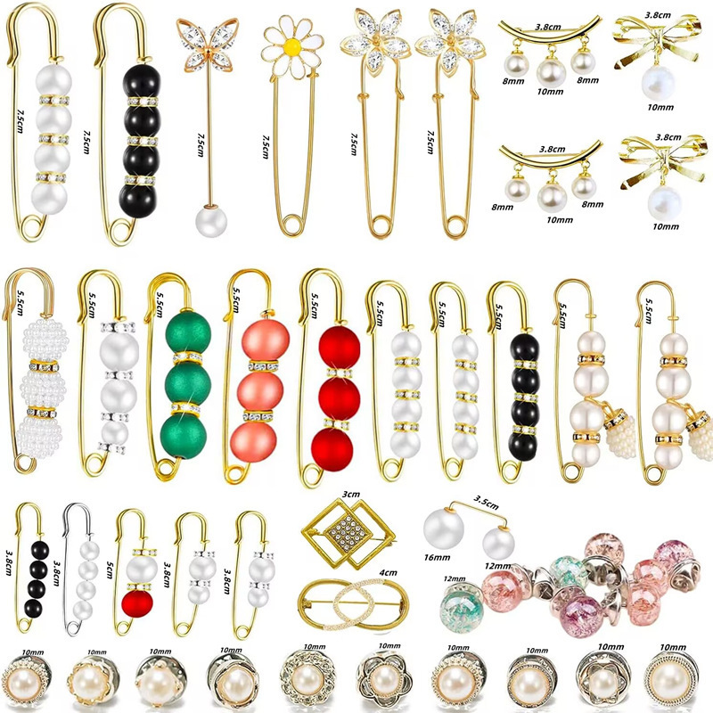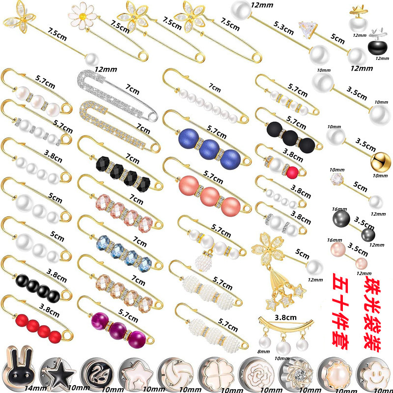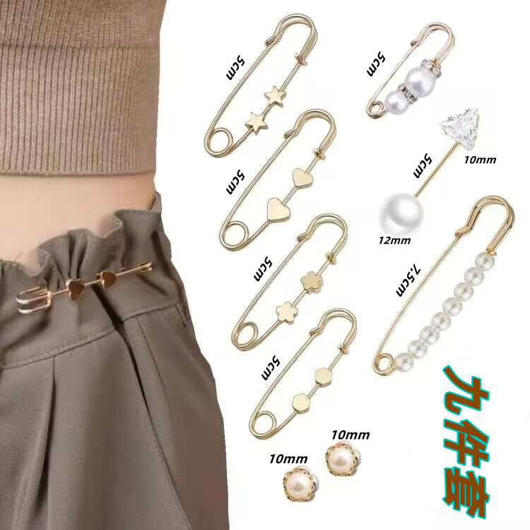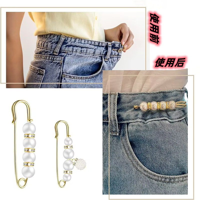 허리 타이트 아티팩트 바지 허리 타이트 핀 고정 장식 의류 카디건 버튼 안티 러닝 브로치 여성 펄 핀