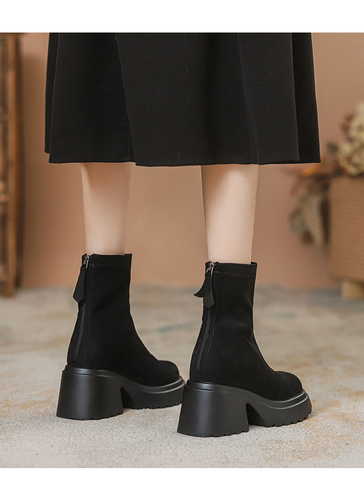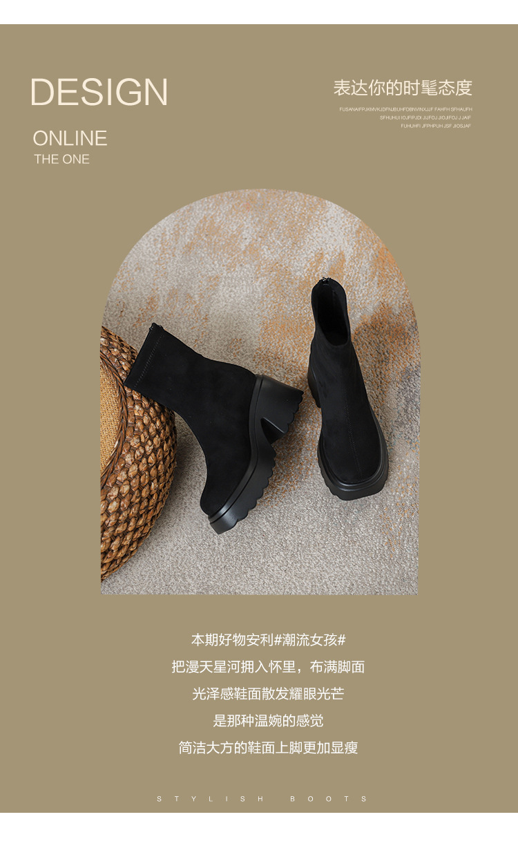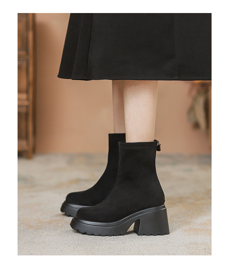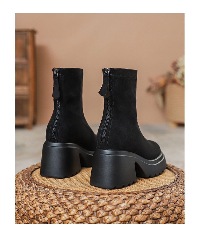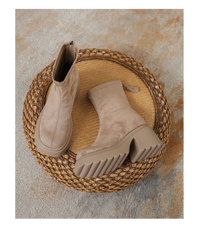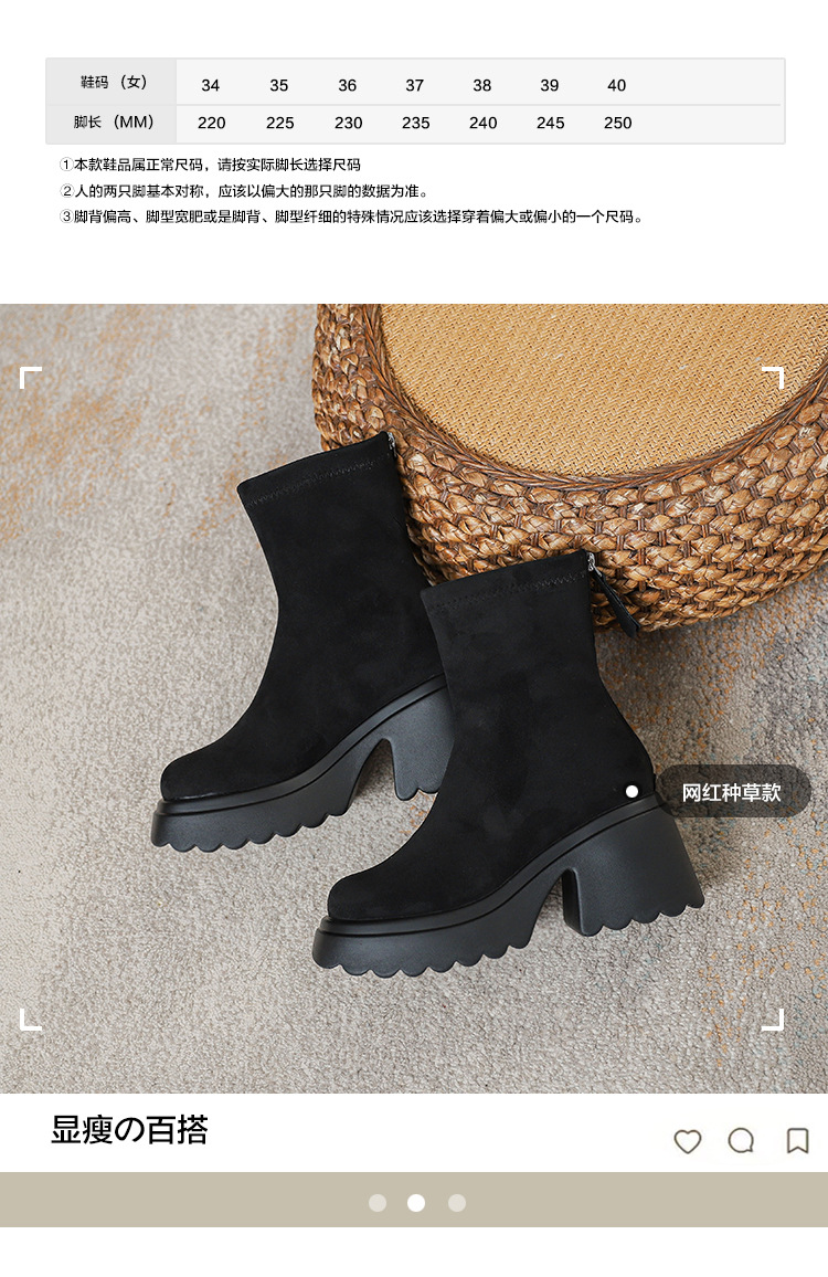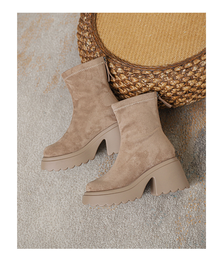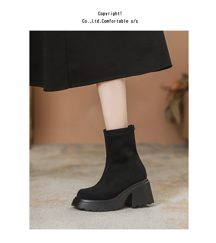 2025년 신상 가을 겨울 슬림 브라운 탄력성 슬림 부츠 여성용 키높이 숏부츠 두꺼운 밑창 영국 스타일 마틴 부츠